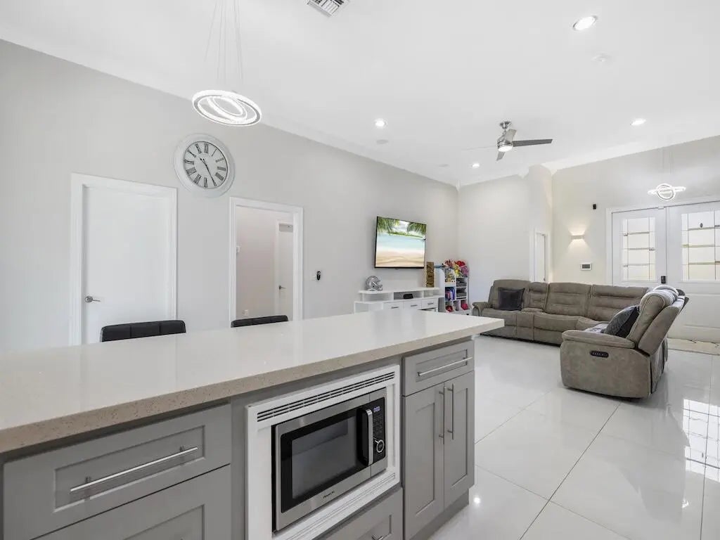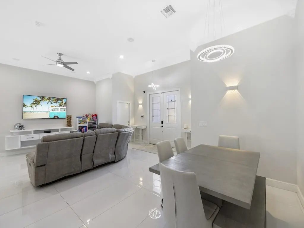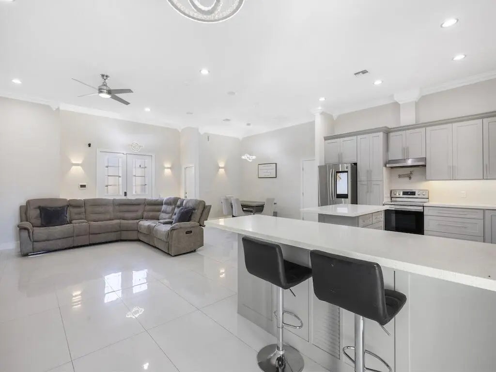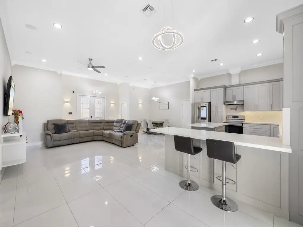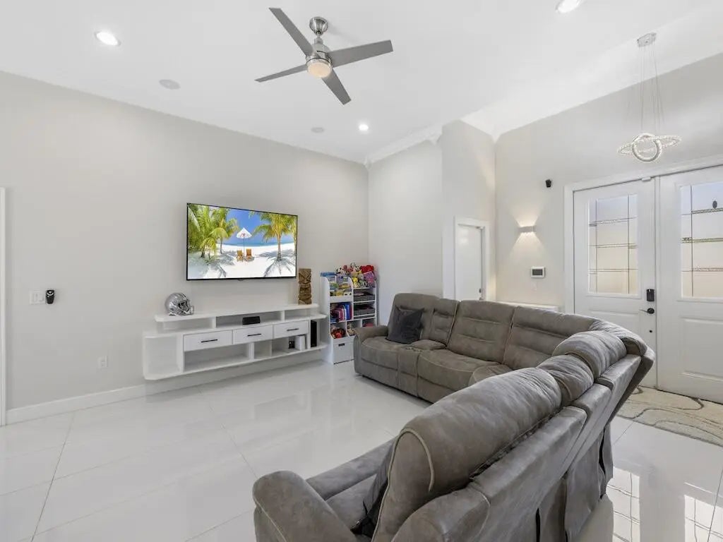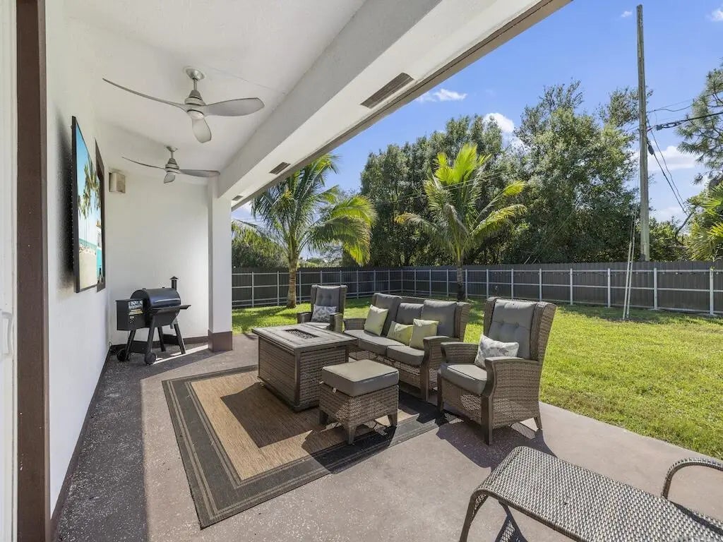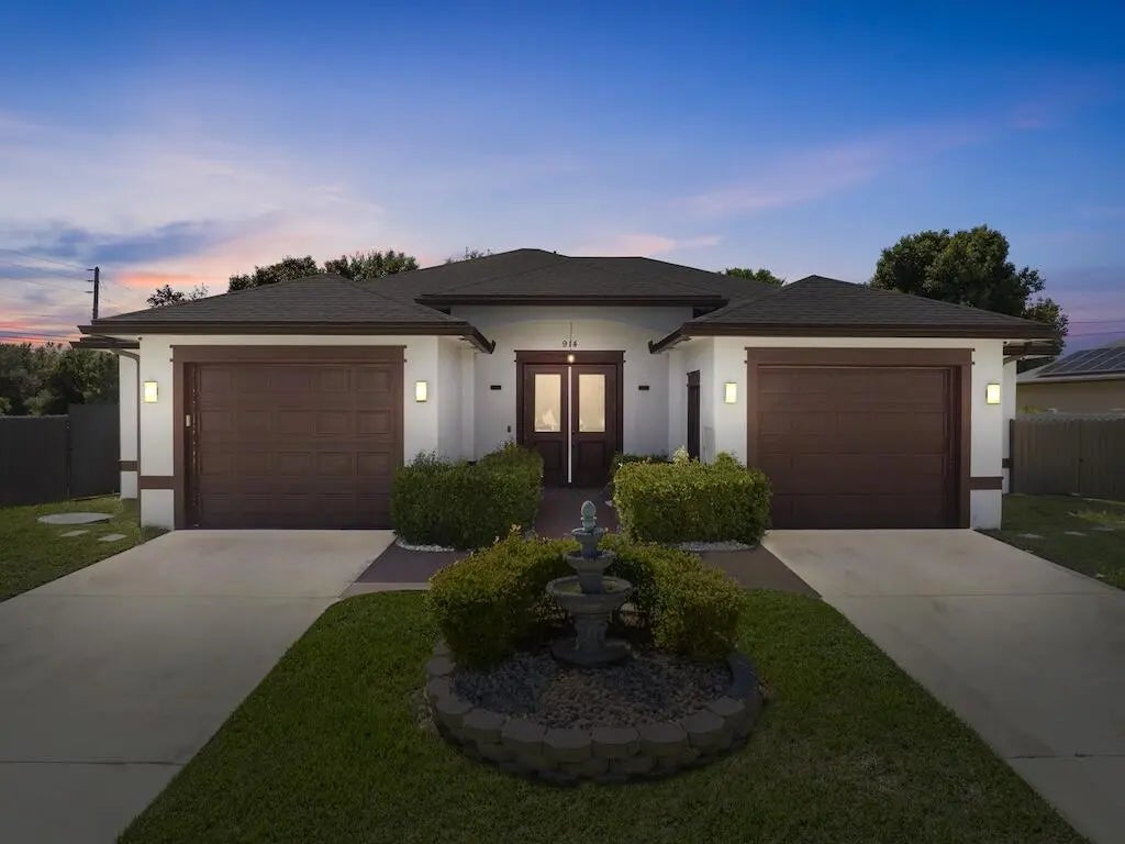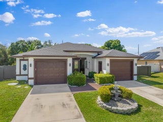 Single family home, NEW CONSTRUCTION 2021! Don't wait to build, move right in! This super upgraded 3 bed 2 bath home has everything, impact windows and doors (huge insurance savings), bright open floor plan, stunning quartz counters in kitchen and baths, and volume ceilings for an airy feel. Enjoy a huge fully fenced backyard, perfect for entertaining, pets, or relaxing. Split bedroom layout for privacy. Two separate garages, ideal for home office, gym, workshop, or playroom. Plus: hardwired security system with DVR, Bluetooth outdoor speakers, smart sprinkler system, and room for boat/RV/trailer. NO HOA. Prime location close to everything. This is modern Florida living at its best!