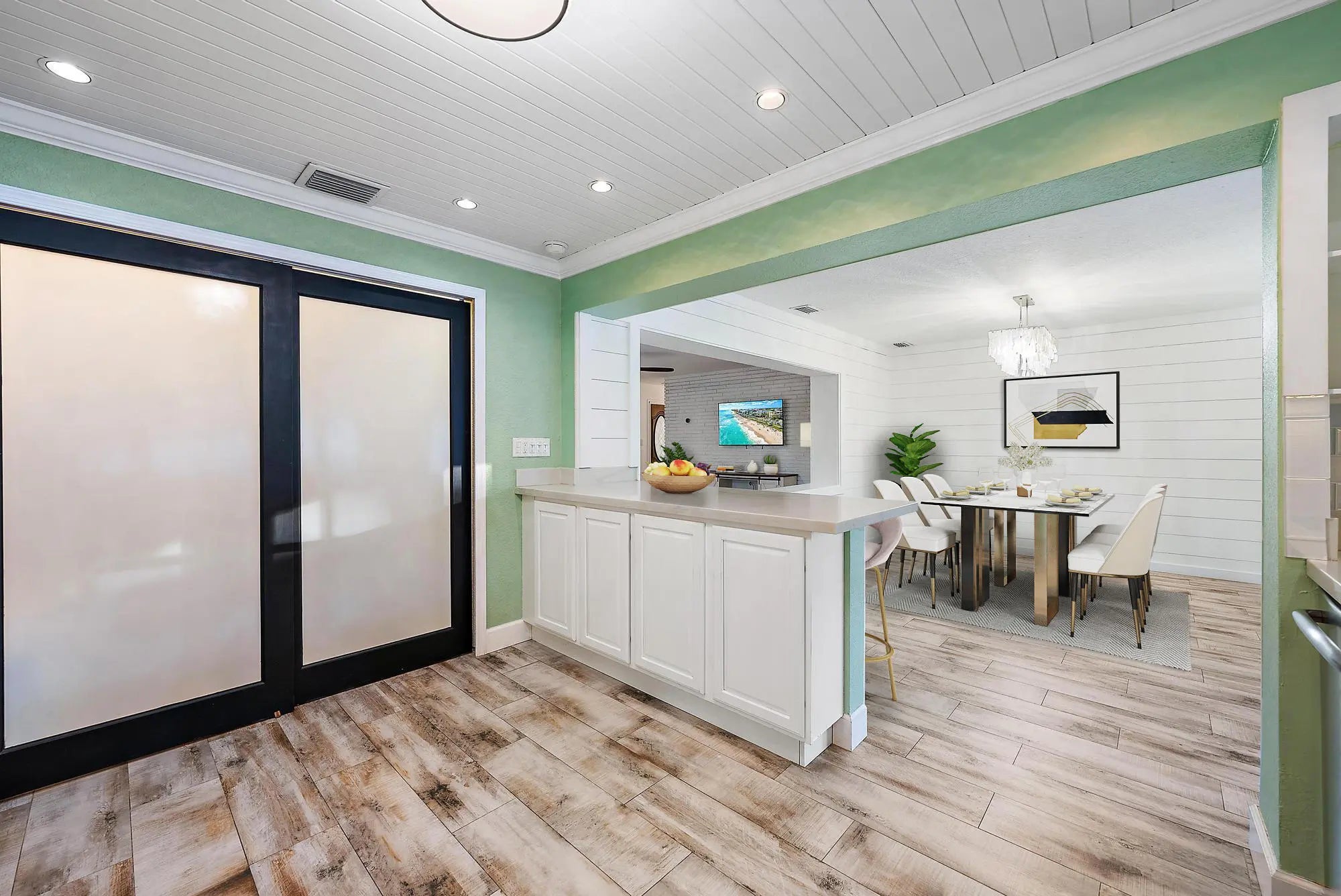 Discover the perfect blend of coastal charm and everyday comfort in this beautifully updated CBS home tucked away on a quiet Tequesta cul-de-sac. Set on a large pie-shaped lot, the property offers exceptional outdoor living -- a sparkling pool, expansive green space, and generous driveway space on both sides of the home, including a 40-foot concrete pad ideal for boat or RV parking.Inside, the home exudes a fresh, coastal feel with wood-look ceramic tile flooring throughout and a bright, open layout designed for relaxed living. The kitchen features quartz countertops, ample counter space, a large pantry, and a convenient pass-through to the patio -- perfect for entertaining. The spacious Florida room opens to the pool area, creating a seamless indoor-outdoor flow.