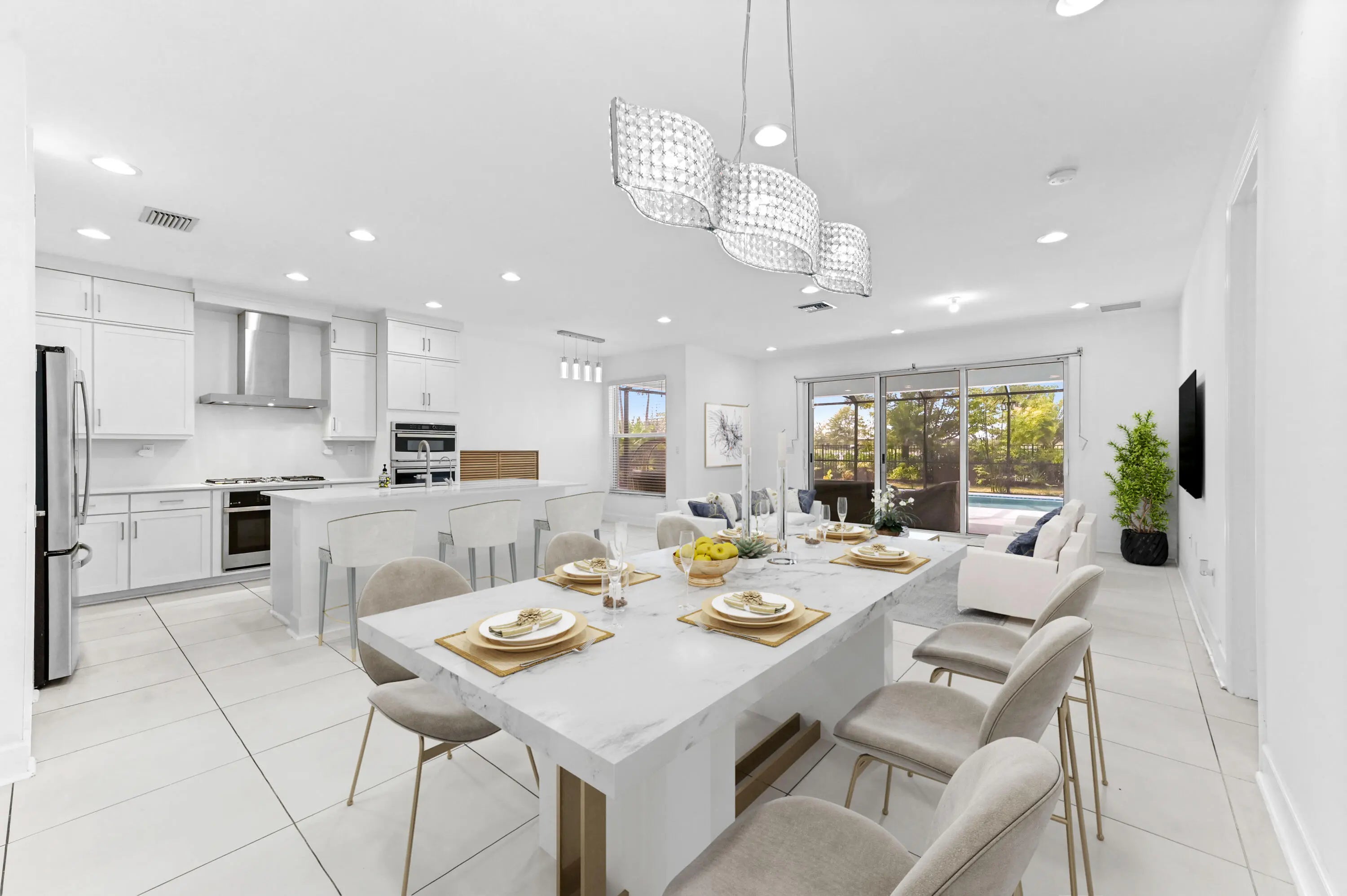 Exquisite GL Homes Laguna Coastal model located in the highly sought-after Arden community. This impeccable pool home boasts 4-bedroom, 3-bath residence offers 2,396 square feet of refined living space with a bright, open-concept design and abundant natural light. The elegant kitchen seamlessly connects to expansive living areas, ideal for both entertaining and everyday comfort. Step outside to a private screened-in oasis featuring a sparkling pool and serene lake views with stunning sunsets. Enhanced with a full-home water filtration system, this home delivers elevated living within a premier, resort-style community offering exceptional amenities and a one-of-a-kind farm-to-table lifestyle.