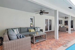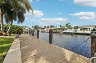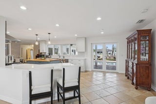 Updated deepwater home 80FT on protected canal--70 FT composite dock and 50 AMP power-wide canal! Open-concept split-bedroom layout offers additional den & formal dining(see floor plan) chef's kitchen w/custom cabinetry, gas cooktop, luxury appliances, island with wine chiller--perfect for entertaining. Elegant travertine floors, impact windows and doors, light & bright space with a coastal-modern vibe. Full sun exposed heated pool set back with lots of green space. The primary suite is spacious with custom closet & impact doors to the pool & water. 16 year old tile roof, 2020 HVAC, upgraded electric, tankless gas water heater, Nest & cameras--Many upgrades in 2021. Walk or golf cart to the beach, dining, golfing, & all entertainment! ''Seller will include golf cart w/ full price offer!''