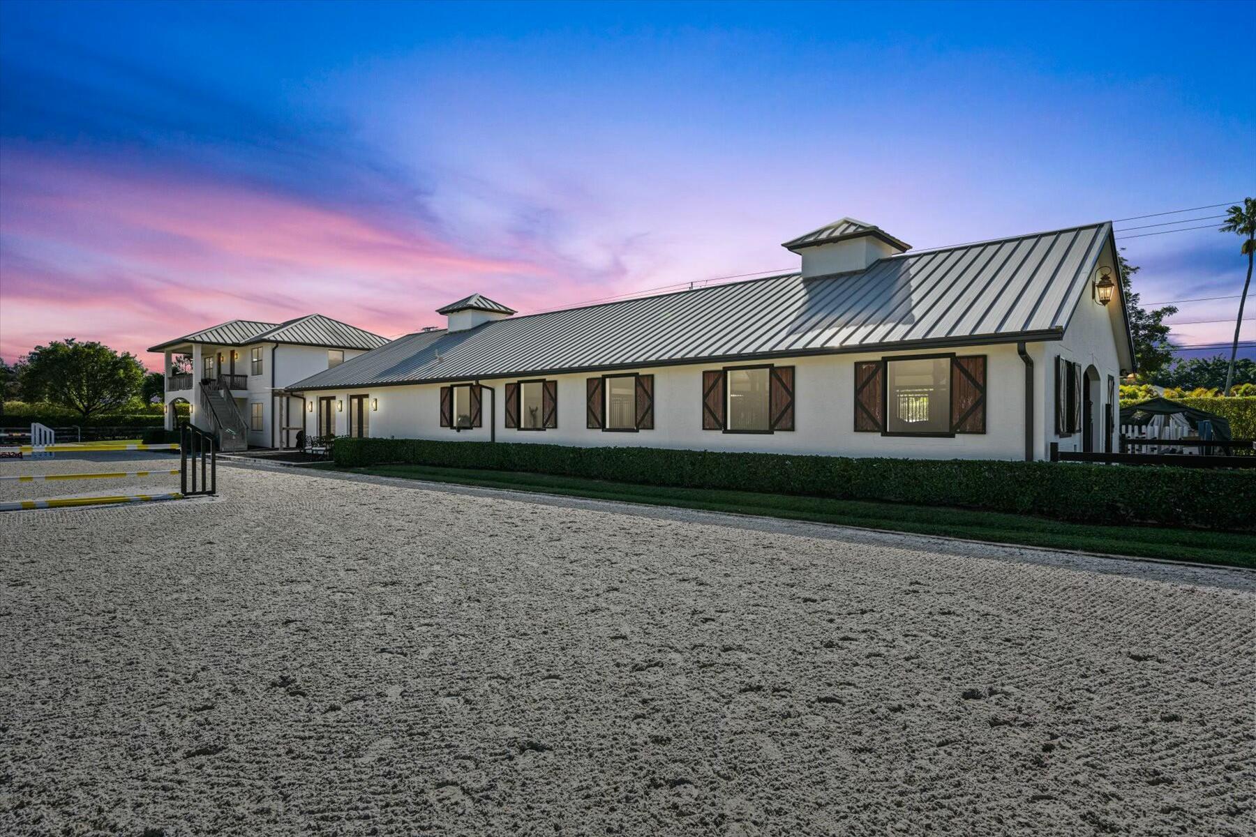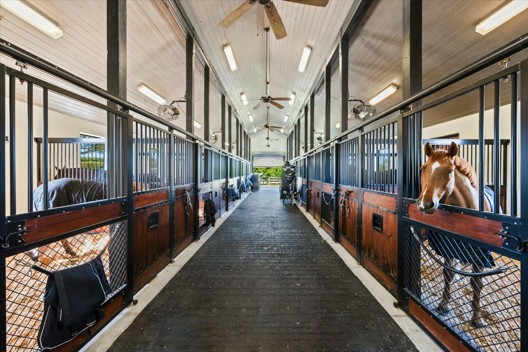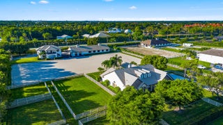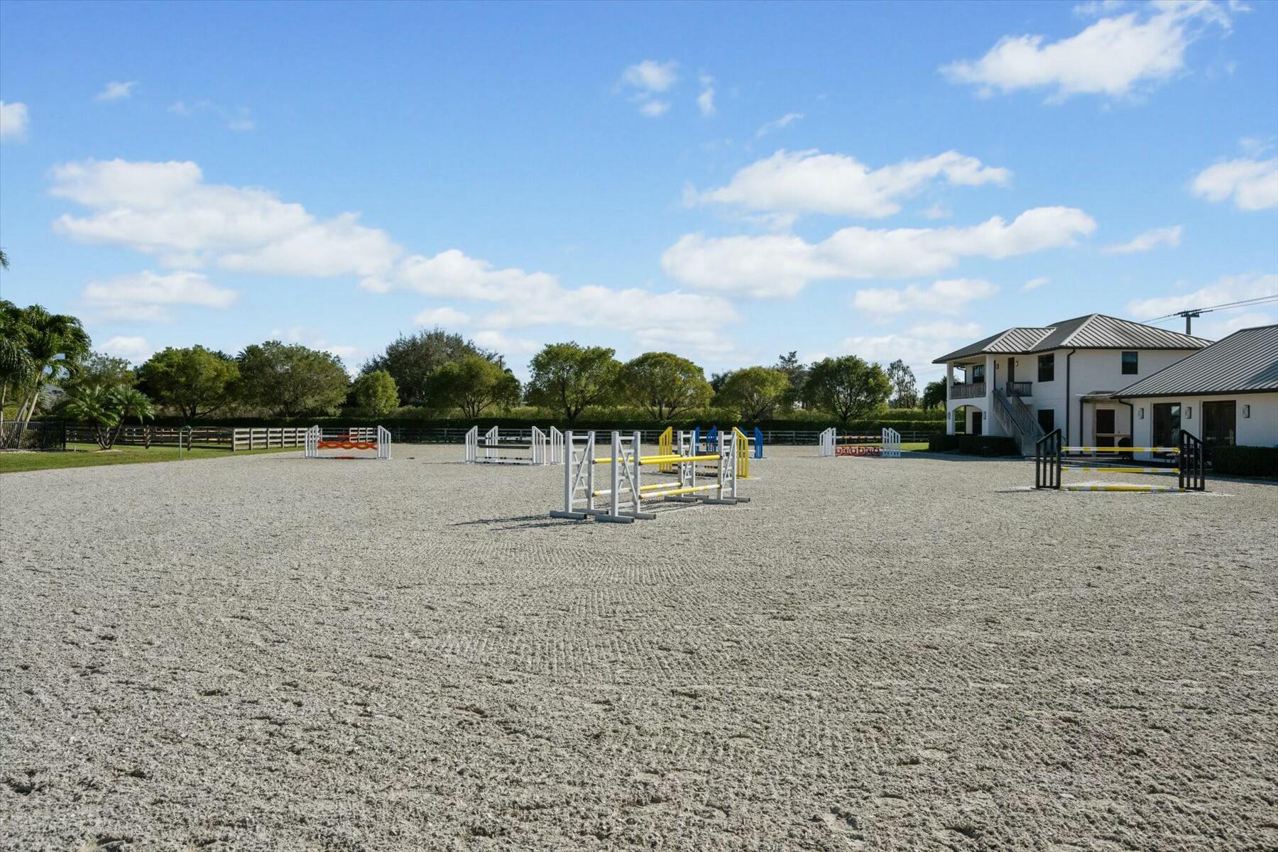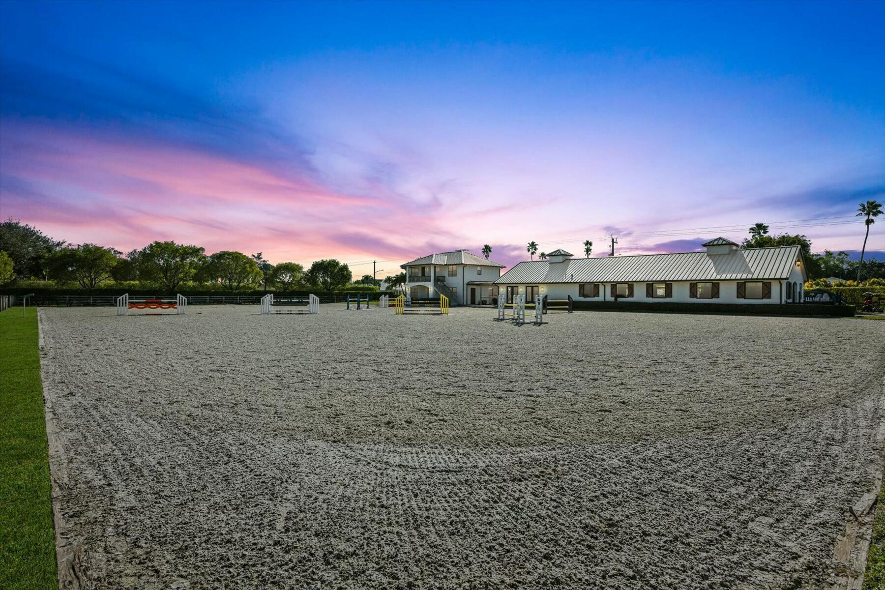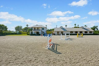 Exceptional Equestrian Estate in Saddle Trail Park, this 2.45-acre, high-and-dry farm is a premier offering. Conveniently located on city water and less than 2,500 feet from WEF's entrance, this property is designed for the serious equestrian. The farm features 7 irrigated paddocks and a Wordley Martin constructed arena measuring 220'x130'. The barn is accessed through an electric-operated gate with a roadside apron, providing easy entry for tractor-trailers and ample space behind the barn for large truck and trailer parking. The state-of-the-art barn boasts: 12 stalls, each equipped w/ high powered fans. Room for temporary stalls in the auxiliary building. Four grooming stalls (three indoor, one outdoor). Three wash racks with hot and cold water.Overhead fly spray system. A/C tack room, feed room, and full bathroom with laundry. Ring observation area adjacent to the tack room. Large manure bin. Adjacent to the barn is a two-story, three-bay garage, featuring: One roll-up door facing the ring, ideal for jump or tractor storage Two separate private-entry apartments: A two-bedroom, one-bathroom unit with a full kitchen, living area, and stackable laundry A studio apartment with a full kitchen, bathroom, and private balcony offering stunning east-facing sunrise views Completing this exceptional property is a five-bedroom, four-bathroom pool home with a two-car garage and gated driveway parking. The spacious split-bedroom layout includes an eat-in kitchen, gas stove, separate dining area, and large family room. French doors open to a covered patio and pool, overlooking the arena. For effortless indoor-outdoor living, a built-in summer kitchen and grill area provide the perfect space for entertaining. This farm is truly a rare find, offering an unparalleled blend of functionality and close proximity to WEF. Schedule your private tour today!