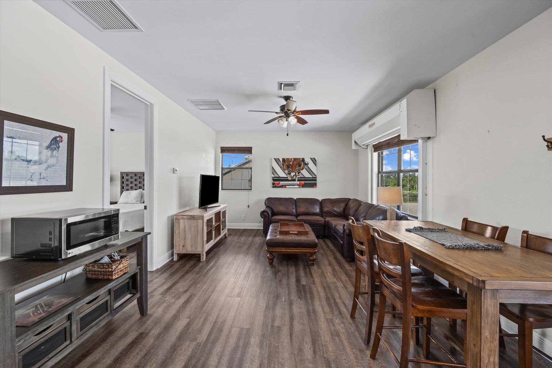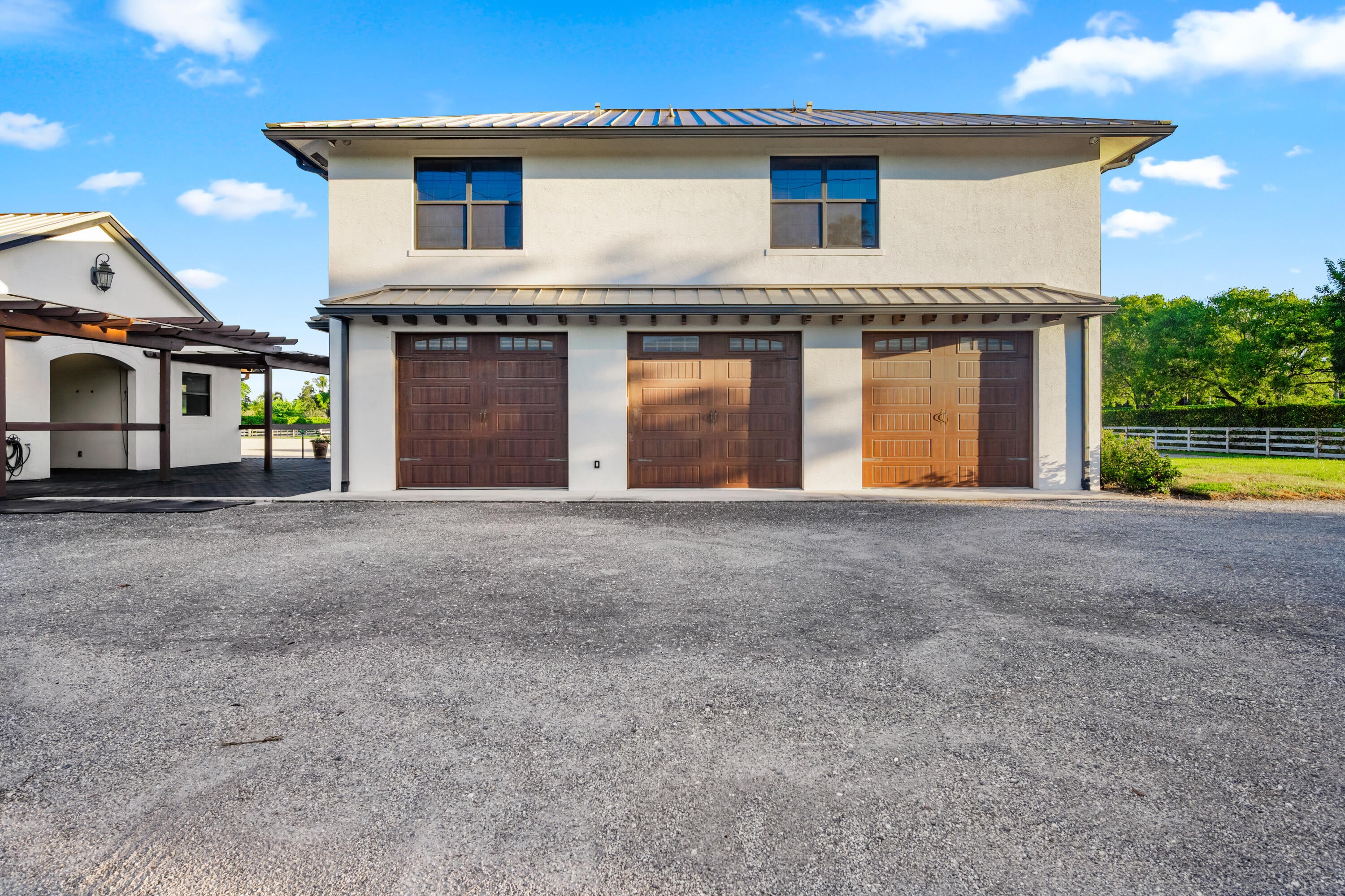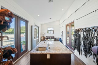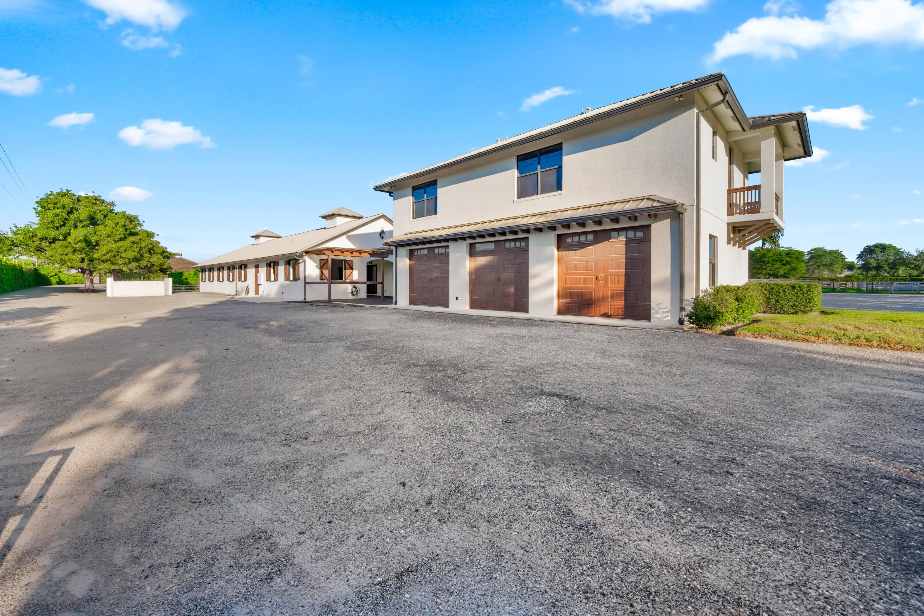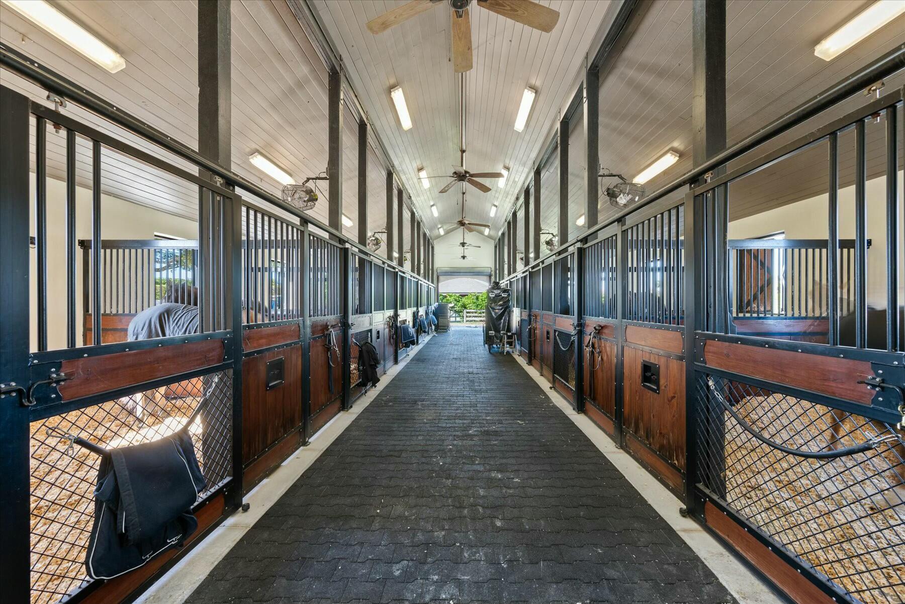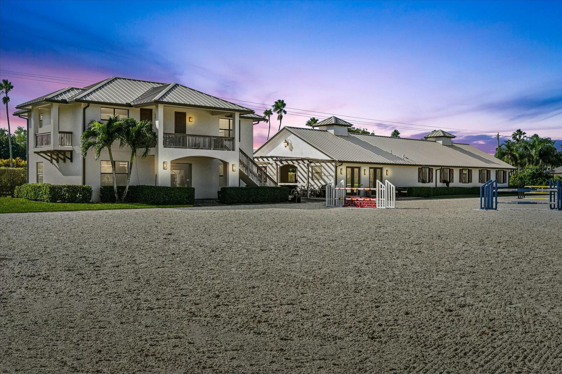 Exceptional Equestrian Estate in Saddle Trail Park, this 2.45-acre, high-and-dry farm is a premier offering. Conveniently located on city water and less than 2,500 feet from WEF's entrance, this property is designed for the serious equestrian. The farm features 7 irrigated paddocks and a Wordley Martin constructed arena measuring 220'x130'. The barn is accessed through an electric-operated gate with a roadside apron, providing easy entry for tractor-trailers and ample space behind the barn for large truck and trailer parking. The state-of-the-art barn boasts: 12 stalls, each equipped w/ high powered fans. Room for temporary stalls in the auxiliary building. Four grooming stalls (three indoor, one outdoor). Three wash racks with hot and cold water.Overhead fly spray system. A/C tack room, feed room, and full bathroom with laundry. Ring observation area adjacent to the tack room. Large manure bin. Adjacent to the barn is a two-story, three-bay garage, featuring: One roll-up door facing the ring, ideal for jump or tractor storage Two separate private-entry apartments: A two-bedroom, one-bathroom unit with a full kitchen, living area, and stackable laundry A studio apartment with a full kitchen, bathroom, and private balcony offering stunning east-facing sunrise views Completing this exceptional property is a five-bedroom, four-bathroom pool home with a two-car garage and gated driveway parking. The spacious split-bedroom layout includes an eat-in kitchen, gas stove, separate dining area, and large family room. French doors open to a covered patio and pool, overlooking the arena. For effortless indoor-outdoor living, a built-in summer kitchen and grill area provide the perfect space for entertaining. This farm is truly a rare find, offering an unparalleled blend of functionality and close proximity to WEF. Schedule your private tour today!