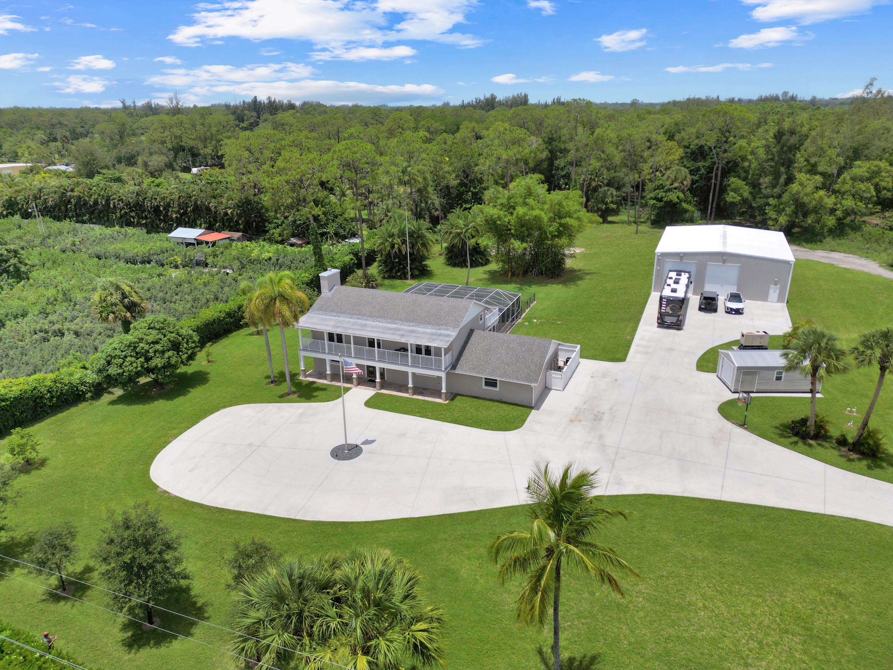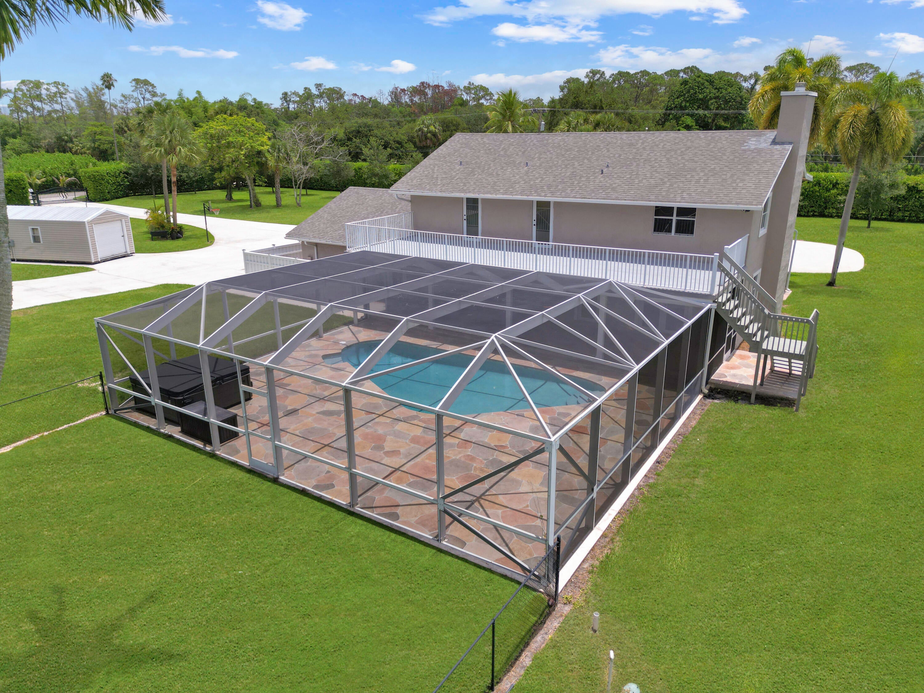 Private 5-acre paradise in Loxahatchee Groves, this custom 4BD/3.5BA pool home boasts over 3,300 sq ft of luxurious living with a chef's kitchen (dual ovens, hibachi island), steam shower in the primary suite, and balconies for sunrise & sunset views. Entertain effortlessly indoors and out with a large living room, fireplace, screened patio, and sparkling pool. The massive 5060 detached garage is ideal for RVs, business equipment, or hobbyists. Zoned Agricultural-Residential with NO HOA--bring your horses, toys, or big ideas. Mature trees, RV hookup, whole house generator, and 3-phase power. Peaceful country living just minutes from Royal Palm amenities and the Turnpike!