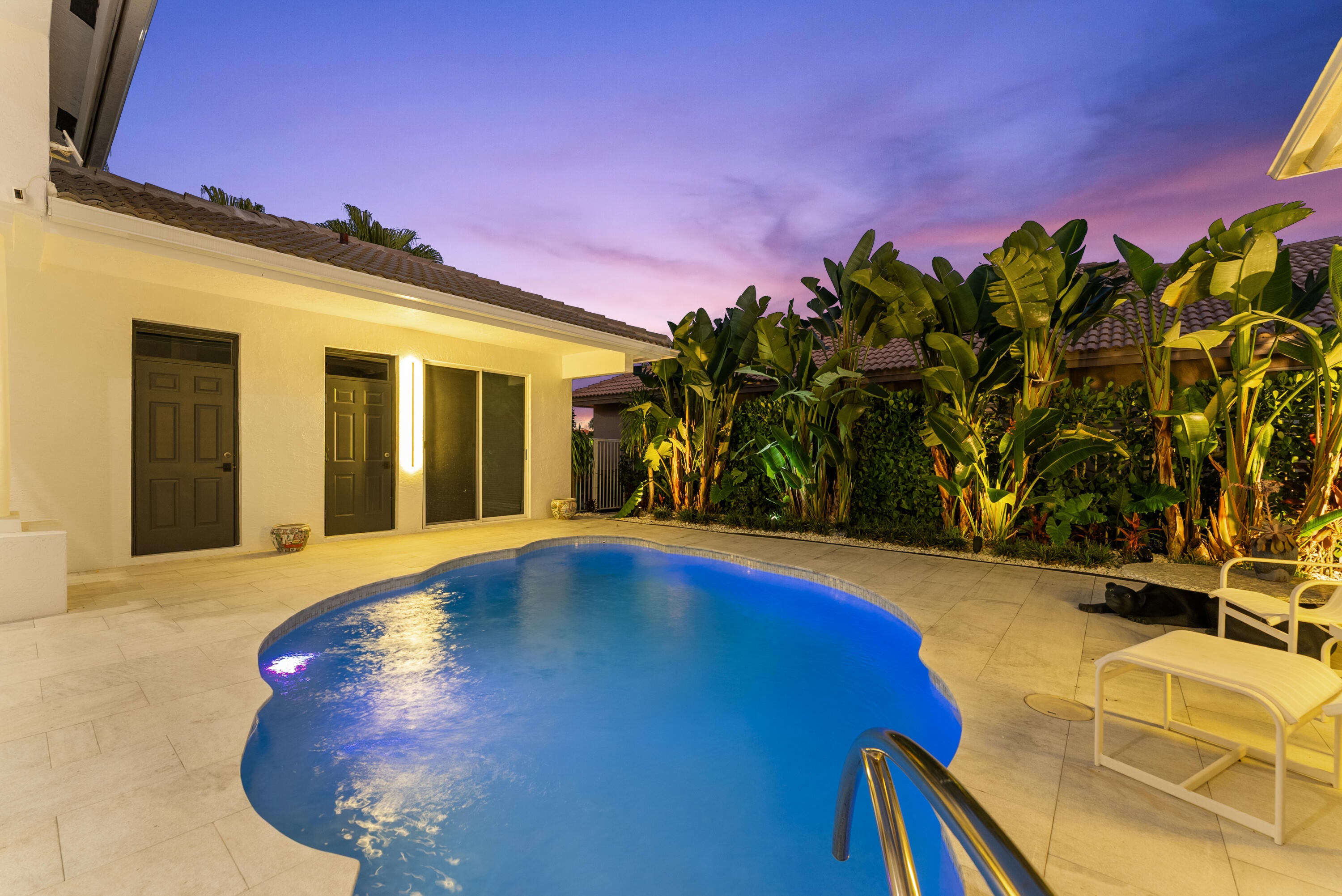 Step into modern elegance in this beautifully updated courtyard home in the sought-after La Corniche community at Boca Pointe. Featuring 3 bedrooms and 3.5 baths, including a private guest house, this residence offers spacious open living with large modern tile flooring and designer light fixtures throughout. The stunning kitchen has been completely redesigned with quartz counters, full backsplash, a massive island, and slate-colored appliances. The primary suite includes two custom walk-in closets and a spa-like bath. Outside, enjoy a refinished pool with a beautiful new stone deck--perfect for relaxing or entertaining. Recent updates include two new A/C units (2023) and two new water heaters. Enjoy the best of Boca living with a newer roof (2018/2019) and optional club membership.