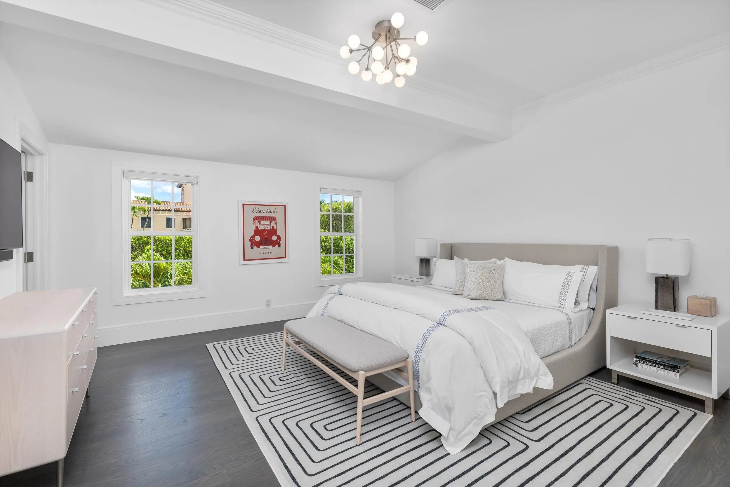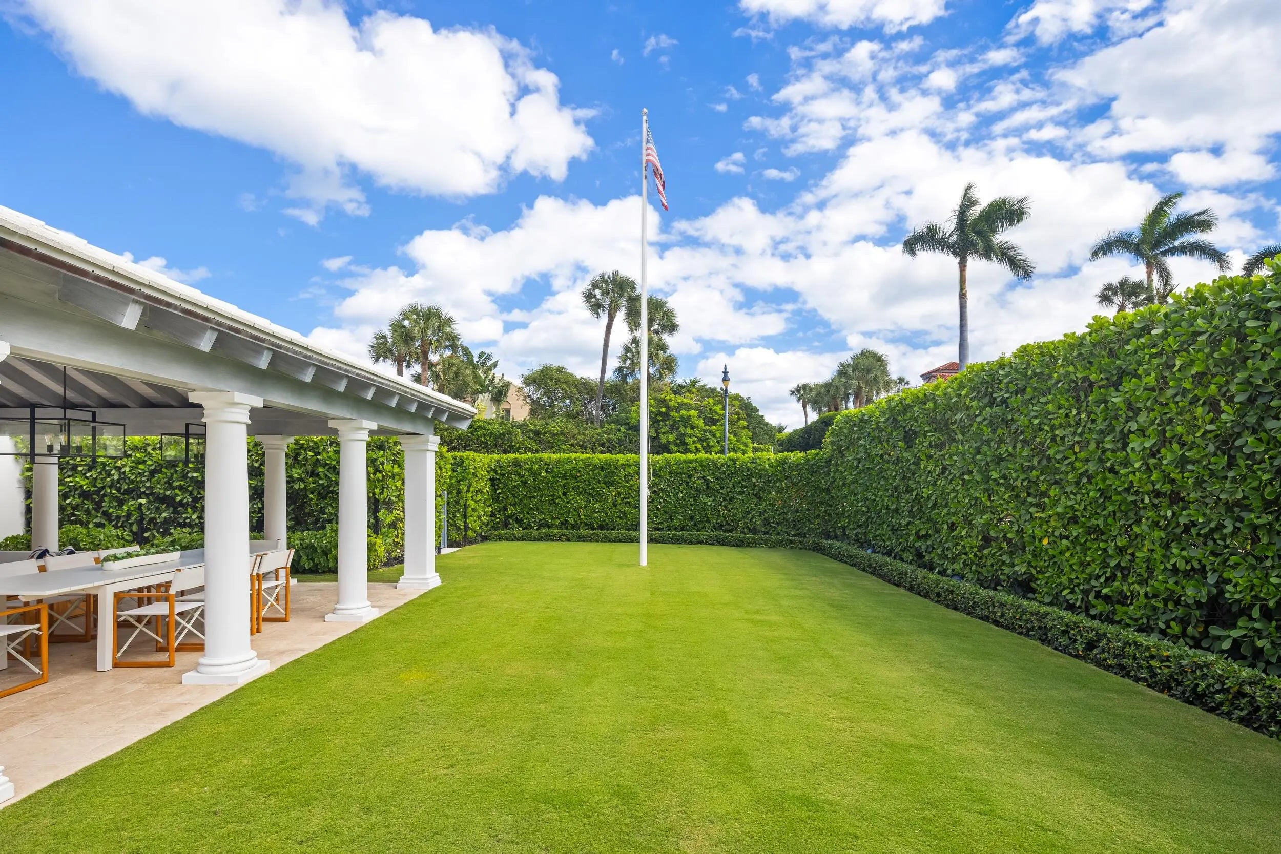 Stunning and pristine 5BR/5.2BA Georgian home beautifully renovated in 2022 with 7,500+/- square feet. Gorgeous and sophisticated marble and hardwood finishes throughout. Thoughtful interior design by Kenny Alpert. Immaculate landscaping surrounding fabulous backyard with resort-style pool, spa, and oversized loggia with fireplace. Living room features fireplace and stunning bar with wine fridges. Top-of-the-line eat-in kitchen with chef's island, wine fridge, and beautiful detailing. Sunny library with built-in shelving. Soaring ceilings, impact windows, and generator. Fantastic Estate Section location with beach access.