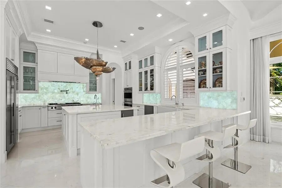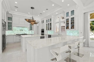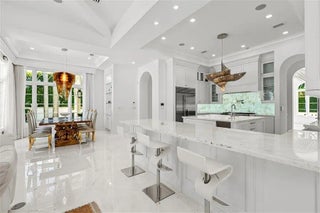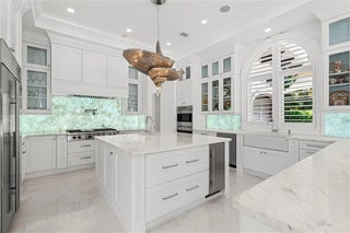 Mastering a mix of classic style and fresh, light ease, this impressive European-inspired showplace by award-winning architect Randall Stofft is beautifully landscaped on an expansive corner property in a desirable beachside neighborhood. Designed for comfortably elegant living in luxe refinement, the stunning interiors open to the resort-like pool terrace and fire-lit loggia with summer kitchen.