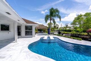 Enjoy the best of Jupiter living! This beautiful 3BR 2BA waterfront pool home is ready for you! This home is a boater's dream with no HOA, situated on 85' of water with direct access to the Loxahatchee river. No fixed bridges! Enjoy light & bright, open-concept living complete with high-end finishes, tile floors and a coastal modern design. The gourmet kitchen features top-of-the-line appliances, custom cabinetry, and quartz countertops with ample entertaining space. The finished garage has room for your cars & storage. Outside, the resort-style backyard is your private oasis--enjoy the newly resurfaced pool, tiki hut, and a private dock with a 12K lb boat lift. Impact windows throughout! Don't miss this opportunity to own a waterfront home in one of Jupiter's best kept secrets