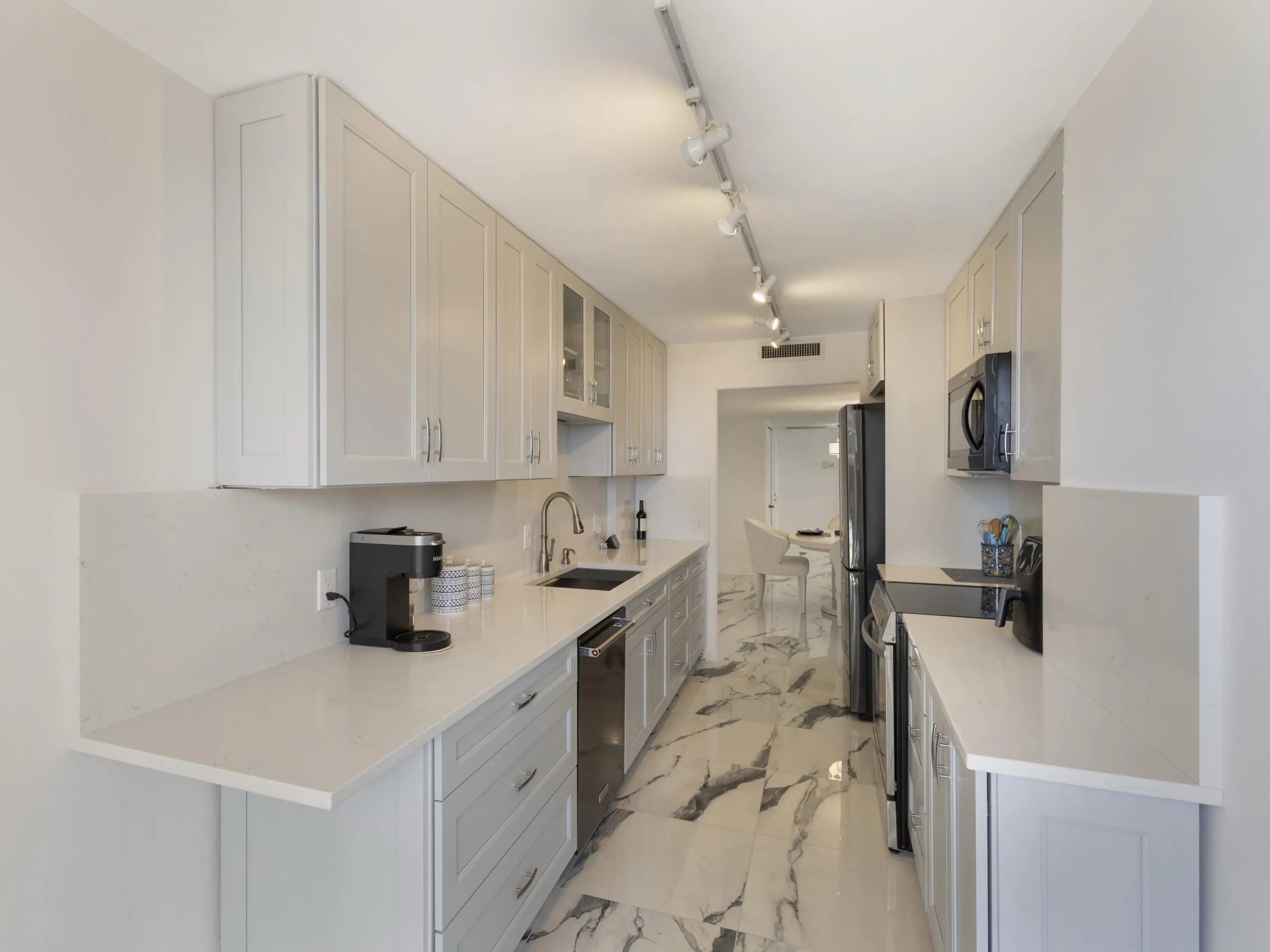 Welcome HOME!Experience the epitome of resort-style living at Cote d'Azur, where luxurious coastal living meets unparalleled amenities. This stunning 2-bedroom, 2-bath condo boasts breathtaking ocean and intracoastal views, perfectly capturing the essence of Singer Island's sun-kissed paradise.Luxurious Features:Fully remodeled with desirable split floor planCeramic tile floors throughoutBrand-new kitchen equipped with stainless steel appliances, induction stove, modern cabinetry, quartz countertops, and backsplashImpact windows and doors for added safety and energy efficiencyDedicated laundry room with full-size washer and dryer