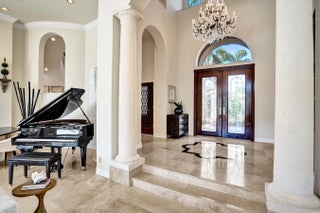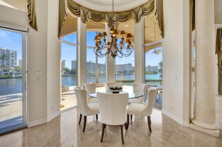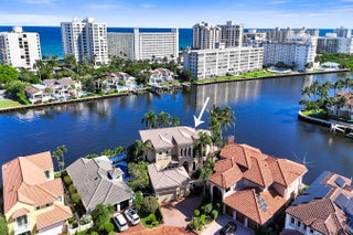 Welcome to prestigious Villa Bellavista and experience unparalleled luxury and privacy in this rare Intracoastal point-lot estate, ideally situated within one of Delray Beach's most exclusive gated enclaves. Perfectly positioned on over 139 feet of direct waterfront, this 5,092-square-foot residence captures breathtaking panoramic views and offers a seamless blend of sophistication, craftsmanship, and modern comfort.Step through a gated courtyard with a tranquil fountain and into a home that radiates timeless elegance. The grand foyer welcomes you with soaring ceilings and rich marble flooring that flows throughout the living spaces.Designed for both comfort and entertaining, the expansive living area features a fireplace, a full-service wet bar, and walls of glass sliders framing endless water views. The formal dining room and gourmet chef's kitchen create the perfect setting for intimate gatherings or grand celebrations, featuring granite countertops, an oversized island, a butler's pantry, and high end stainless steel appliances including double ovens, a warming drawer, and a new refrigerator and freezer. 4 luxurious bedroom suites each enjoy serene waterfront vistas. One bedroom suite is conveniently located on the main level, while the upper level accessible by glassed elevator or sweeping staircase hosts 3 additional suites, including the opulent primary retreat. The primary suite offers dual oversized walk-in closets and a spa-inspired bath with double vanities, a soaking tub, and a glass-enclosed shower. Outdoors, an entertainer's paradise awaits. Enjoy a spacious covered patio, large pool and spa with a new heater, and lush tropical landscaping overlooking the Intracoastal and extra wide side canal. A private concrete dock, batter-piling seawall, and deep-water access make this home a true boater's dream with plenty of space for a four post or elevator lift. The property also boasts a large 3 car garage, with plenty of space for your prized possessions. Residents of this prestigious community enjoy resort-style amenities including a waterfront clubhouse, marina with boat slips, gym, tennis/pickleball courts, 24-hour guard gate, and a community pool. This exceptional Delray Beach waterfront estate offers the best of coastal living where elegance, functionality, and panoramic beauty converge.