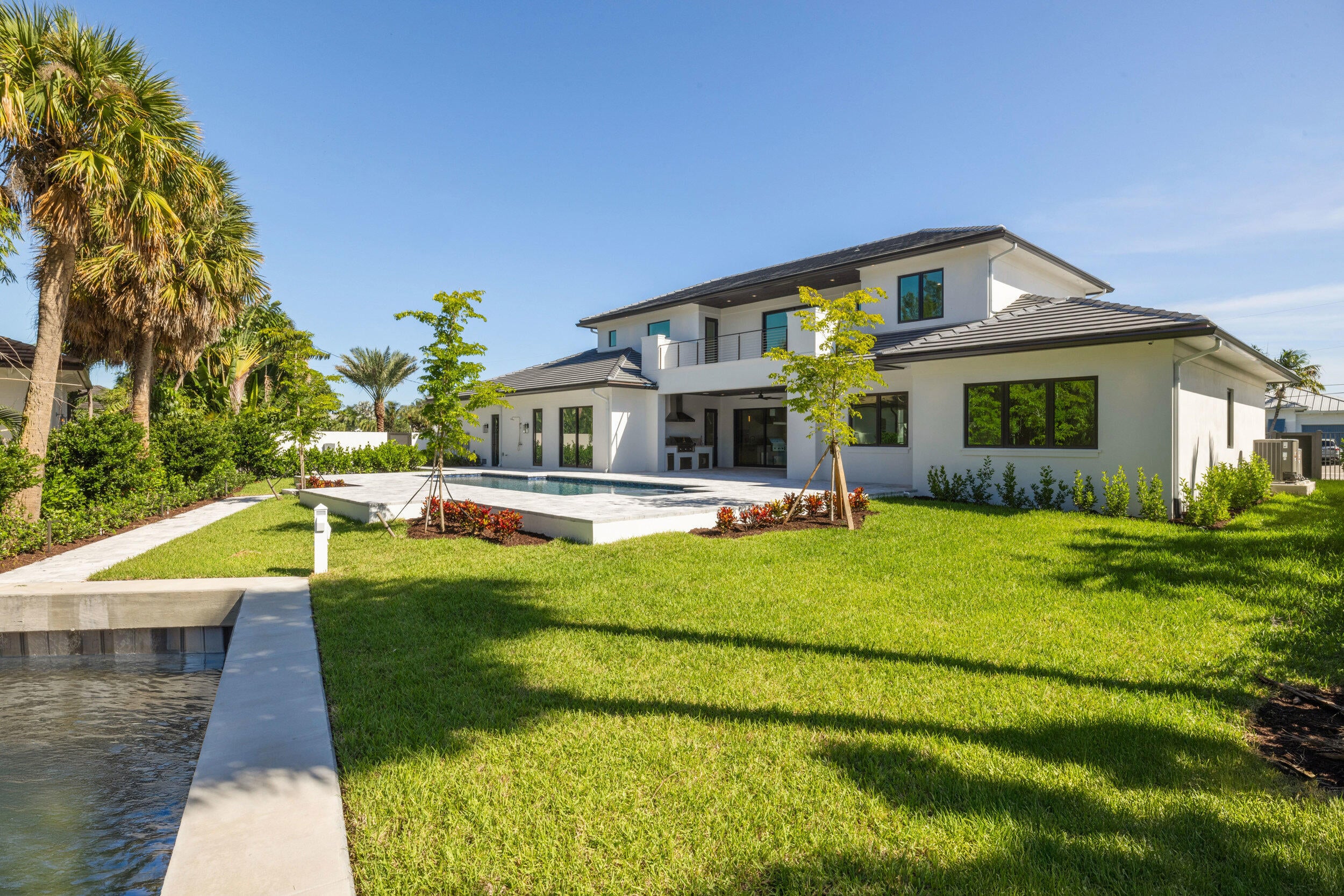 11721 Lakeshore Place, North Palm Beach,A Singular Masterpiece in North Palm Beach - Where Vision, Engineering, and Uncompromising Craftsmanship Converge.Welcome to a custom-built legacy estate in the heart of North Palm Beach--where every square foot of this residence reflects intentional design, structural excellence, and luxury without compromise. Situated on a generous lot with a brand-new private boat basin and yard to spare, this two-story home was conceived with the functionality of a discerning owner and executed with the quality mindset of a master builder.The primary suite on the main level anchors a smart and livable floor plan, finished with engineered hardwood floors, floor-to-ceiling tiled showers, custom cabinetry and floating vanities. Every room is a reflection of sophistication, comfort, and practicality. Construction highlights include: 20-gauge steel studs, 5/8" drywall on all walls and ceilings, and spray foam insulation.Fi-Foil on chase and exterior walls, batt insulation in every wall for unmatched sound attenuation. Gypcrete subfloors and batt insulation between floors. Concrete roof tiles built to withstand Florida's coastal conditions along with Impact-rated windows and doors throughout. Mechanical and future-ready provisions include: Two tankless water heaters with a recirculating pump, hot water, instantly. Garage prepped for mini split system for future climate control Elevator shaft and generator conduit in place for seamless upgrades. All A/C systems coated and treated for durability in the coastal climate. The home's technology and systems deliver ease and elegance: Automated lighting control system,Central vacuum, Dedicated Audio/Video closet, the home is Pre-wired for motorized drapes/window treatments, Chandelier motorized to lower for safe, easy cleaning, Wood blocking for all TV mounts and cabinetry installs. Exceptional lighting provisions throughout the entire home Exterior living is just as intentional, with soffit lighting to highlight the home's architectural beauty, a vented outdoor kitchen, and a 16x36 custom pool with sun deck and spa, ideal for Florida living year-round. This home offers unparalleled storage, layered infrastructure, and a deep understanding of what makes a home livable and lasting. From concept to execution, no corner was cut, no detail overlooked. This is not a spec. This is a statement. Built once. Built right.