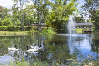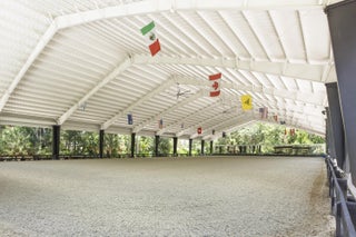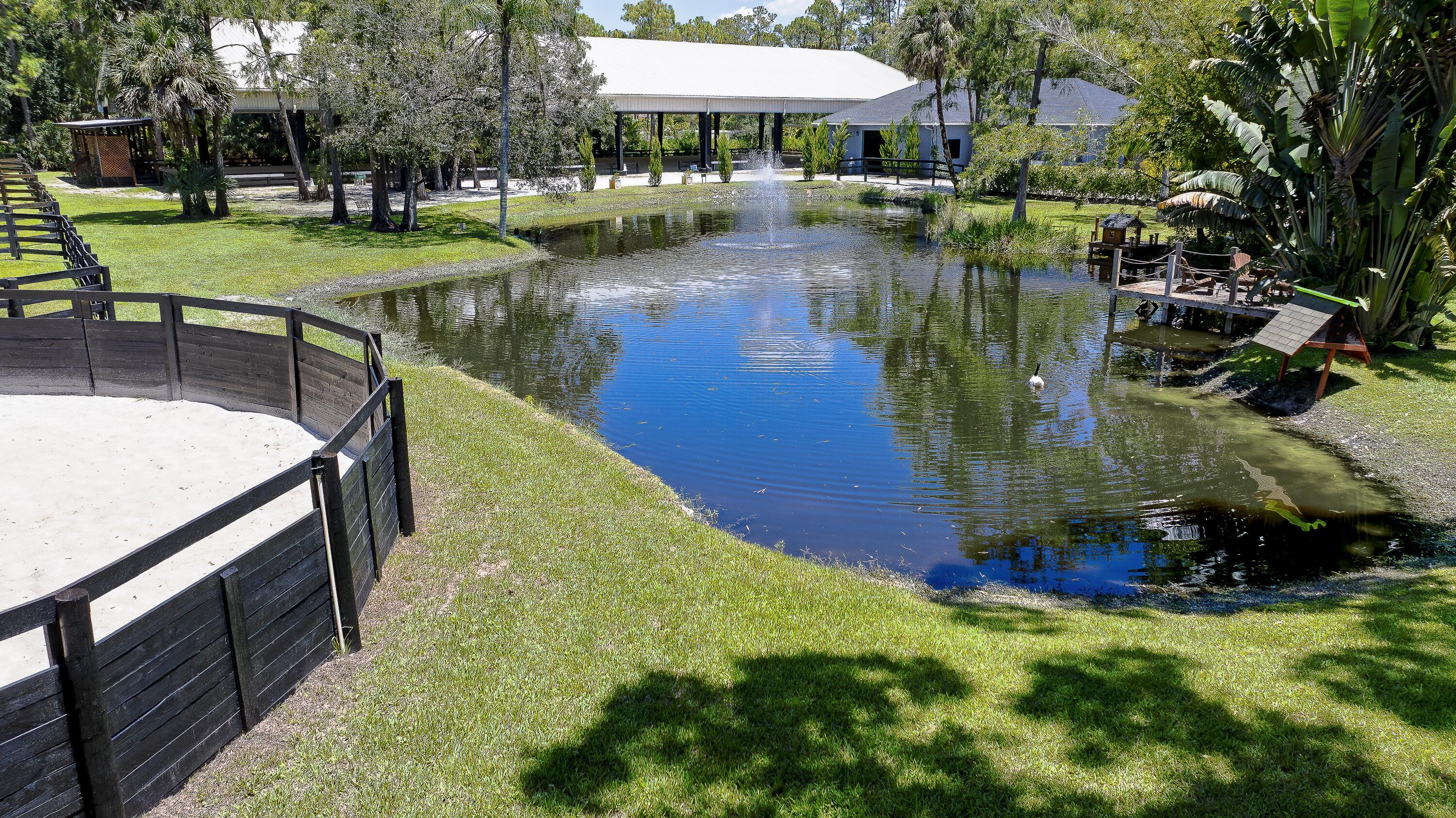 Discover an equestrian haven beyond the iron gates where serene natural beauty meets exceptional functionality. This property features lush grounds that frame a picturesque Swan Lakea''an idyllic centerpiece surrounded by stunning landscaping and vibrancy. A new Covered Arena with premium GGT awaits with State of the Art Ebb and Flow system. The property boasts 12 stalls, and lush, maintained paddocks. Barn is exclusive and has commanding, dedicated iron gate entrance separate from other side! Mins to WEF and Global, Perfect facility for jumpers or dressage. Owner adding second ring at South corner entrance. You will love your training here overlooking beautiful trees, paddocks, and lovely pond with beautiful swans. The pagoda gazebo is a wonderful area to relax and unwind after riding.Barn has covered wash stalls, nice center aisle, high ventilated ceilings, nice maneuvability and parking, very cool adornments throughout. Arena has beautiful viewing area with fans and seating, it's gorgeous here!