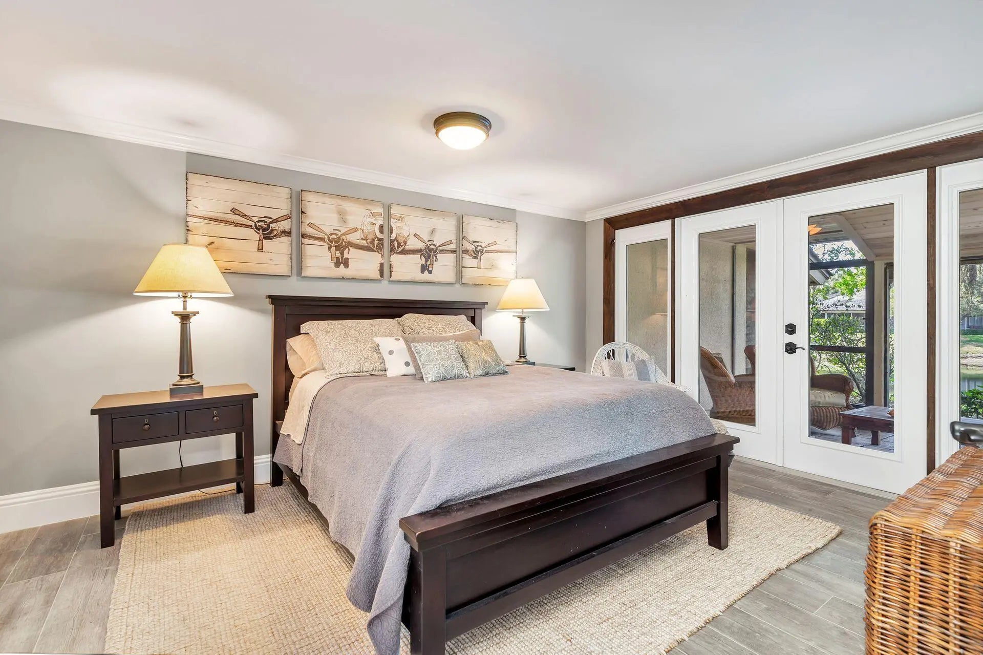 Built-in Shelves, Closet Cabinets, Custom Mirror, French Door, Pull Down Stairs, Sky Light(s), Split Bedroom, Volume Ceiling, Walk-in Closet