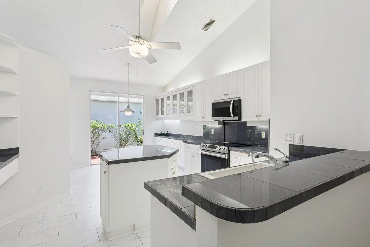 One-story lakefront home with spectacular water views. Light-filled 3-bedroom, 3-bath layout includes a large owner's suite with walk-in closet and updated owner's bathroom, plus two additional bedrooms. Gourmet kitchen with island opens to bright living areas; sliders lead to a sunny Florida room and outdoor patio. Newer floors and fresh paint throughout. Two-car garage with large driveway. Gated community with mandatory social membership; new clubhouse offers dining, fitness center, pool, tennis and pickleball. Beach 15 minutes away.