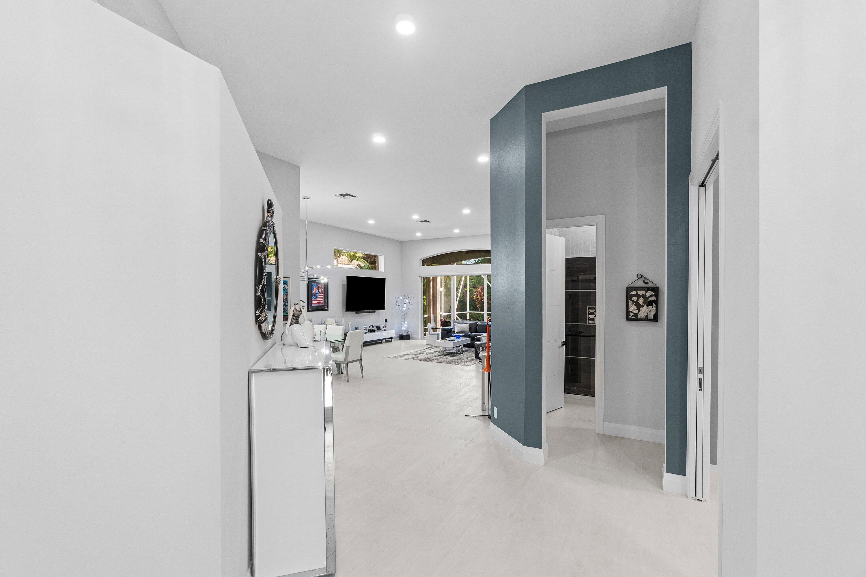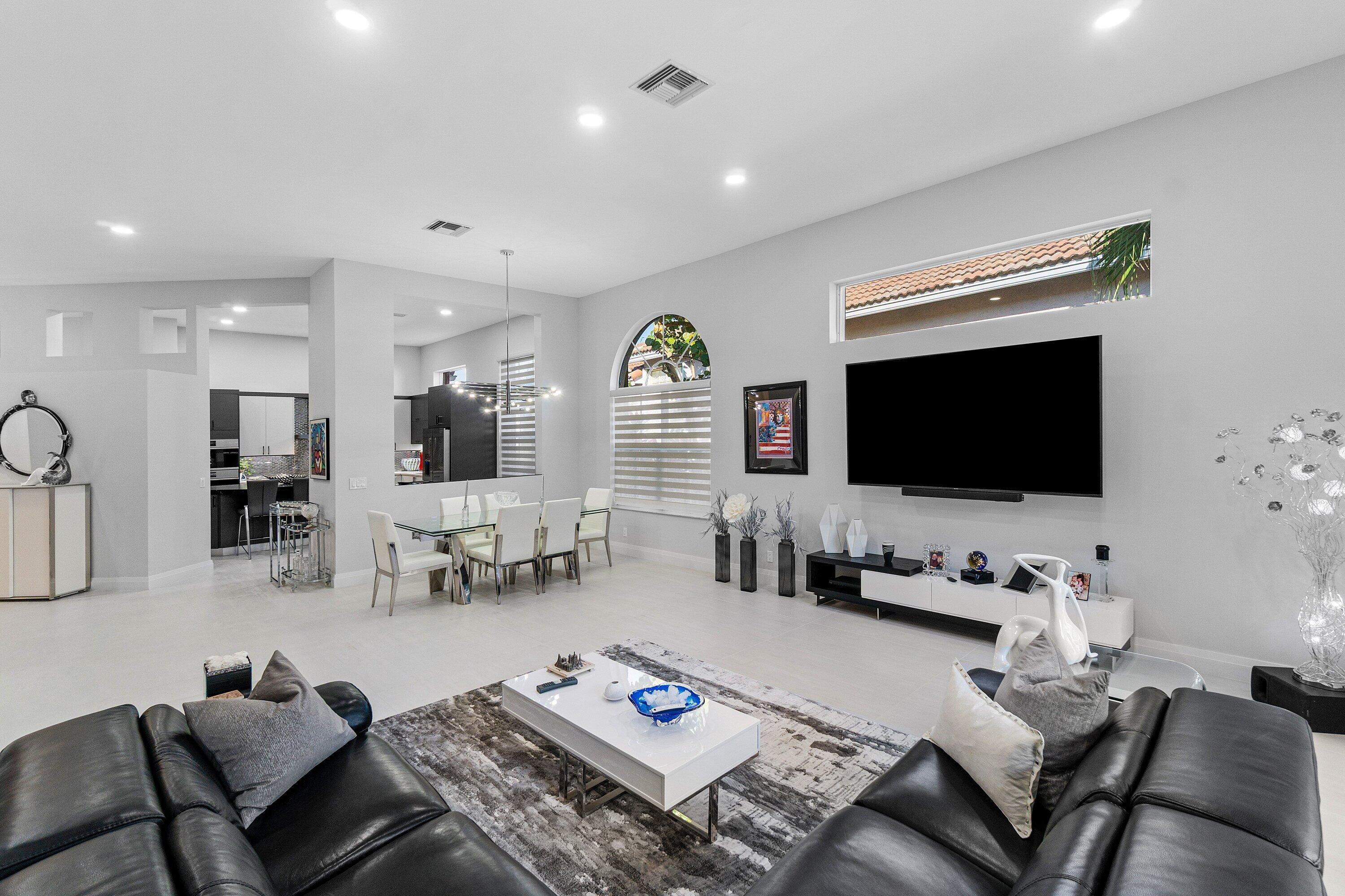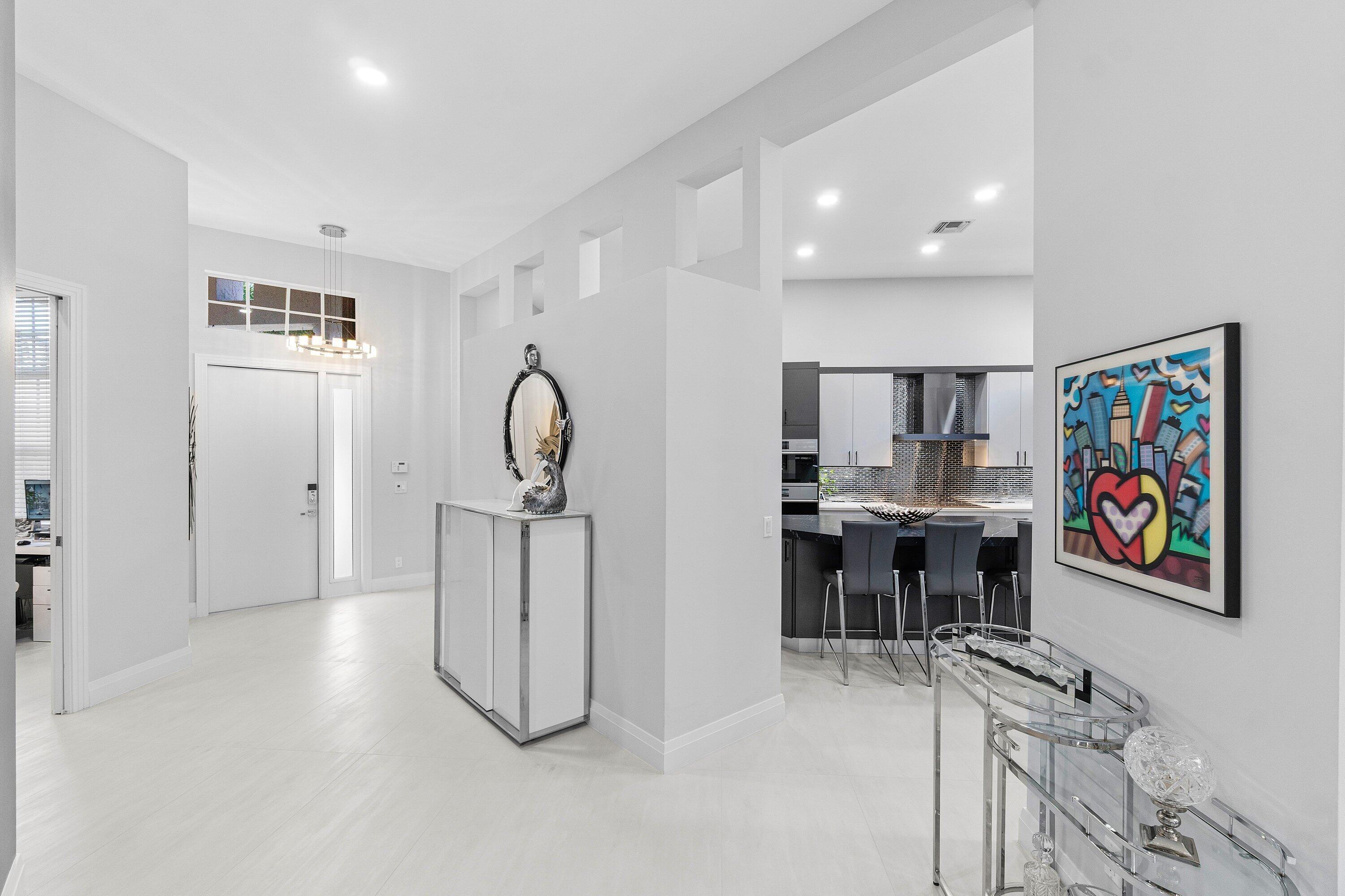 Step into luxury with this beautifully updated home featuring designer details and exceptional craftsmanship at every turn. The open-concept layout boasts 12' ceilings and porcelain 24x48-inch tile flooring throughout, creating an elegant and spacious feel. The gourmet kitchen is a chef's dream with quartz countertops, a striking porcelain island, GE Cafe appliances with Bluetooth capability and a granite composite sink with a Kohler touch free faucet.. You will find amazing storage space in the kitchen with pull out shelves in the pantries.Relax in the spa-inspired primary suite offering a separate raised soaking tub and walk in shower with raised floor, and enjoy the convenience of a large custom-fitted bedroom closet providing abundant storage.The second and third bedrooms have been tastefully decorated and the second bedroom is an ensuite providing privacy for those guests or family members staying overnight. The custom laundry room, generous built-ins, and thoughtful storage solutions add everyday functionality to this luxurious home. You will also appreciate the newer solid core wood doors which have been installed throughout the home. Enjoy your morning coffee or your favorite beverage in the privacy of your screened lanai with no rear neighbors . Aberdeen CC provides great value and amenities at a fraction of the costs of other high price country clubs. If you are looking the Country Club lifestyle and a home that provides all the bells and whistles, make sure you see this home before making your buying decision. Every inch of this residence has been thoughtfully curated with high-end finishes and mo
