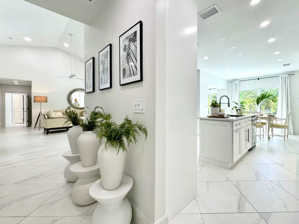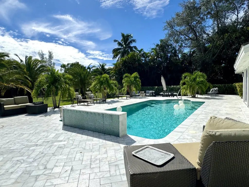 Stunning 3BR/3BA home on a private 1-acre lot nestled behind the gates of the exclusive Delray Lakes Estates. Completely rebuilt with luxury finishes throughout. Features include soaring ceilings, open floor plan, impact windows/doors, newer roof, insulation, drywall, and lighting! Gourmet kitchen with new cabinetry, quartz counters, JennAir appliances, double oven, beverage fridge, and induction cooktop with commercial hood. Expansive primary suite with dual walk-ins, spa bath with soaking tub & large shower. All bedrooms are ensuite with outdoor access! Over 8,000 sq ft of new marble pavers surround the pool & courtyard. Backyard includes new lush landscaping with exotic palms, new pool pump, Diamond Brite finish, and space for pergola/outdoor kitchen!