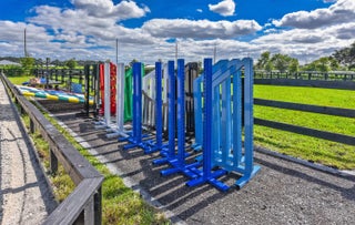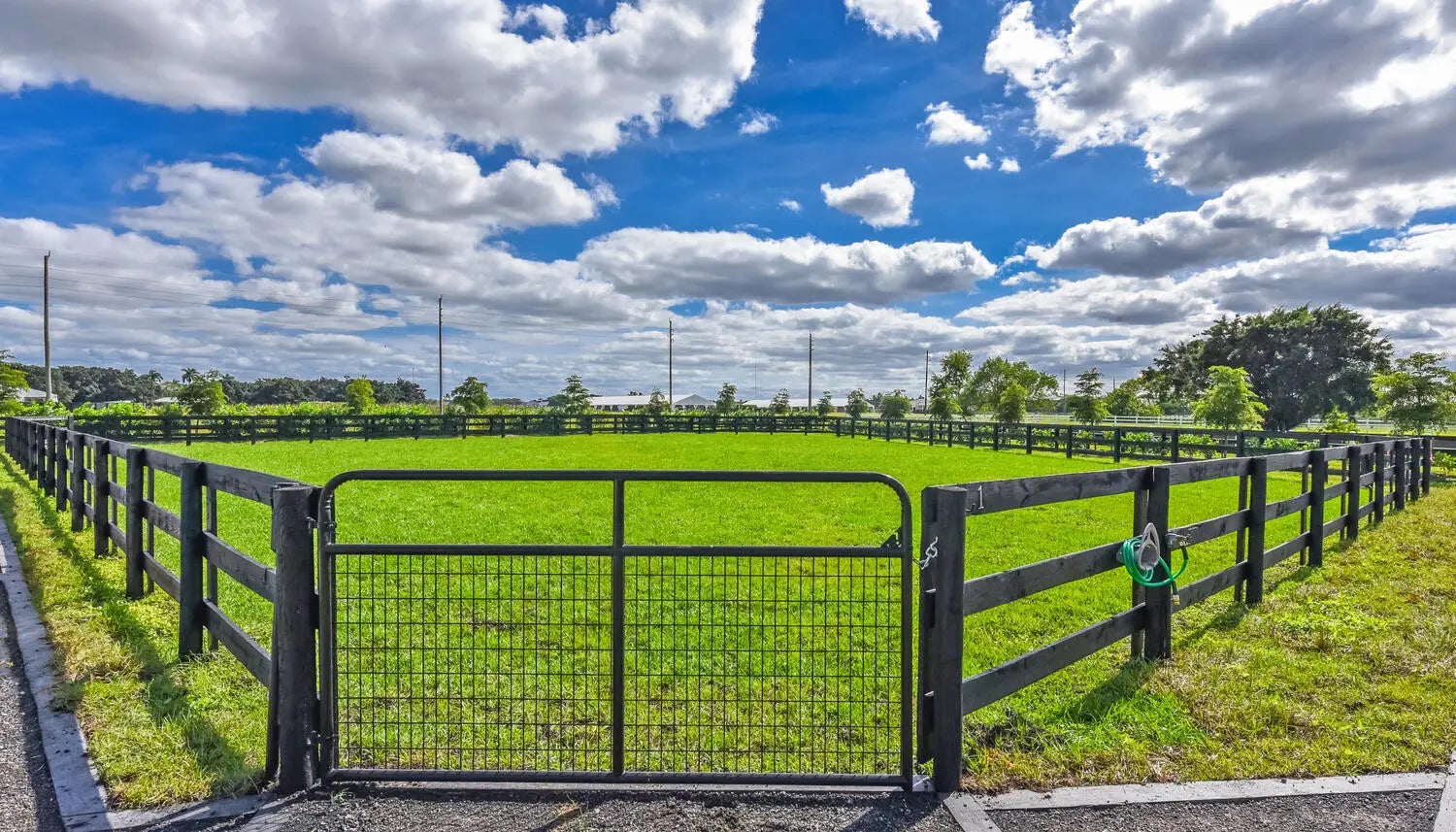 Spend the 2025/2026 season at this brand new, state of the art facility in Palm Beach Point. Available for immediate occupancy. Offering up to 10 stalls, 7 oversized paddocks, an equine treadmill, 2 grooming stalls, 2 wash racks, and a brand new 220 x 120 irrigated arena with GGT footing, this property truly has it all. Being at the best location in Palm Beach Point on the bridle path, you can truly walk to the WEF show grounds with ease. The fully furnished 2 bedroom, 2 bathroom apartment, conveniently located on property, is perfect for any rider, manager, trainer, or groom.Seasonal price breakdown:$3,100 per month option for stalls.$2,600 per month option for stalls. $5,000 per month for the apartment.
