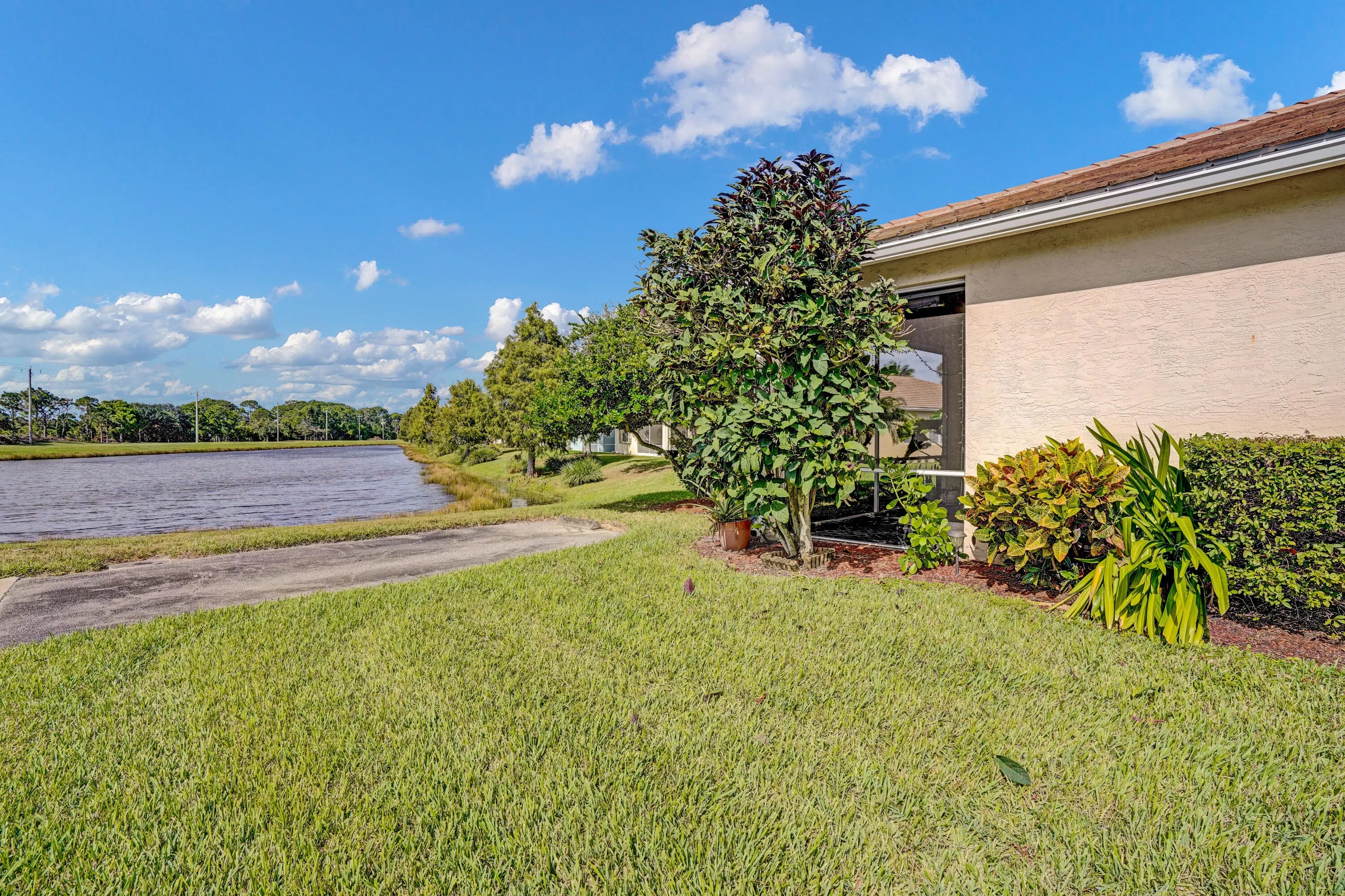 Well maintained lakefront home in quiet gated community in St. Lucie West. Minutes to shopping, turnpike, I-95 and schools. Enter through the private courtyard to a spacious living/dining room with lake views. Eat in kitchen with sliders to courtyard. The Magnolia floorplan (attached) features separate bedroom area, great for guests.This home is listed as a 2 BR with a den, but could easily be made into a 3 BR. You just need to add closet doors. Low maint. fees include basic cable, lawn maint , common areas, and community pool.Don't miss this one!