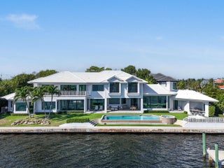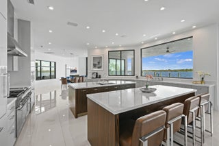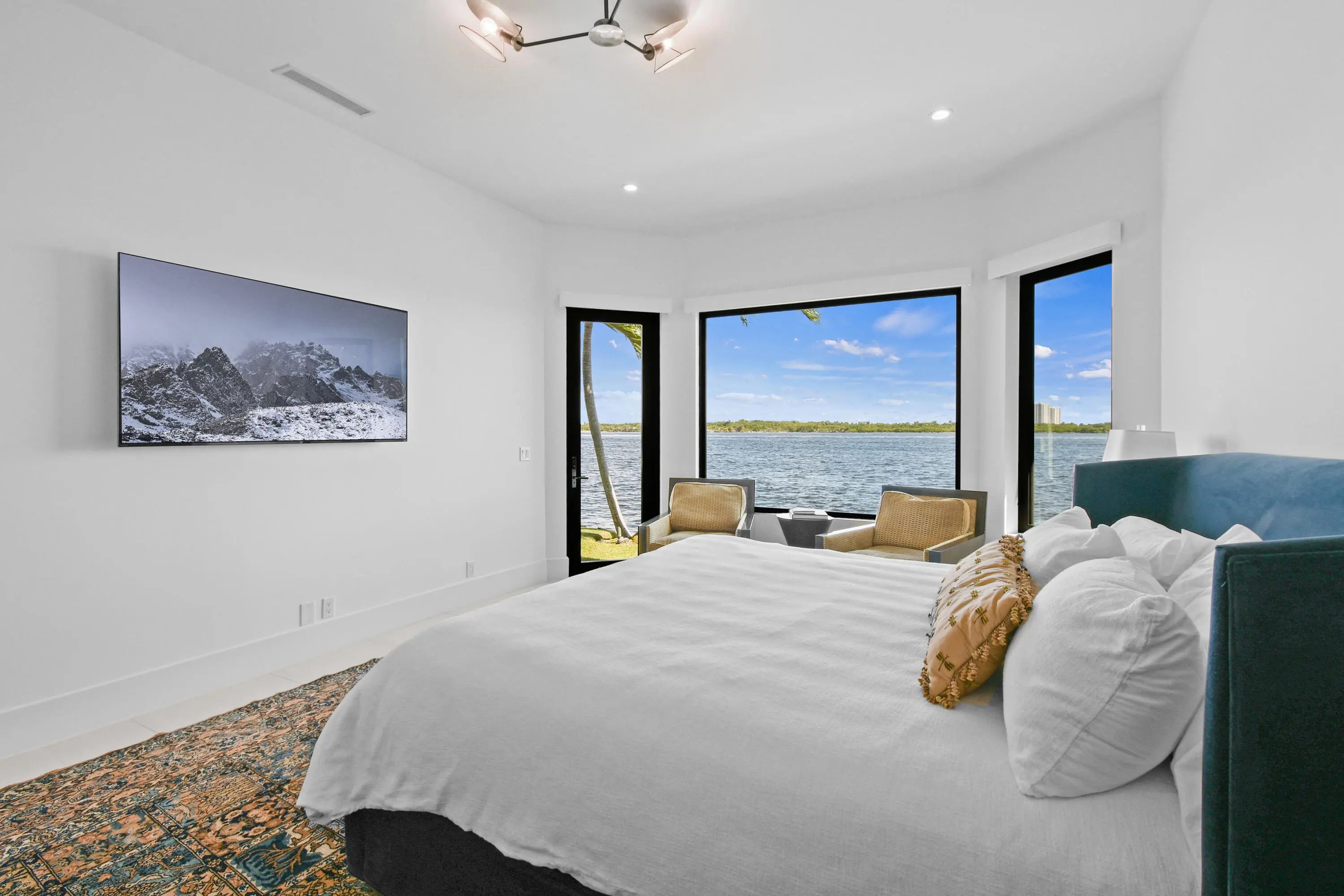 Experience the pinnacle of waterfront luxury with this exceptional estate, offering sweeping 180 panoramic views of MacArthur State Park, Munyon Island, and Singer Island. Perfectly positioned on a highly coveted .41-acre point lot, this residence showcases 219 feet of premier water frontage and captivating, wide-water vistas that span Lake Worth and the Intracoastal Waterway. Inside, the home's five bedrooms, six full baths and two half baths are designed around a bright, open-concept layout that captures stunning water views from nearly every room. The gourmet kitchen features dual islands, top-of-the-line appliances, and a seamless flow that's perfect for both entertaining and everyday living. Two primary suites offer serene retreats, each thoughtfully designed with