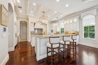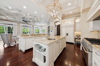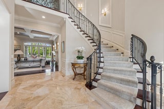 Elegant 2-story residence sited on private lushly-landscaped lot built by SRD Building Corp. Incredible detail and quality presents -from the foyer with marble & inlaid wood floors and winding staircase to the formal living roomwith fireplace enhanced with mother of pearl inlays, formal dining room, spacious club room, home office/library, large kitchen appointed with top-of-the-line appliances and separate eating areaoverlooking the beautiful pool and yard. 2 lovely 1/2 baths complete the 1st floor.2nd floor offers a family room , 5 ensuite bedrooms all with outfitted closets, and a laundry room. The spacious primary suite has luxurious his and hers baths, large closets and a private balcony .Gorgeous pool with spa, covered patio and summer kitchen offer a tranquil retreat.