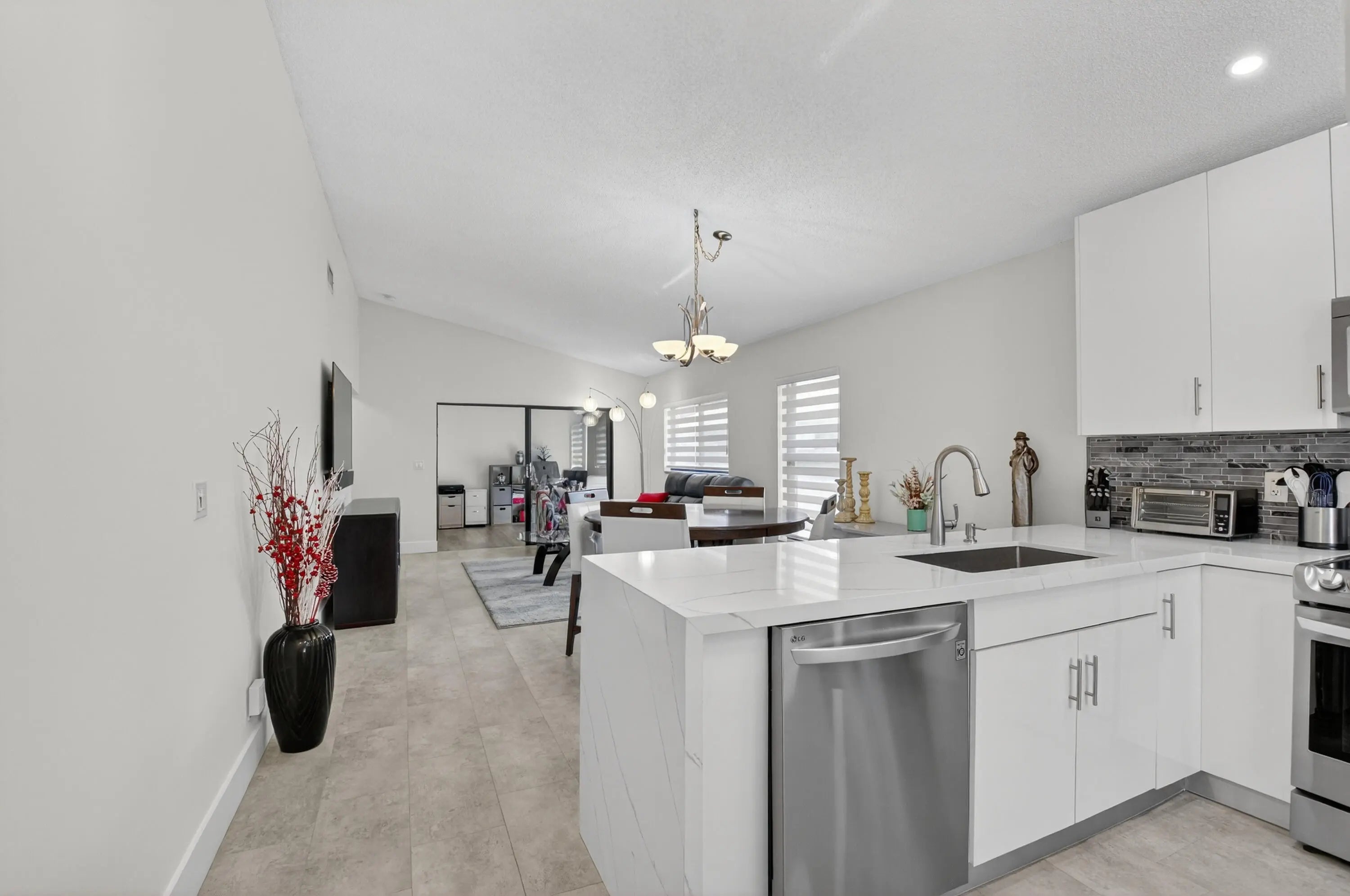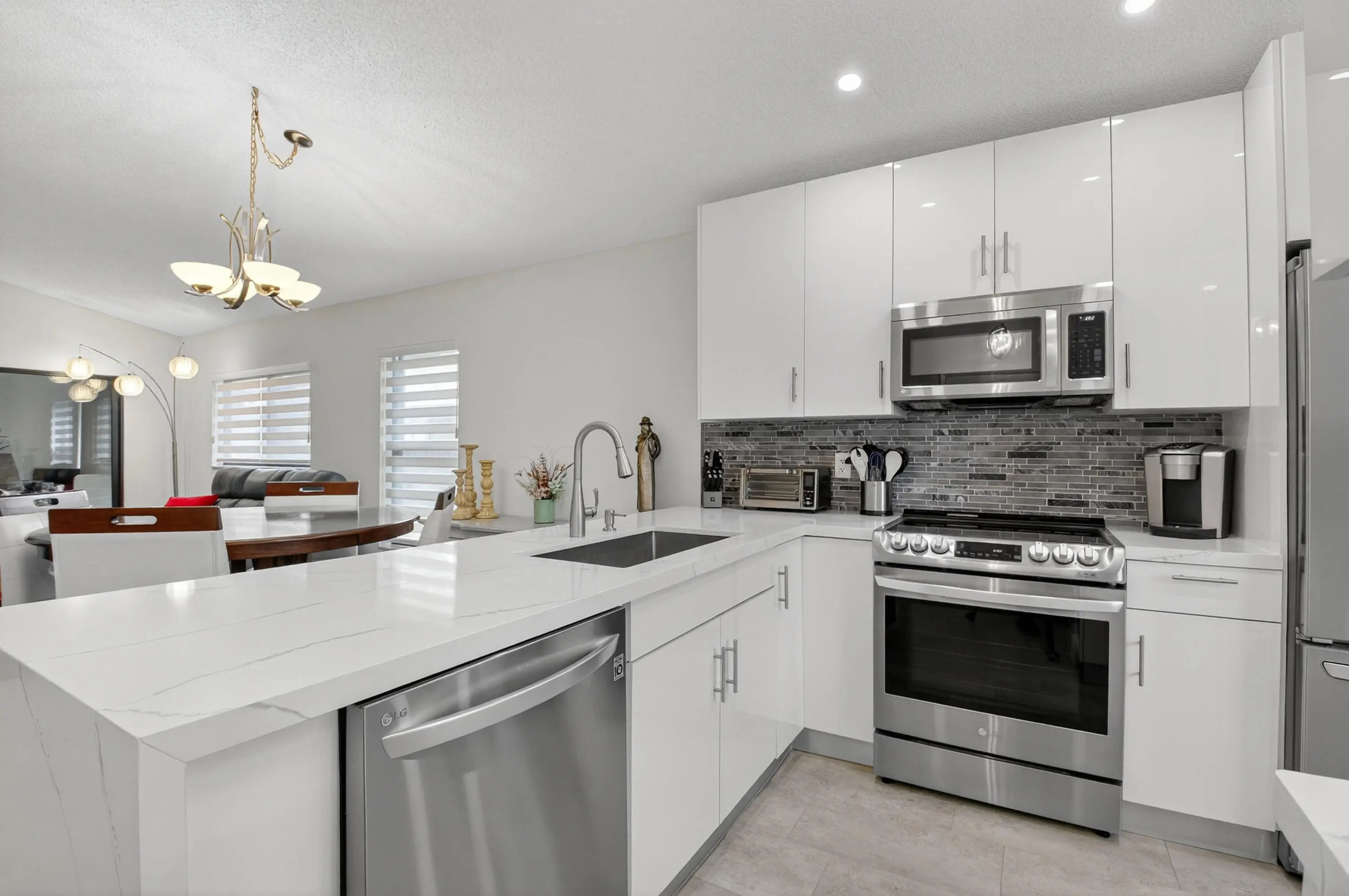 Move in Ready! Exquisite totally redone 2 BR, 2 Full Bath plus air conditioned Bonus Room to be used as office or 3rd bedroom if you prefer. This corner villa features the following: Hurricane windows thru out, Beautiful Chefs Kitchen featuring Glass Backsplash, all new GL Appliances, Quartz Countertops, all with designer perfection. New roof, attached garage, brand new A/C, newer H20 heater plus separate laundry room (good for storage) Baths feature gorgeous tiling and vanities with exquisite appointments. Can walk to clubhouse and pool. This gated pristine, parklike, 55+ community features pickleball, tennis fitness center and more. Located near major highways, restaurants, shopping, places of worship and central Boca Raton. Run don't walk...just bring your toothbrush and move i