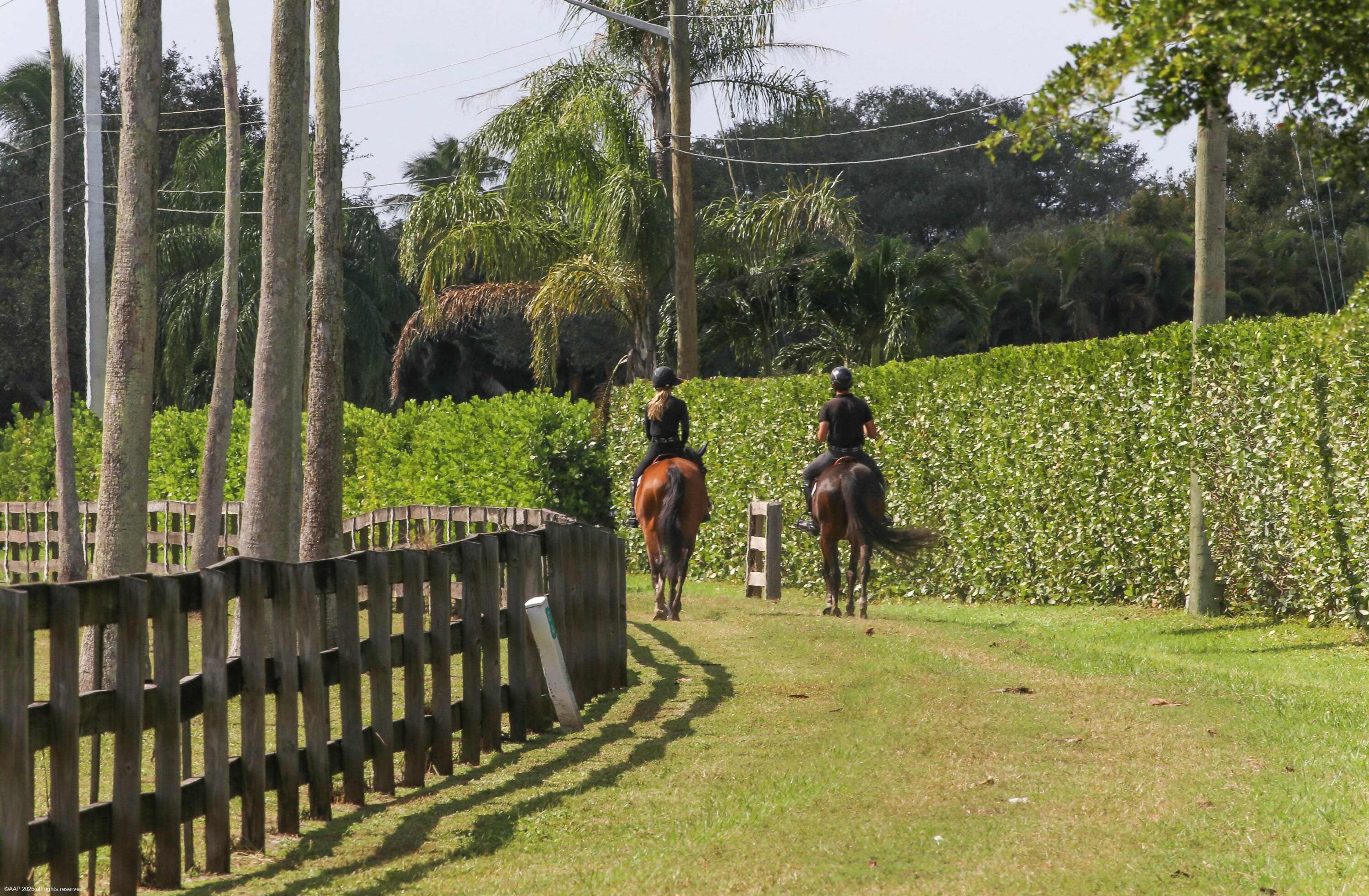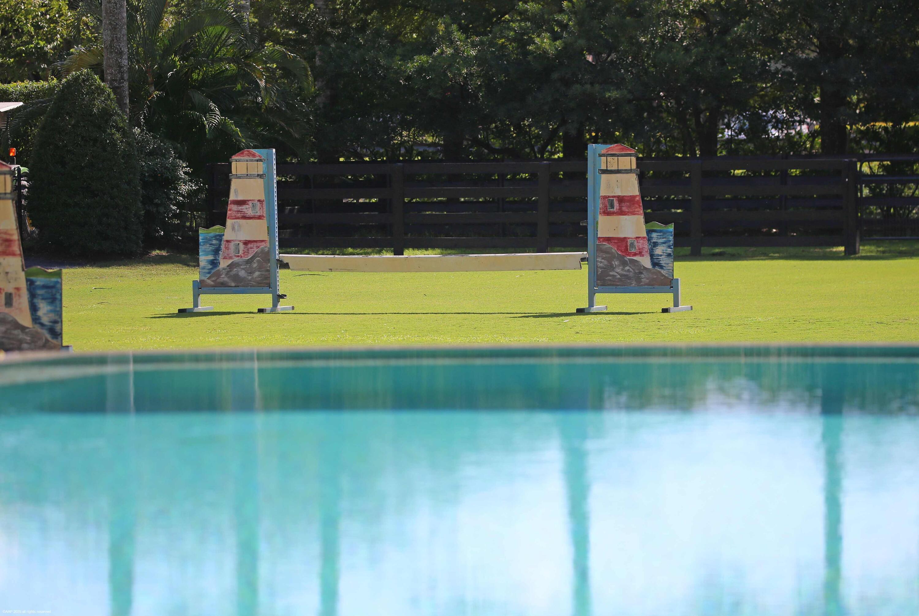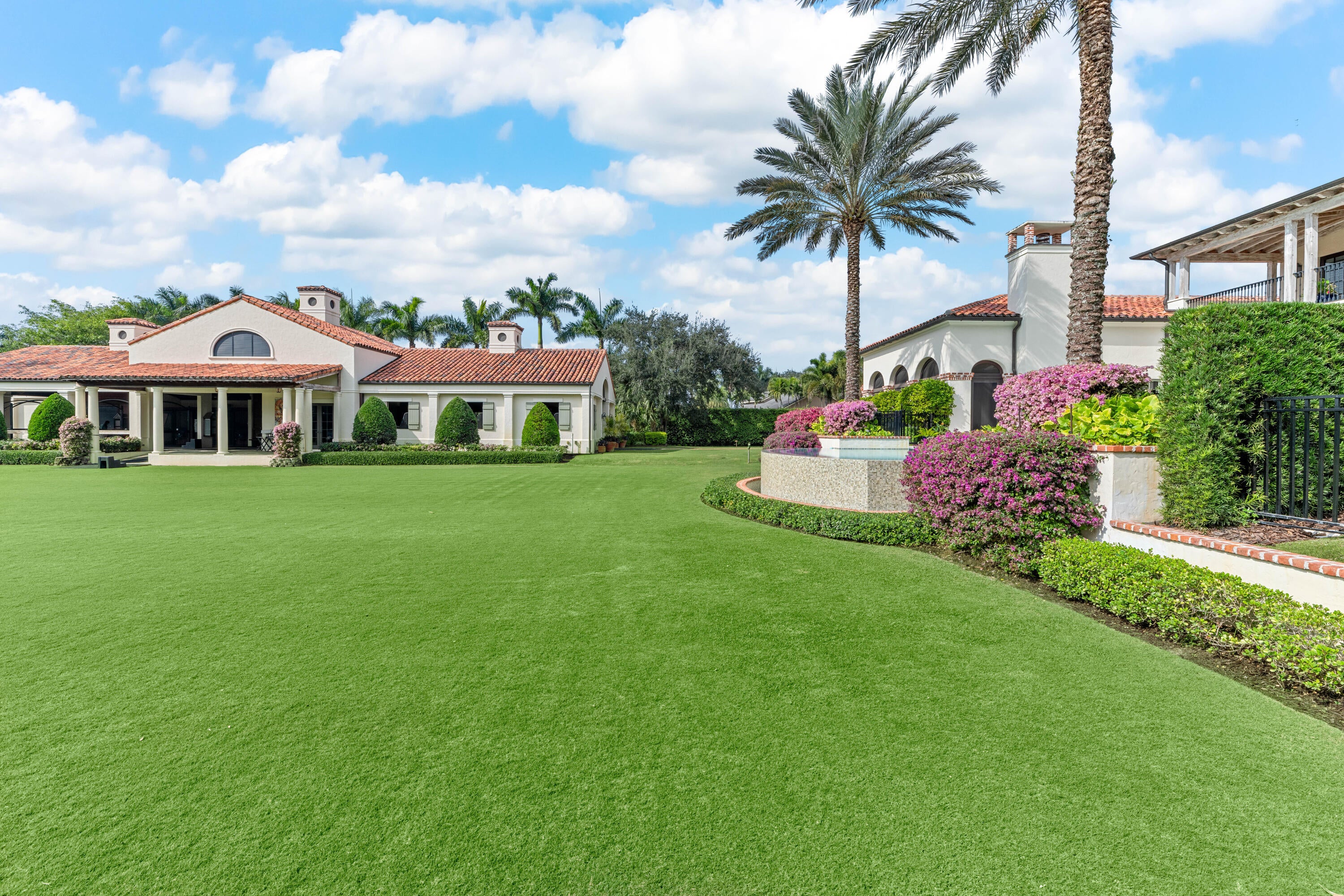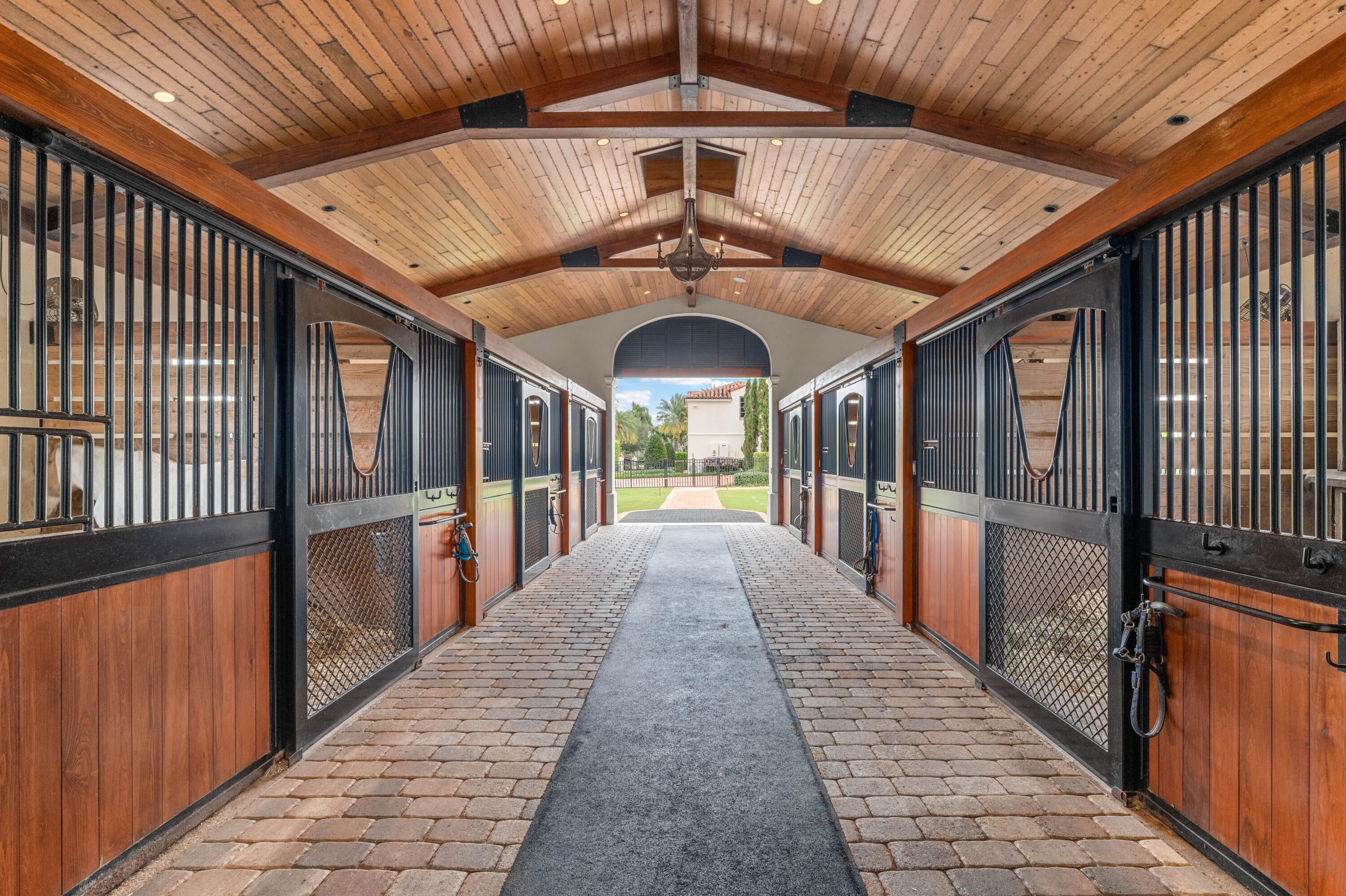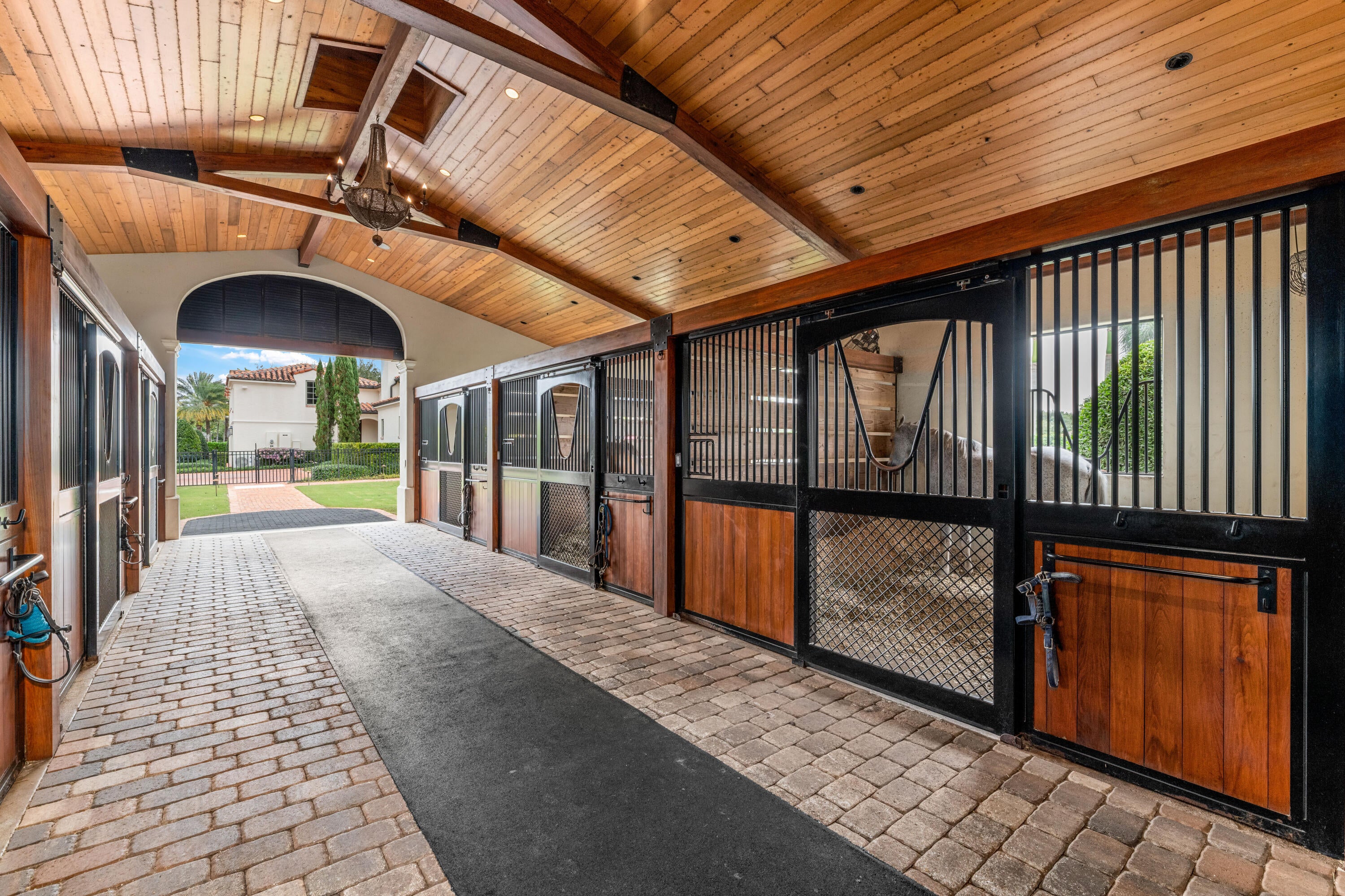 A true masterpiece! Unmatched equestrian estate positioned next to Wellington International horse show grounds. Mere minutes walking to the competition arenas. The main home and owners barn were constructed with the highest quality and finest design. A standing work or art! This Mediterranean style equestrian compound boasts Palm Beach Island level finishes and spans over 4 acres across two lots and includes an exquisite, 11,359 sq ft (7878 sq ft under air), 5-bedroom plus office main residence with a guest apartment, two 8-stall barns, a 3-bedroom staff apartment, an oversized NEW, sub-irrigated riding arena that measures 210x125ft, a grand prix field and 10 paddocks. A rare opportunity to own one of the finest equestrian estate in Wellington.Designed by architect Roger Janssen, the main home features elegant living and dining spaces, a billiards room, office, screened porch, butler's kitchen and well-appointed kitchen and family areas. Upstairs hosts the primary suite and three additional bedrooms. Premium finishes include cypress ceilings, custom cabinetry, hardwood flooring, a full-house generator, Infinity pool overlooking the field and much more.