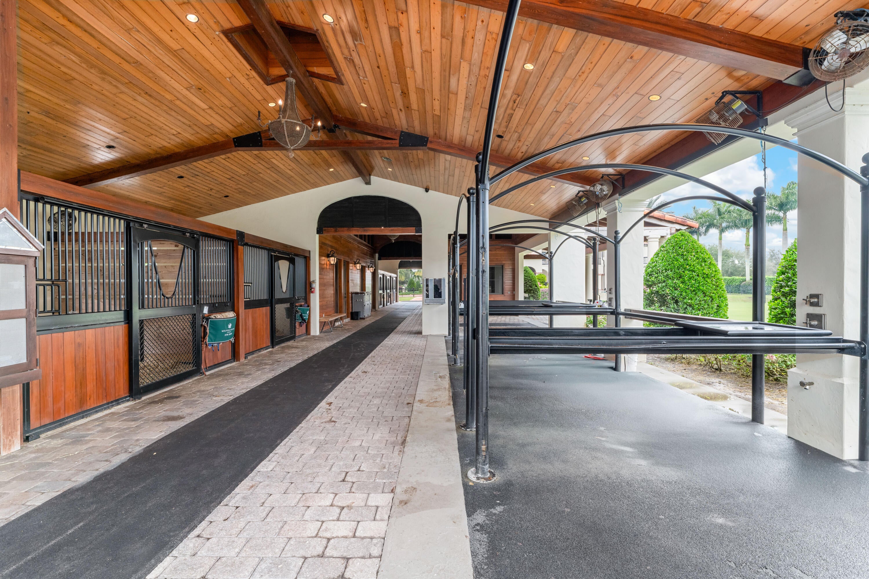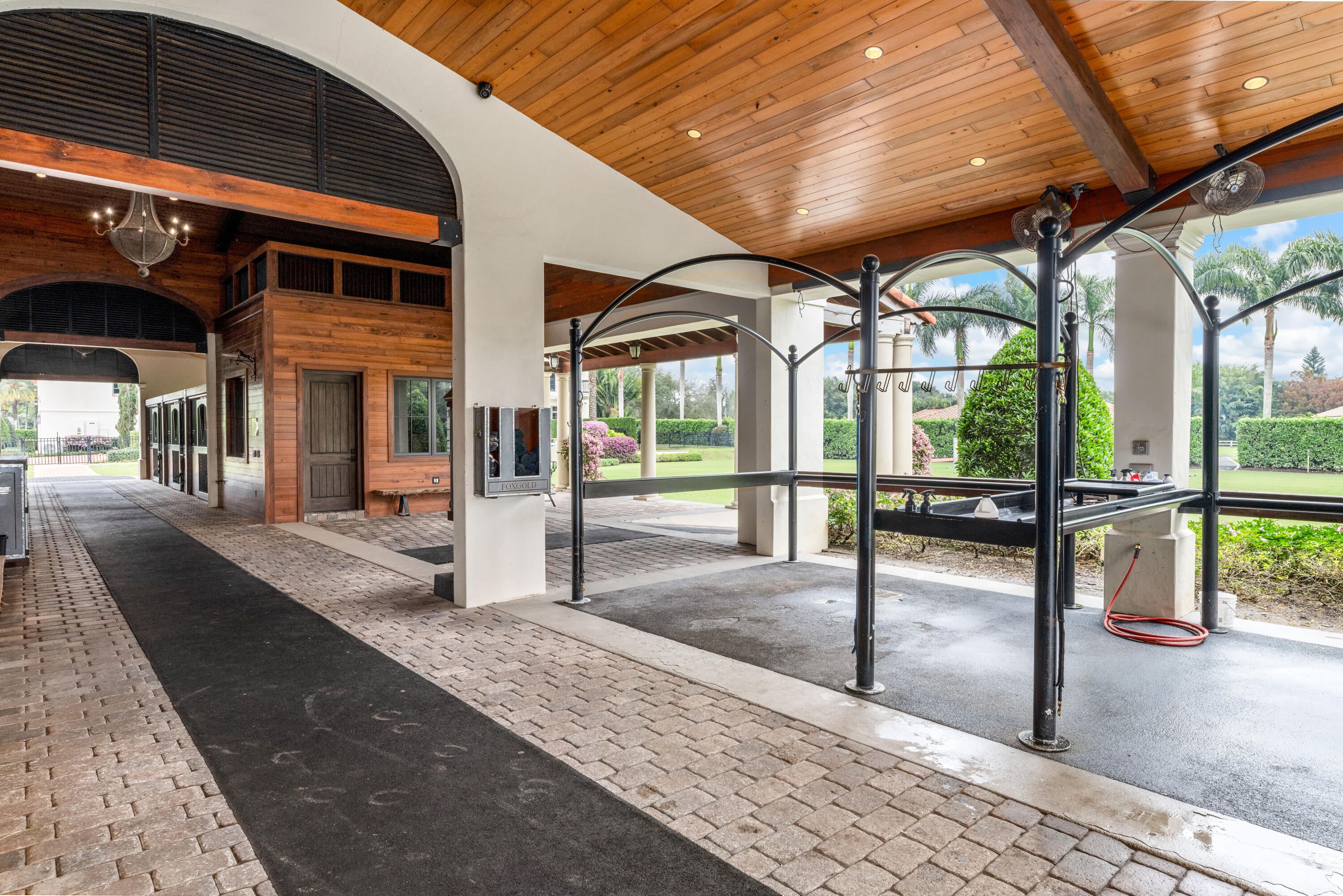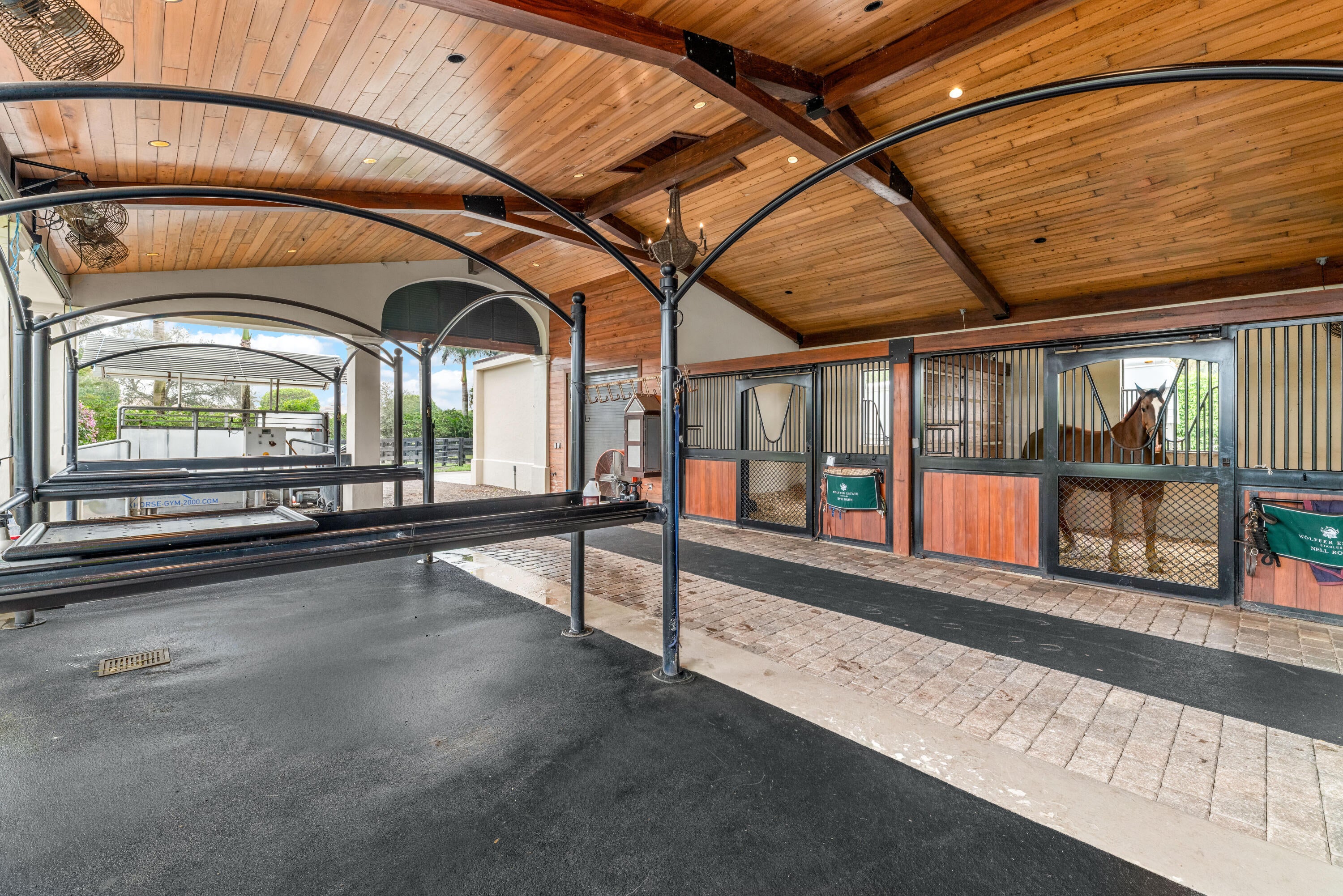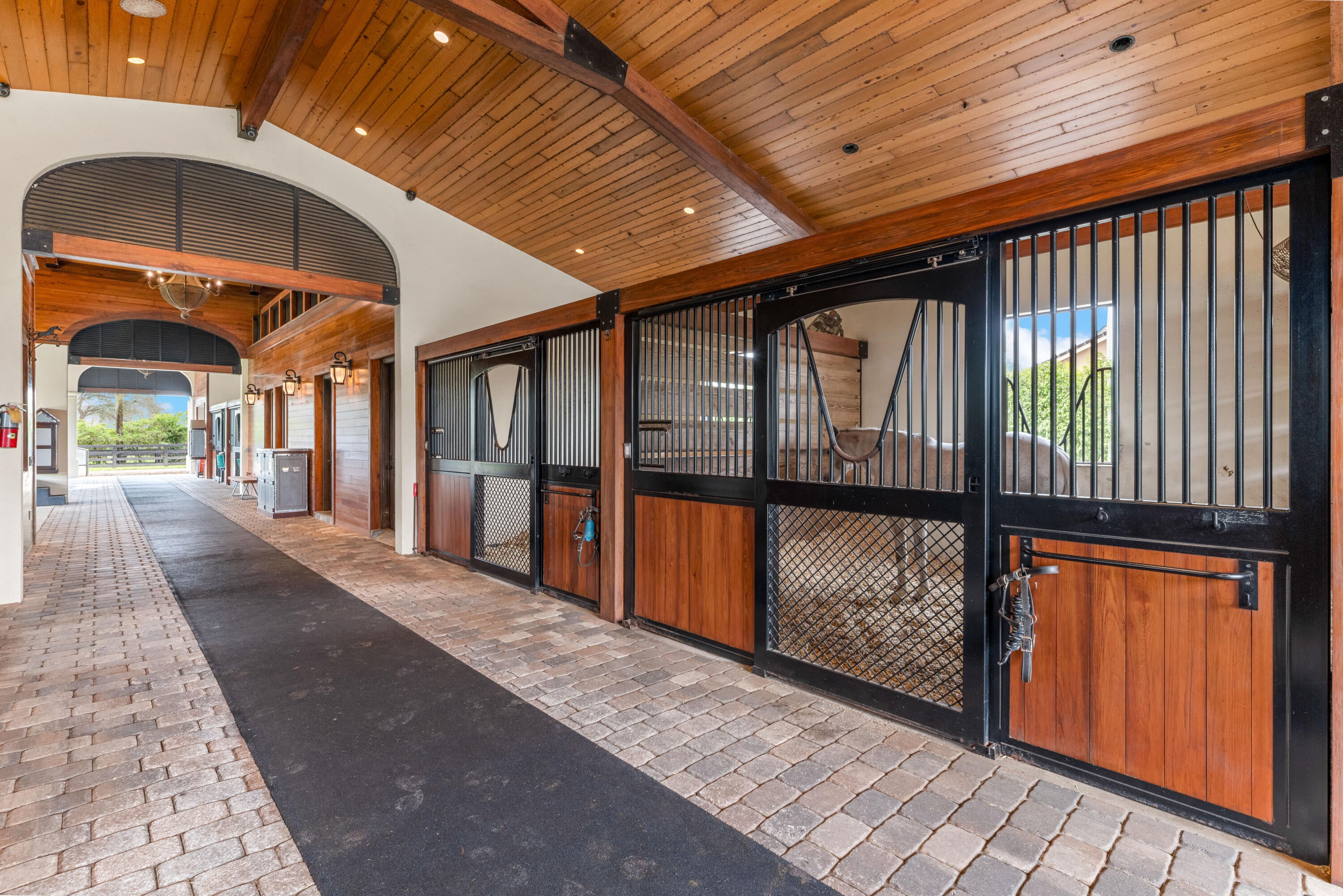A true masterpiece! Unmatched equestrian estate positioned next to Wellington International horse show grounds. Mere minutes walking to the competition arenas. The main home and owners barn were constructed with the highest quality and finest design. A standing work or art! This Mediterranean style equestrian compound boasts Palm Beach Island level finishes and spans over 4 acres across two lots and includes an exquisite, 11,359 sq ft (7878 sq ft under air), 5-bedroom plus office main residence with a guest apartment, two 8-stall barns, a 3-bedroom staff apartment, an oversized NEW, sub-irrigated riding arena that measures 210x125ft, a grand prix field and 10 paddocks. A rare opportunity to own one of the finest equestrian estate in Wellington.Designed by architect Roger Janssen, the main home features elegant living and dining spaces, a billiards room, office, screened porch, butler's kitchen and well-appointed kitchen and family areas. Upstairs hosts the primary suite and three additional bedrooms. Premium finishes include cypress ceilings, custom cabinetry, hardwood flooring, a full-house generator, Infinity pool overlooking the field and much more.