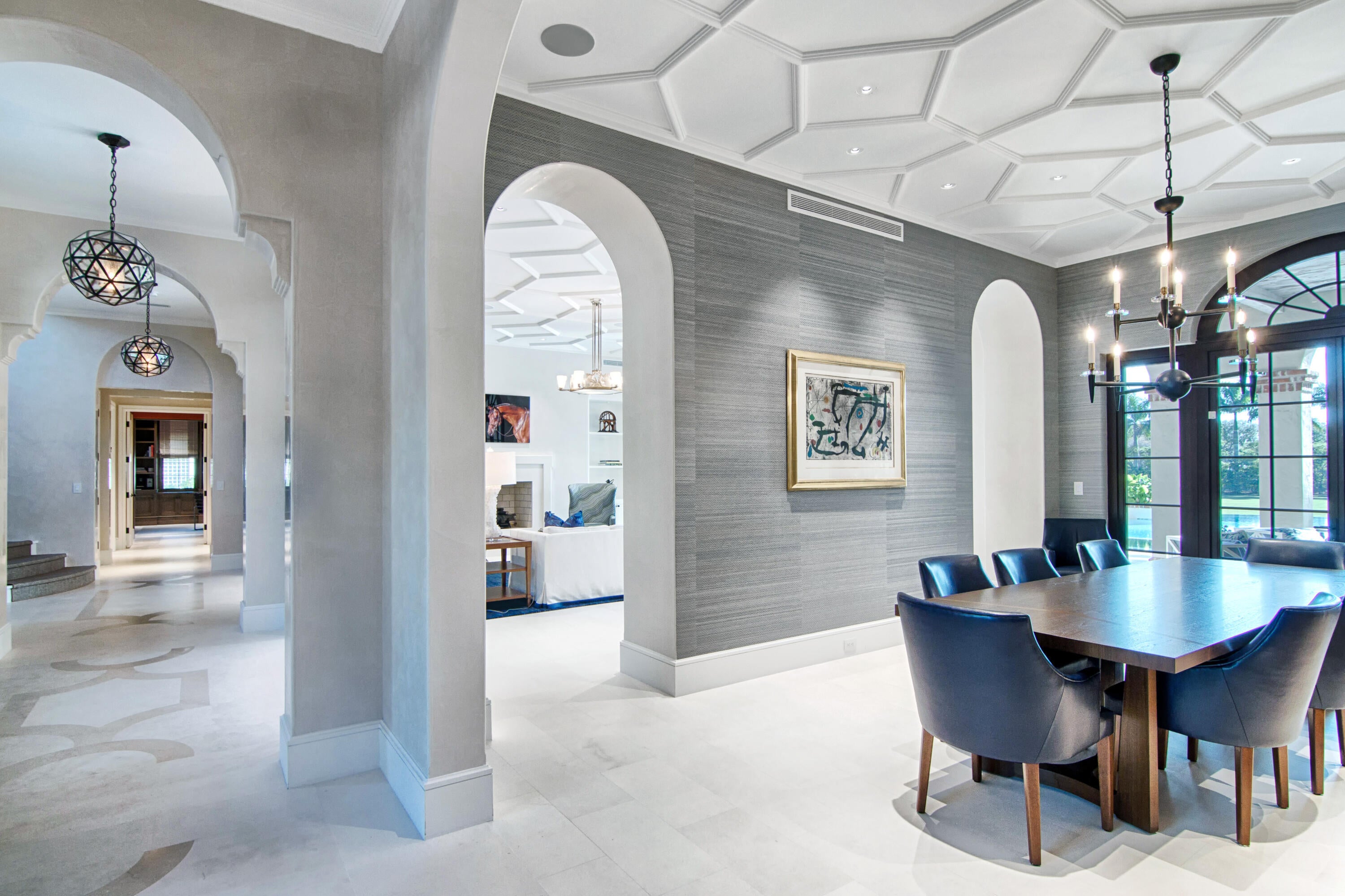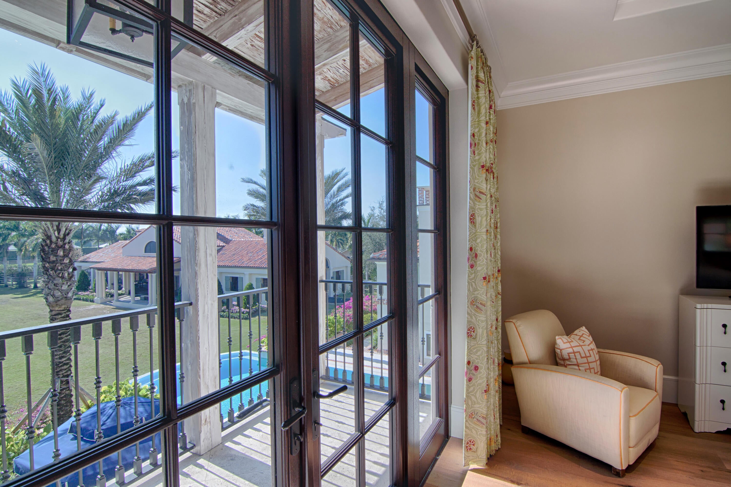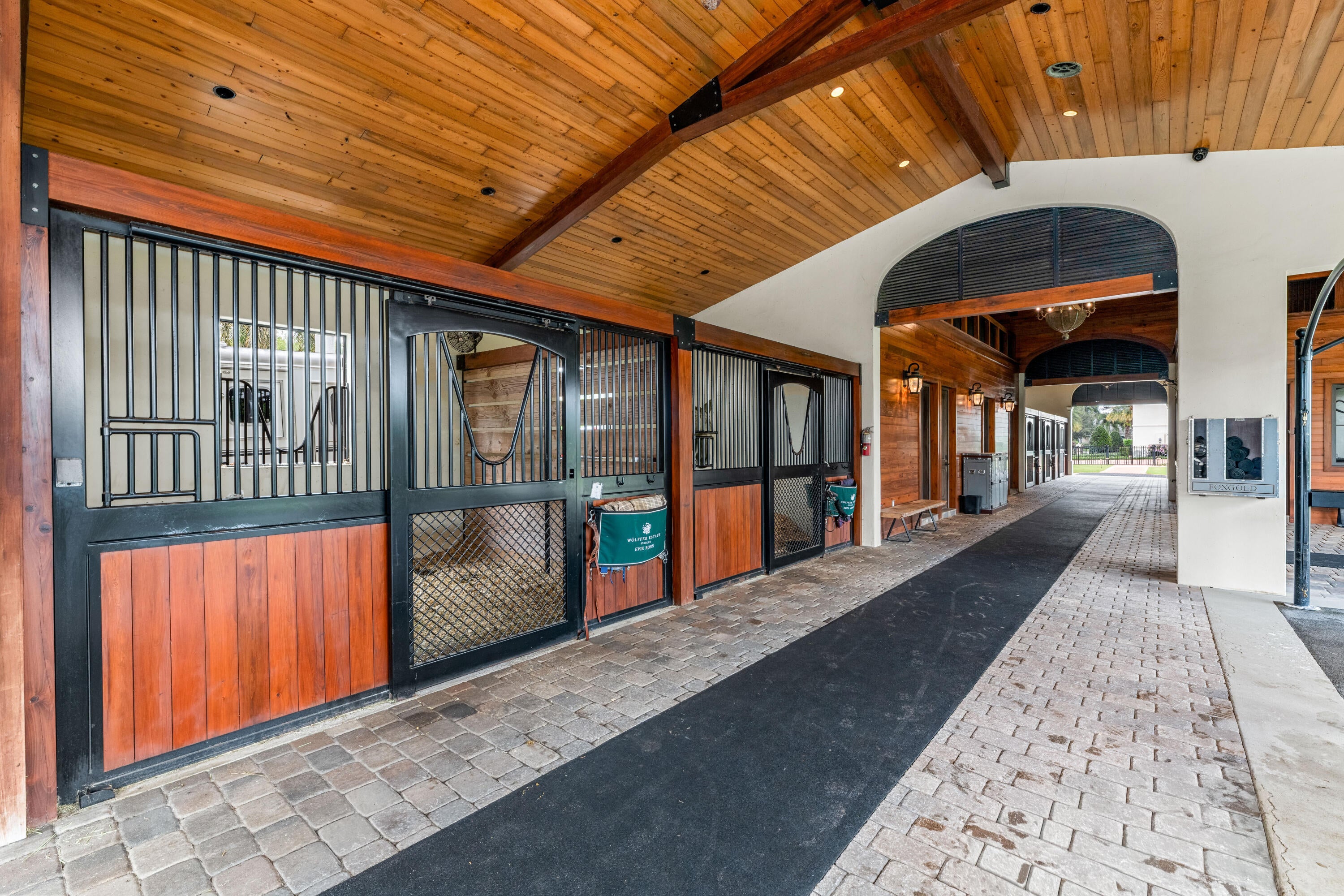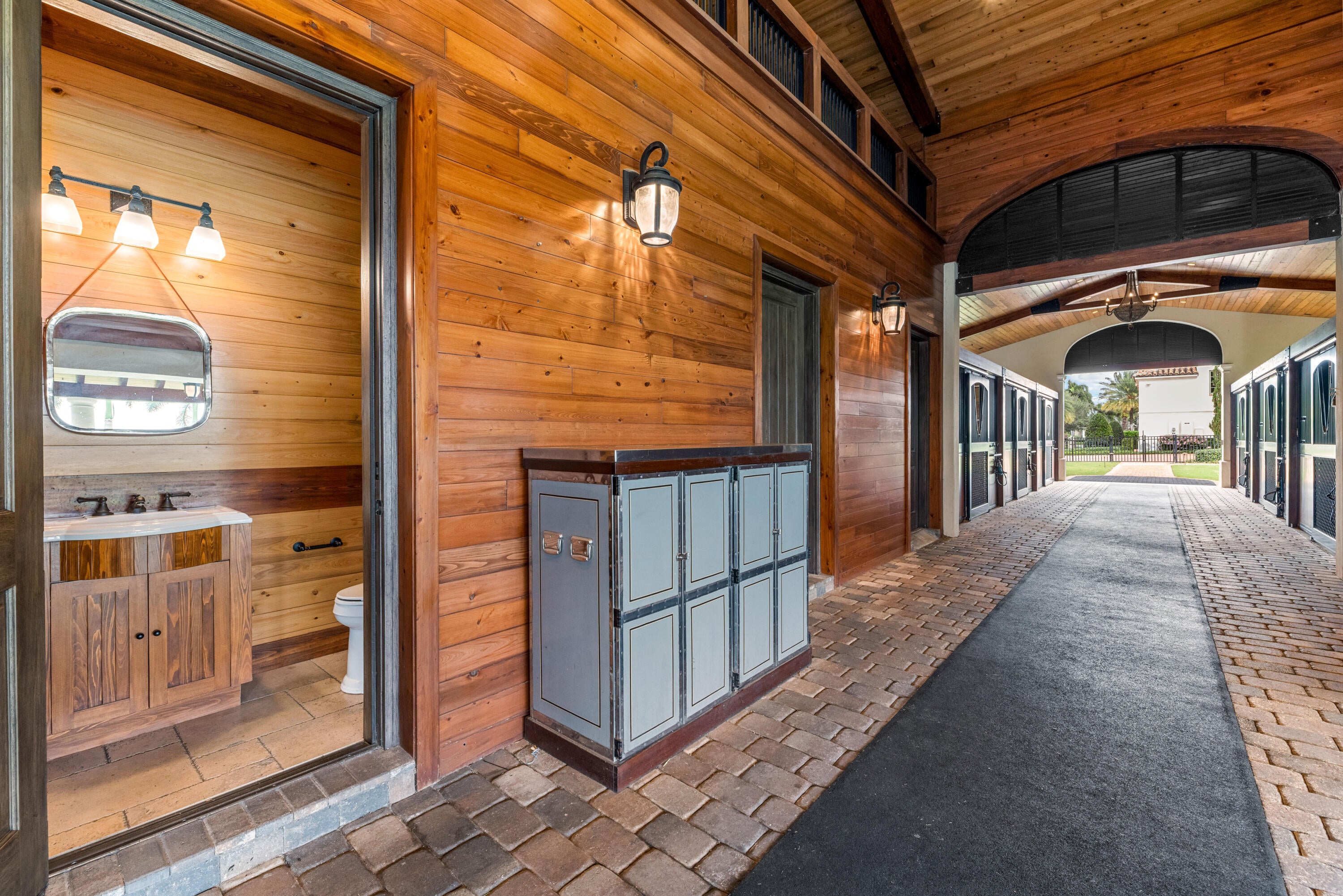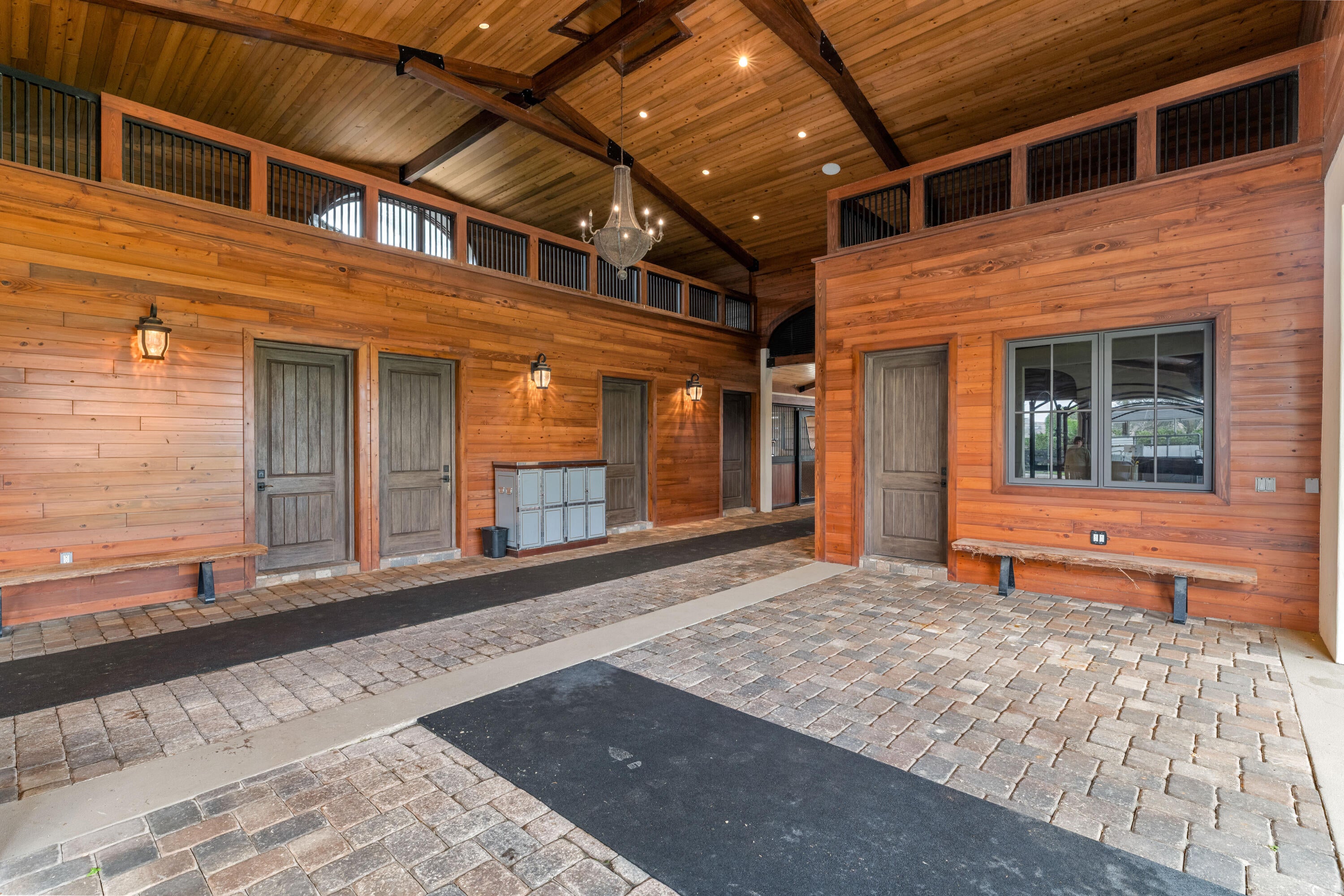 A true masterpiece! Unmatched equestrian estate positioned next to Wellington International horse show grounds. Mere minutes walking to the competition arenas. The main home and owners barn were constructed with the highest quality and finest design. A standing work or art! This Mediterranean style equestrian compound boasts Palm Beach Island level finishes and spans over 4 acres across two lots and includes an exquisite, 11,359 sq ft (7878 sq ft under air), 5-bedroom plus office main residence with a guest apartment, two 8-stall barns, a 3-bedroom staff apartment, an oversized NEW, sub-irrigated riding arena that measures 210x125ft, a grand prix field and 10 paddocks. A rare opportunity to own one of the finest equestrian estate in Wellington.Designed by architect Roger Janssen, the main home features elegant living and dining spaces, a billiards room, office, screened porch, butler's kitchen and well-appointed kitchen and family areas. Upstairs hosts the primary suite and three additional bedrooms. Premium finishes include cypress ceilings, custom cabinetry, hardwood flooring, a full-house generator, Infinity pool overlooking the field and much more.