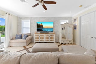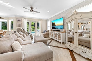 Prepare to be swept away by this magnificent estate, fully remodeled Sienna Grande home by Minto, perfectly situated on a large premium Cul-De-Sac, lakefront lot within Wellington's coveted resort-style community of Olympia. This exquisite 6-bedroom, 4-bathroom residence is designed for the most discerning buyer, boasting a spectacular interior with premium grade custom-designed flooring throughout and gorgeous curved staircase with wrought iron balustrades and oak handrails.The main floor is a masterpiece of design. The gourmet kitchen is truly inspiring, featuring a breathtaking marble island, countertops, and backsplash. It is equipped with top-tier appliances, including double ovens, a cooktop stove, and a refrigerator, complemented by a pantry. The adjacent family room offers a stunning focal point with its custom laid quartzite accent wall, beautifully enhancing the decor. The entire pool deck has been updated with travertine tiles & pre-wired with speakers ensuring the perfect ambiance for any occasion when entertaining guests in the backyard. The second floor boasts custom real wood floors. The luxury extends to the private quarters, including a huge Master Bedroom with soaring ceilings and abundant natural light, offering awe-inspiring views of the pool, lake and luscious tropical landscaping. This sanctuary features an incredibly large custom walk-in closet and a gorgeous master bathroom. This home even has a custom theater room powered by Sony's Atmos 3d sound system and can also sleep 6 guests comfortably. The custom garage is an automotive enthusiast's dream, featuring a beautifully done epoxy floor and custom cabinets. For ultimate peace of mind, all windows and doors are hurricane rated. Residents enjoy world-class amenities, including an impressive upscale clubhouse, extra-large community pool, indoor/outdoor basketball, tennis, volleyball, a brand new playground with AstroTurf, and a wonderful community feel, all within walking distance to shops and restaurants.