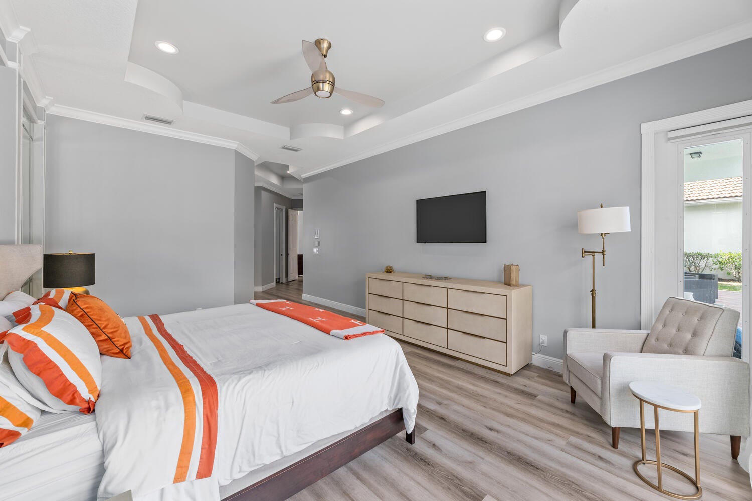 Located in the prestigious Equestrian Club Estates, this refined residence offers an unparalleled lifestyle just steps from the Wellington International showgrounds--one of the closest residential locations available to world-class equestrian competition. This elegant single-story home features soaring ceilings, a spacious split-floorplan, and light-filled living areas that open to a private pool and tranquil water views. The home includes three generously sized bedrooms, an elegant office, a well-planned kitchen, and a three-car garage. Nestled within one of Wellington's most exclusive gated communities, this property blends luxury living with unmatched convenience for those seeking immediate access to the heart of Wellington's premier equestrian scene.