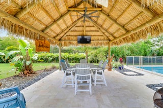 Completely remodeled 3BR/2BA home with a 45' x 42' detached shop, pool, and full impact protection!This fully updated home features all impact windows and doors, a brand-new AC, a new water heater, and a 2022 saltwater pool with a tiki hut, ideal for outdoor entertaining. Inside, you'll find an open layout with a built-in electric fireplace, remodeled kitchen, tons of cabinet storage, and fully updated bathrooms.All three bedrooms include walk-in closets, and the home offers exceptional functionality throughout.The detached shop includes 12' x 14' roll-up doors plus a 9' x 8' door, making it perfect for storing boats, RVs, equipment, or running a hobby workspace.