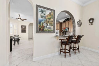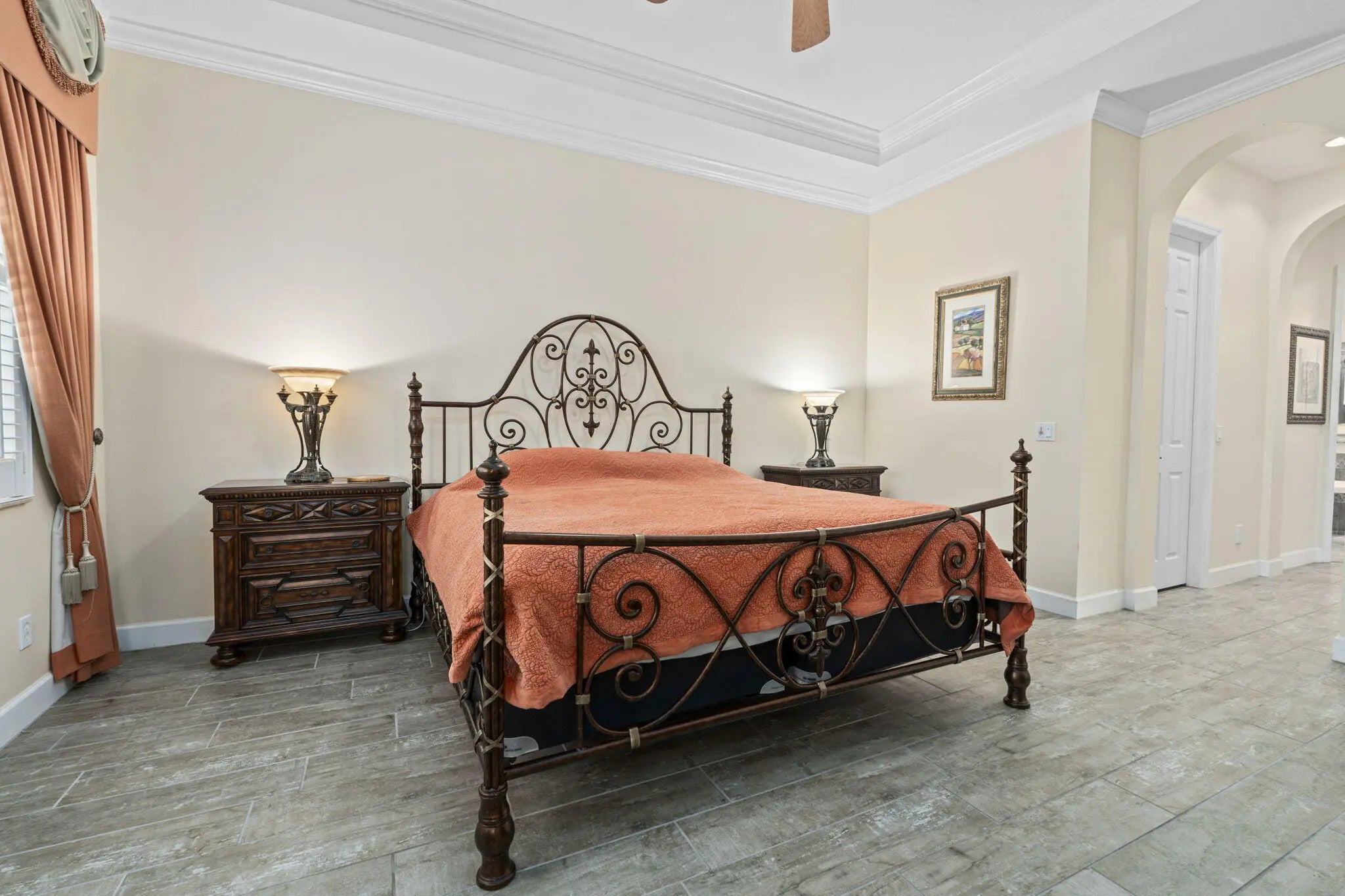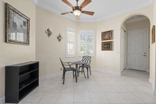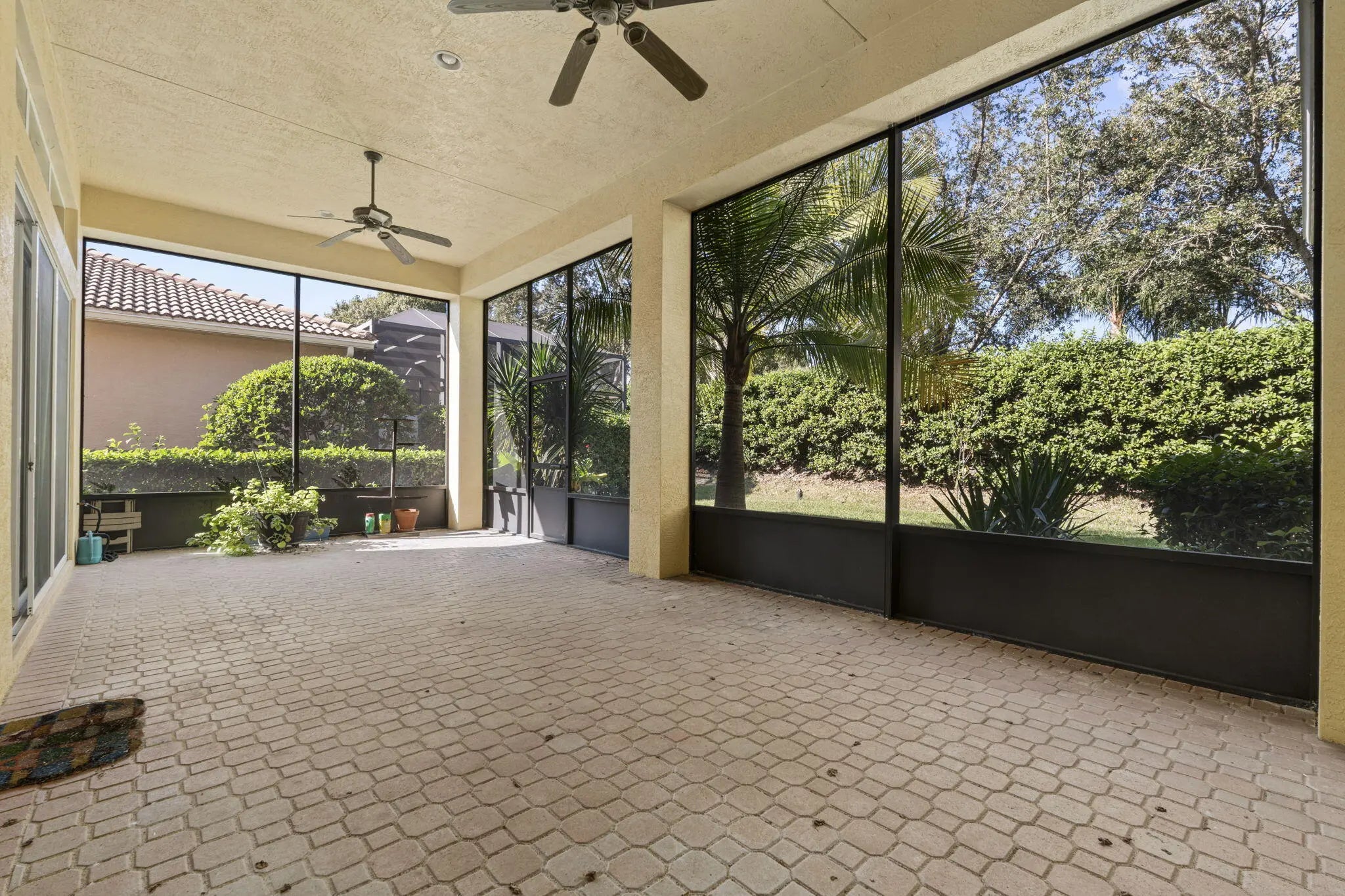 Welcome to this beautifully appointed 3-bedroom, 2-bath home located in the prestigious PGA Verano gated community. Nestled on a quiet cul-de-sac with a circular driveway and sprinkler system, this residence offers both curb appeal and convenience. This home offers a gated courtyard entry, 12-foot ceilings, elegant crown molding, and a thoughtfully designed open floor plan. The chef's kitchen boasts granite countertops, a stylish backsplash, and ample cabinetry. The master suite features tray ceilings, his-and-her walk-in closets, and a spa-like en-suite complete with a soaking tub, dual vanities, and a walk-in shower. Extend your living space outdoors with a massive screened-in patio surrounded by greenery--ideal for morning coffee, evening gatherings, or