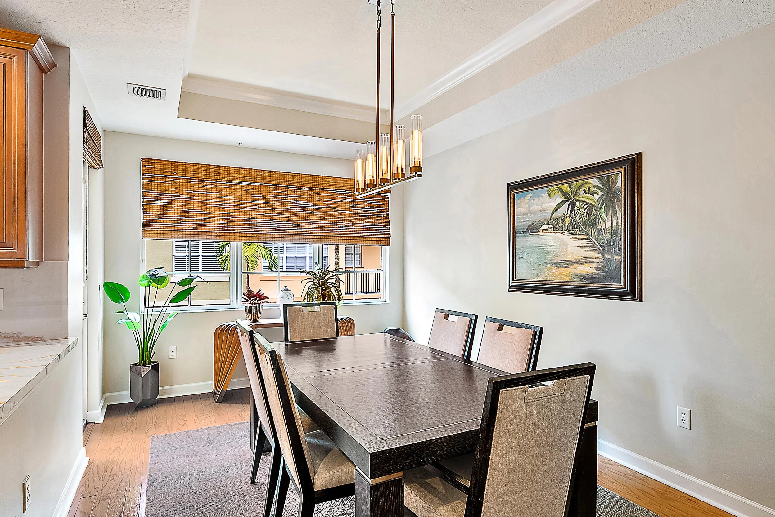 Incredible location in the heart of Palm Beach Gardens - Pet friendly, lots of privacy, and beautiful outdoor spaces! 2 master suites plus an additional flex room with a Murphy Bed and built-in cabinetry. Renovated kitchen with Bosch appliances, a large pantry, stunning pecky cypress ceiling in the living room, and wood flooring throughout. Multiple terraces, fresh interior paint, impact windows on the second and third floors, and a two-car garage with a full driveway for extra parking. Harbour Oaks has fantastic amenities including a pool, spa,clubhouse, fitness center, playground, and picnic areas. All just minutes to great shopping, restaurants, and beaches.