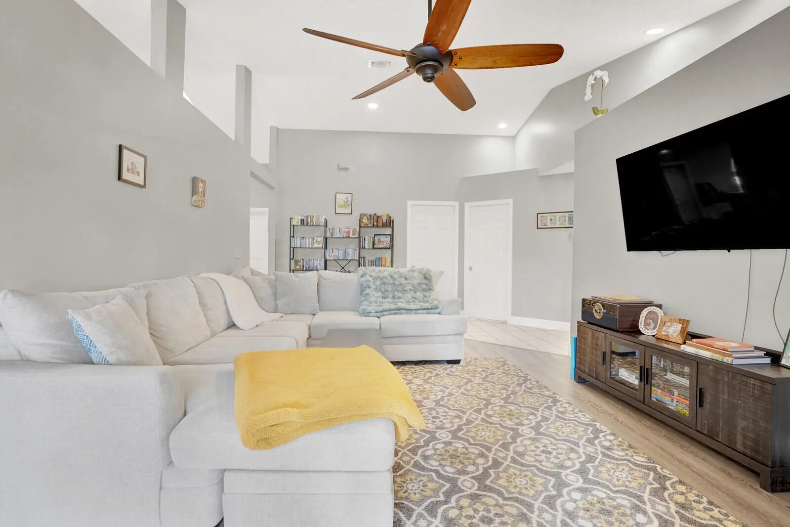 Welcome to a residence where thoughtful renovations and timeless comfort come together effortlessly. The exterior features a series of major enhancements offering lasting peace of mind, including a 2022 roof, 2023 impact windows and doors, and a fresh exterior paint update in 2024. The expansive, fully fenced yard is a private oasis, centered around a newly resurfaced inground pool with a new pool pump and filter. The spacious covered patio invites effortless outdoor living and entertaining. A new sprinkler system installed in 2025 keeps the grounds lush and easy to maintain