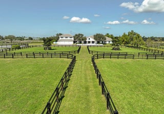 Truly one of Wellington's most exceptional equestrian estates, this 20+ acre property spans two parcels and offers a seamless blend of thoughtfully designed equestrian amenities and a fully reimagined luxury residence - each finished with uncompromising attention to detail.The open-air 20-stall barn was designed for professional-level functionality and effortless daily use. It includes multiple tack rooms, three grooming stalls, two covered wash racks, a commercial-grade laundry room, generous storage, an RO system, and covered jump storage. A beautifully finished rider's lounge provides a full kitchen and bath, while two renovated one-bedroom staff apartments occupy the upper level.