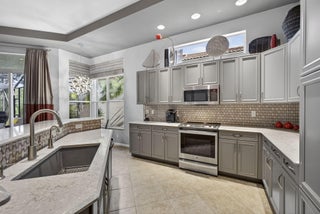 New to Market for the First Time, Decorator inspired and beautifully maintained, this sought after model offers 2 bedrooms, 2 baths, a den, great room, dining room, 2 car garage and an expanded screened and covered patio overlooking a serene park like setting. Presented for the very first time, this lovely home in Wellington's only single family 55 plus community features a newly remodeled kitchen with wood cabinetry, granite countertops and stainless steel appliances. Additional highlights include accordion shutters throughout, a newer 4 ton AC installed in 2023, a water heater replaced in 2021 and a stunning screened patio expansion added in 2017 that enhances outdoor living and entertaining. This home is truly one of a kind with its beautiful updated kitchen and inviting covered patiospaces. The community offers resort style amenities including two pools and spa, poolside cabanas, fitness center, steam room, card rooms, library, grand ballroom and an outstanding sports complex for pickleball and tennis. The HOA provides extensive services such as landscape maintenance, lake water irrigation for your lot, power washing of driveways and walkways, Xfinity cable and internet with speeds up to 500 Mbps, a 24 hour manned gate and an annual $500 café dining allowance. The location is exceptional. Only 15 minutes to PBI, 9 miles to the beaches and about 20 minutes to the Polo Grounds and Winter Equestrian Festival. The community of Buena Vida is ideally situated to enjoy South Florida's lifestyle from dining and boutique shopping to cultural attractions. Experience the good life at Buena Vida in Palm Beach County.