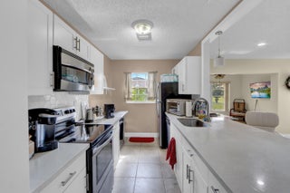Clean, updated and ready to move right into! Located on a very private canal lot, this charming renovated villa of 1 bedroom/ 2 bath plus a bonus Florida room / den features neutral tile floors throughout, freshly painted walls and an open kitchen with white cabinetry, white tile backsplash, quartz countertops and stainless steel appliances. The primary bedroom offers custom-configured walk-in closets and a view of the canal. Accordion shutters on all windows.