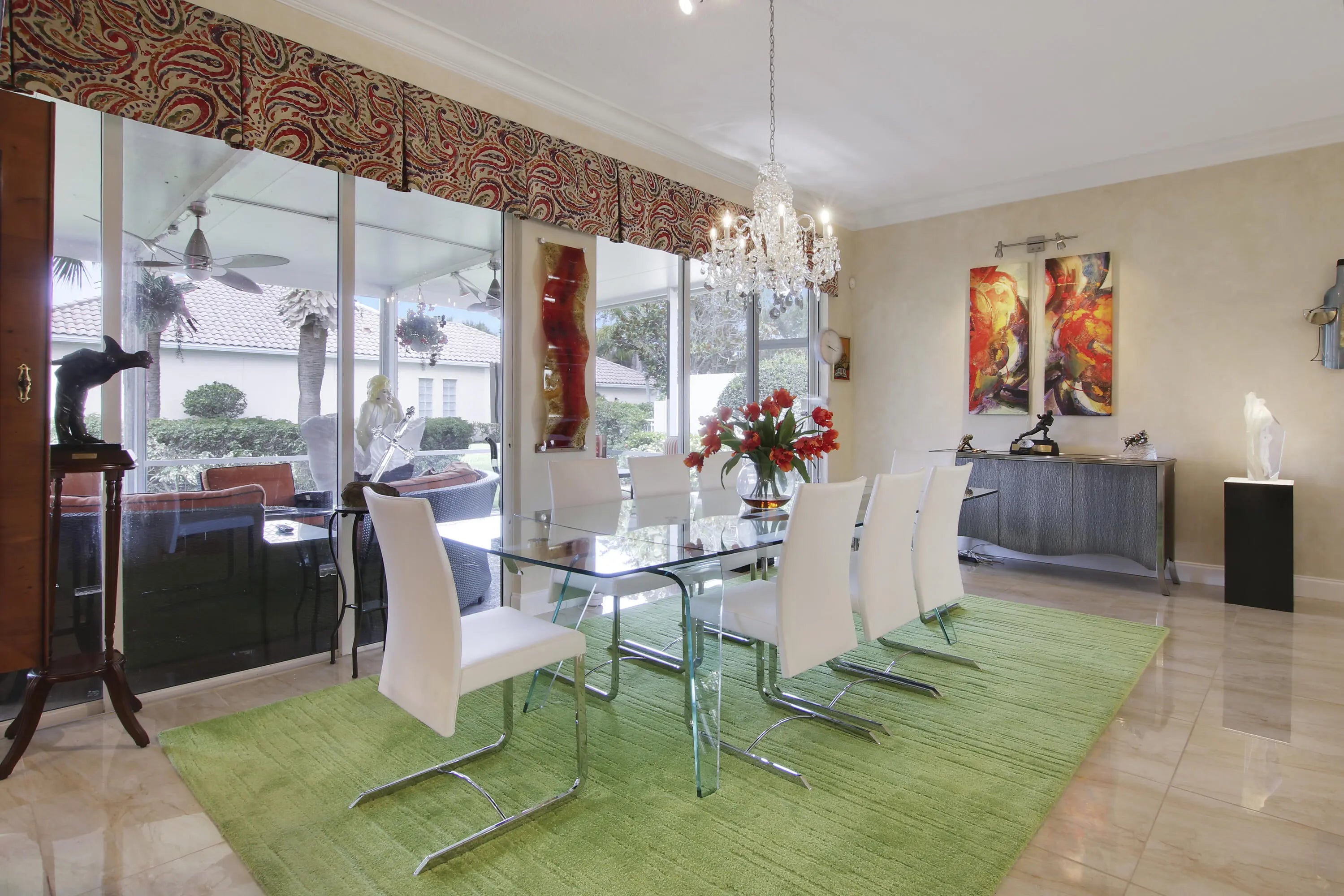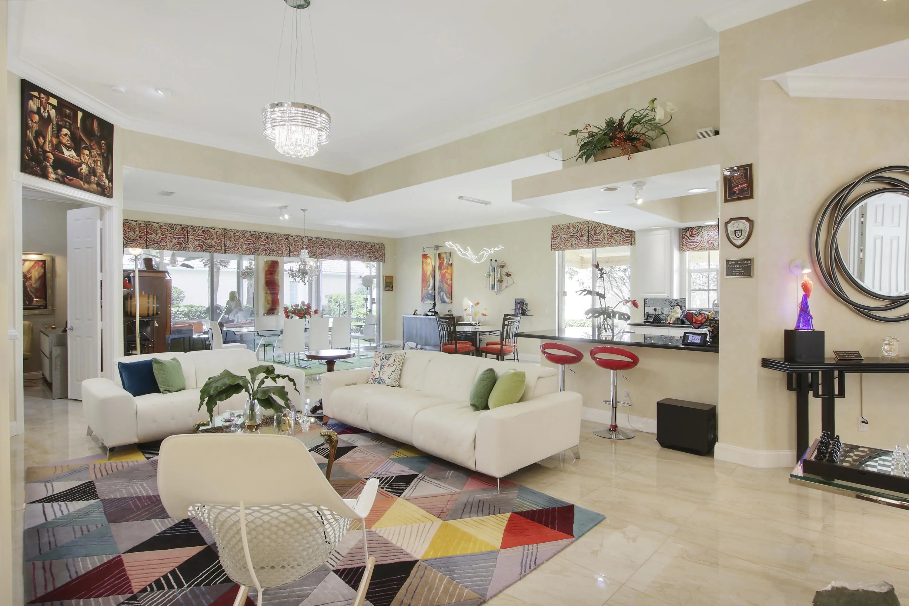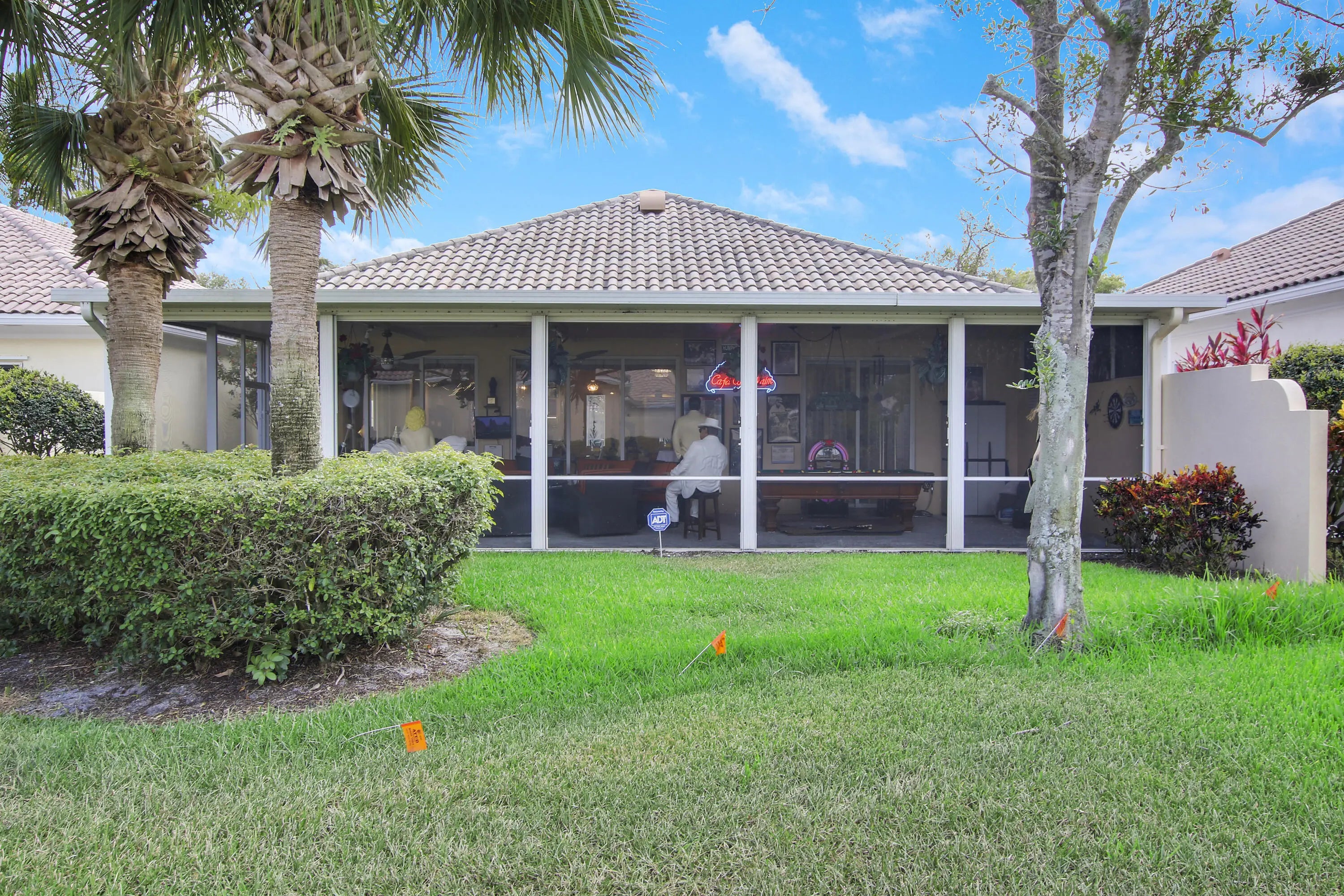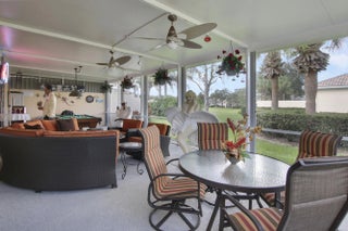 THIS IS THE ONE!! A NEW ROOF TO BE INSTALLED JANUARY 2026. Extended Oakmont Model...this is truly a special home. The extended Oakmont gives 200 assitional living space and this home also has a screened in covered patio. The welcoming foyer entry way leads to a french door entry on the right which is the additional flex room perfect for an office, den or playroom(plus the 3 brms). The open concept great/living room, dining area and kitchen lends itself perfectly for entertaining. The southeast exposure is a key feature bringing natural light all day without the heat. There are 2 sets of triple sliders that lead out to the screened in covered patio all overlooking a very private green area. The porcelain flooring throughout the home are absolutely stunning.DON'T LET THIS PASS YOU BY