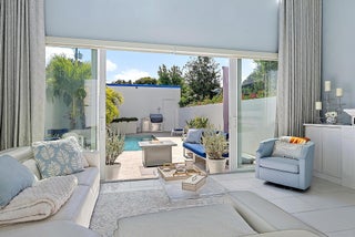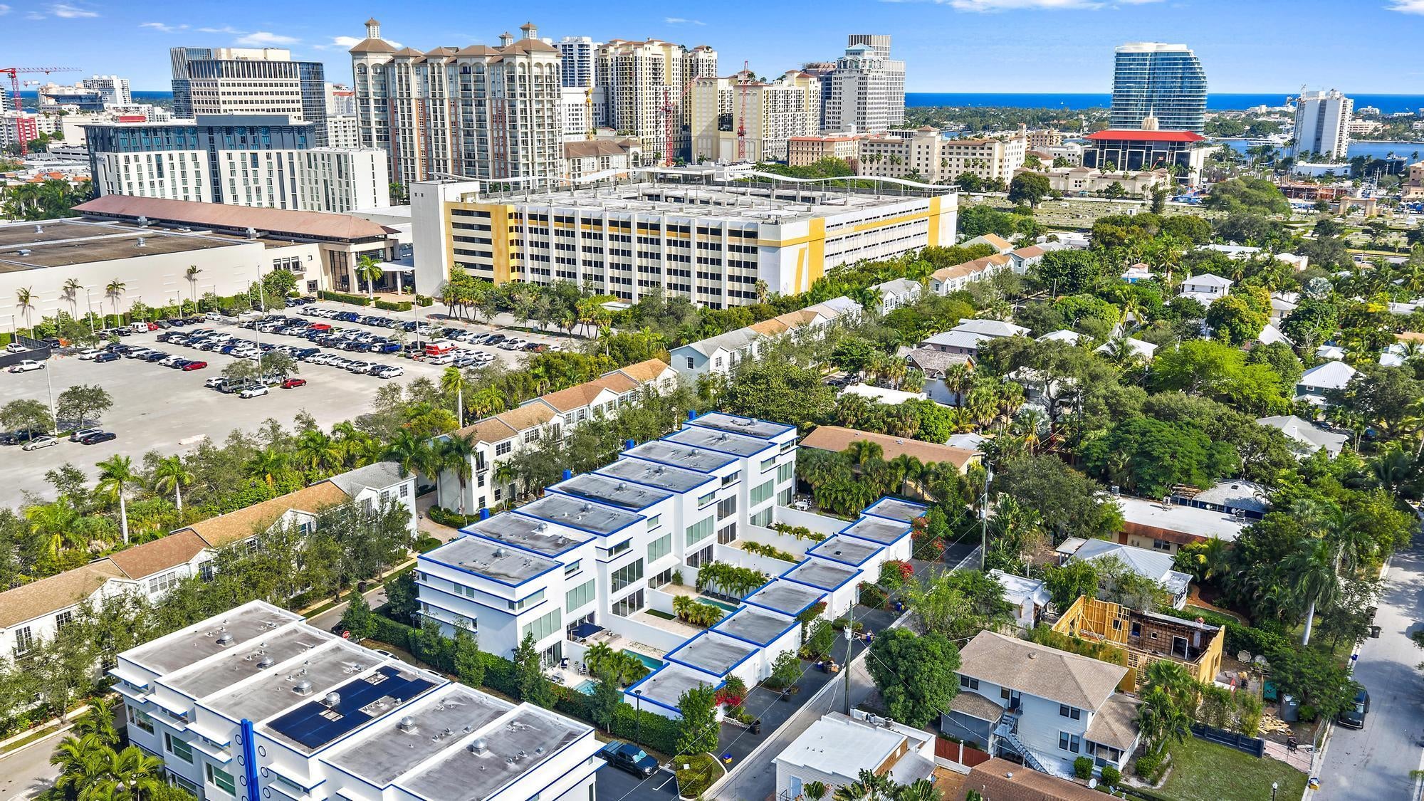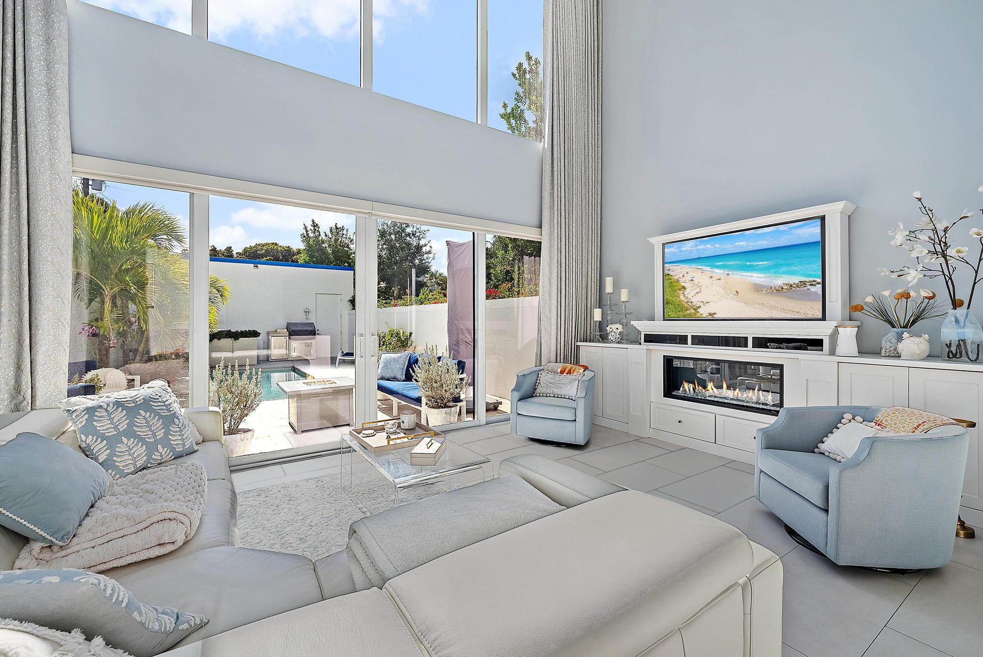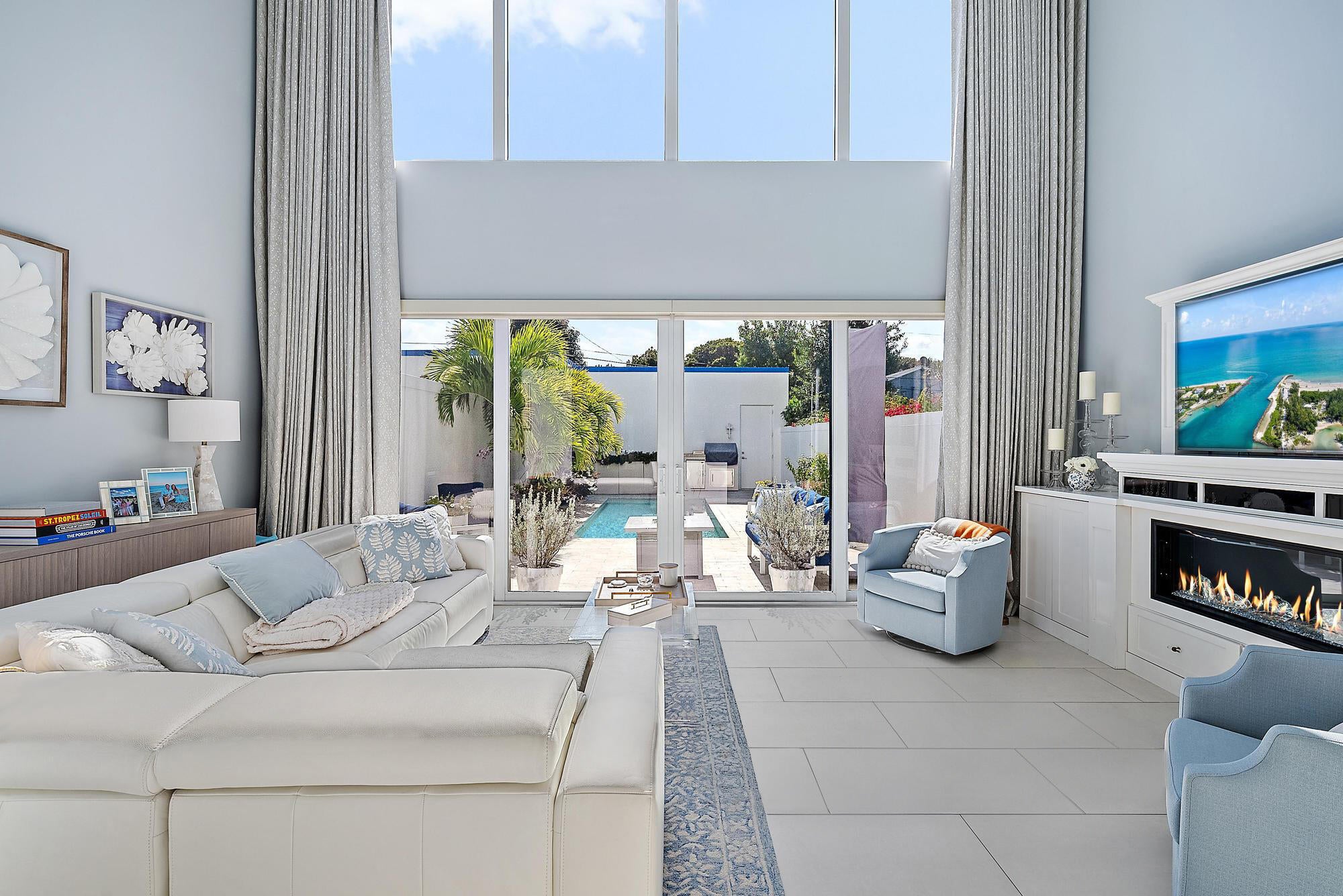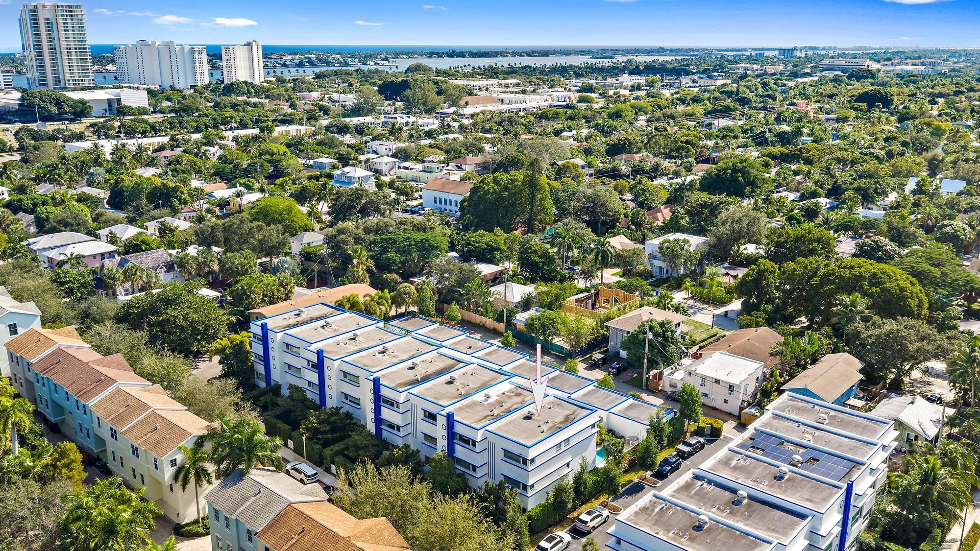 Combine the vibrancy of downtown living with the comfort and privacy of suburbia in this boutique luxury townhome community. Tucked within the historic Grandview Heights District, Park Slope consists of just 14 exclusive Art-deco-inspired residences. This corner unit has been meticulously upgraded from top to bottom with high-end enhancements throughout. Recent improvements include: a 2024 heated pool pump, 2024 polyurea concrete floor coating, 2023 AC systems with new drain lines and UV lights, new 2025 turf, driveway retaining wall, Wi-Fi-enabled thermostats, oversized internet panel, August smart lock, RO water filtration dispenser, pot filler, motorized shades, custom designer window treatments, bespoke kitchen backsplash, custom closet systems, Haiku living room ceiling fan,and over $20,000 in designer blinds. Step inside to soaring ceilings, abundant natural light, and a spacious open layout. To the right, a casual dining area flows effortlessly into the expansive chef's kitchen. The modern, sleek kitchen features white seamless soft-close cabinetry, Bosch appliances, a Thermador panel-ready refrigerator, gas range with Zephyr hood, pot filler, designer tile backsplash, and a built-in wine fridge. The generous living room impresses with 20-foot ceilings, motorized drapes and shades, and a serene view of the private back patio. A stylish main-floor powder room adds convenience for guests. The second-floor primary suite offers a true retreat, complete with dual walk-in closets with custom built-ins, custom blackout draperies, and a spa-like en-suite bath. The bathroom showcases a soaking tub, frameless walk-in shower with floor-to-ceiling designer tile, double sinks, and Moen fixtures. The third floor hosts two additional guest suites, each with its own en-suite bathroom featuring plantation shutters and frameless walk-in showers with full-height tile. Your private outdoor oasis is ideal for entertaining, boasting a travertine pool deck, saltwater system, 6-foot privacy wall, lush landscaping, and plenty of room to grill or unwind in the Florida sunshine. A newly turfed front courtyard surrounded by mature privacy hedges provides an additional peaceful escape and a charming entrance. Residents of Grandview Heights enjoy walkable access to the endless amenities of downtown West Palm Beach. Just minutes from the beach, Worth Avenue, Palm Beach International Airport, I-95, and the city's premier dining and nightlife, this exceptional home offers luxury living in one of the area's most desirable urban neighborhoods.