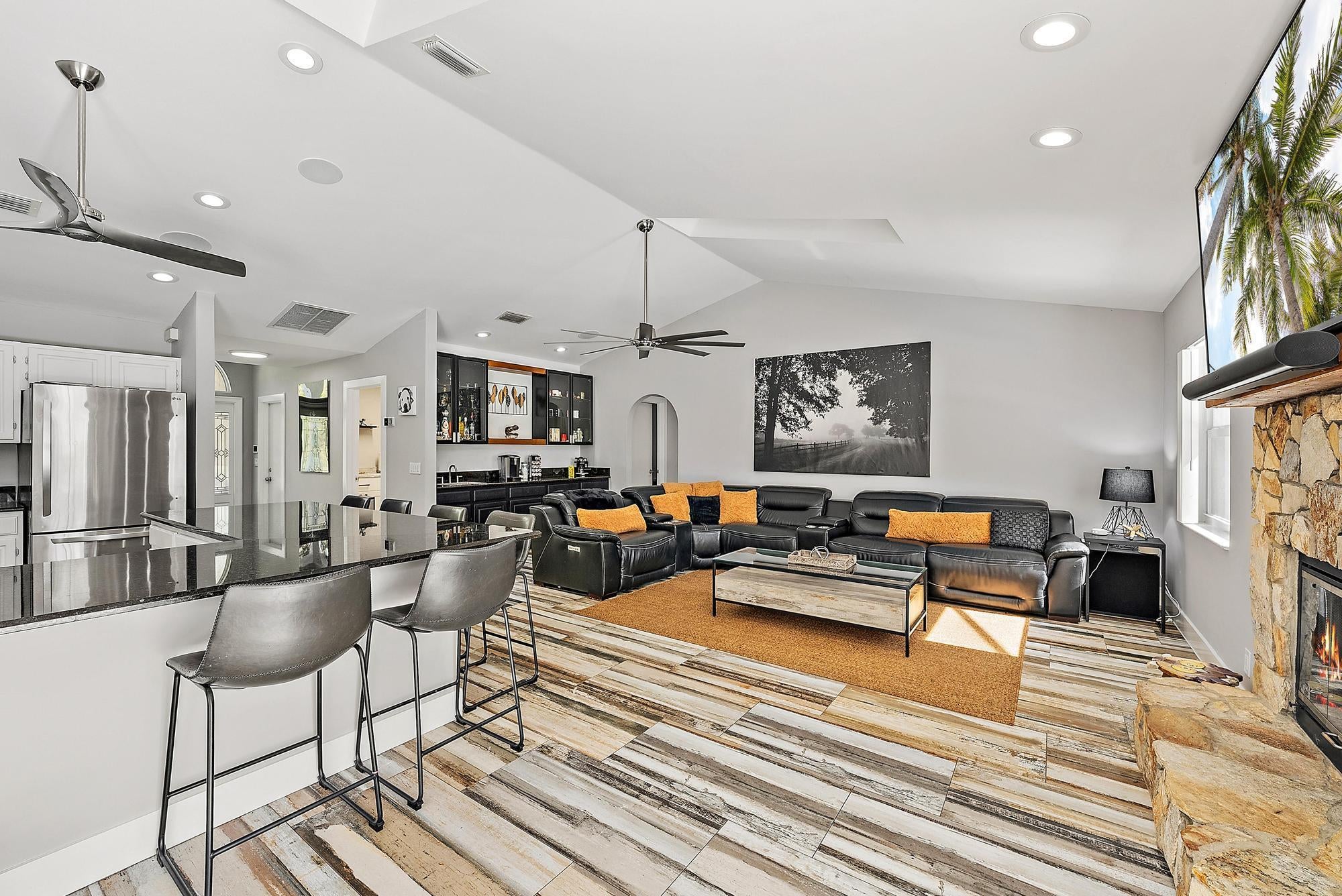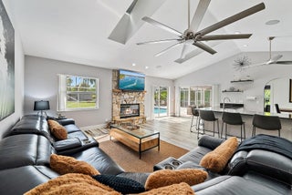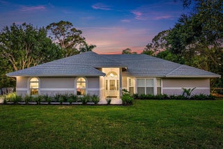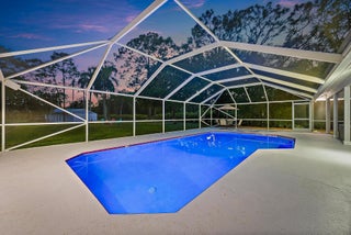 With almost 2.2 acres of bliss, this CBS construction home is the perfect escape. Featuring a split floorplan with 4 bedrooms and 3 bathrooms, is plenty of room for entertaining. An open kitchen overlooks the living room and features a large peninsula with plenty of seating for guests. The covered lanai overlooks the oversized pool, that is enclosed for comfort and privacy. This lot has plenty of room to add an equestrian facility, additional home, par 3 golf hole, etc. The property is bordered by mature landscaping and palms, to ensure the upmost privacy with multiple entrances for ease of access for any and all recreational vehicles, boats, etc.. It also features multiple utility buildings, including a ~700 sq ft, enclosed, shop, and two ~400 sq ft sheds. The owners have completed...multiple upgrades over the last few years, including: new roof (2023), hurricane impact windows (2023), A/C/duct work (2023), Pool screen enclosure (2023), new water system (2023) and much much. Come see yourself, why this is one of the best lots in all of Jupiter Farms.