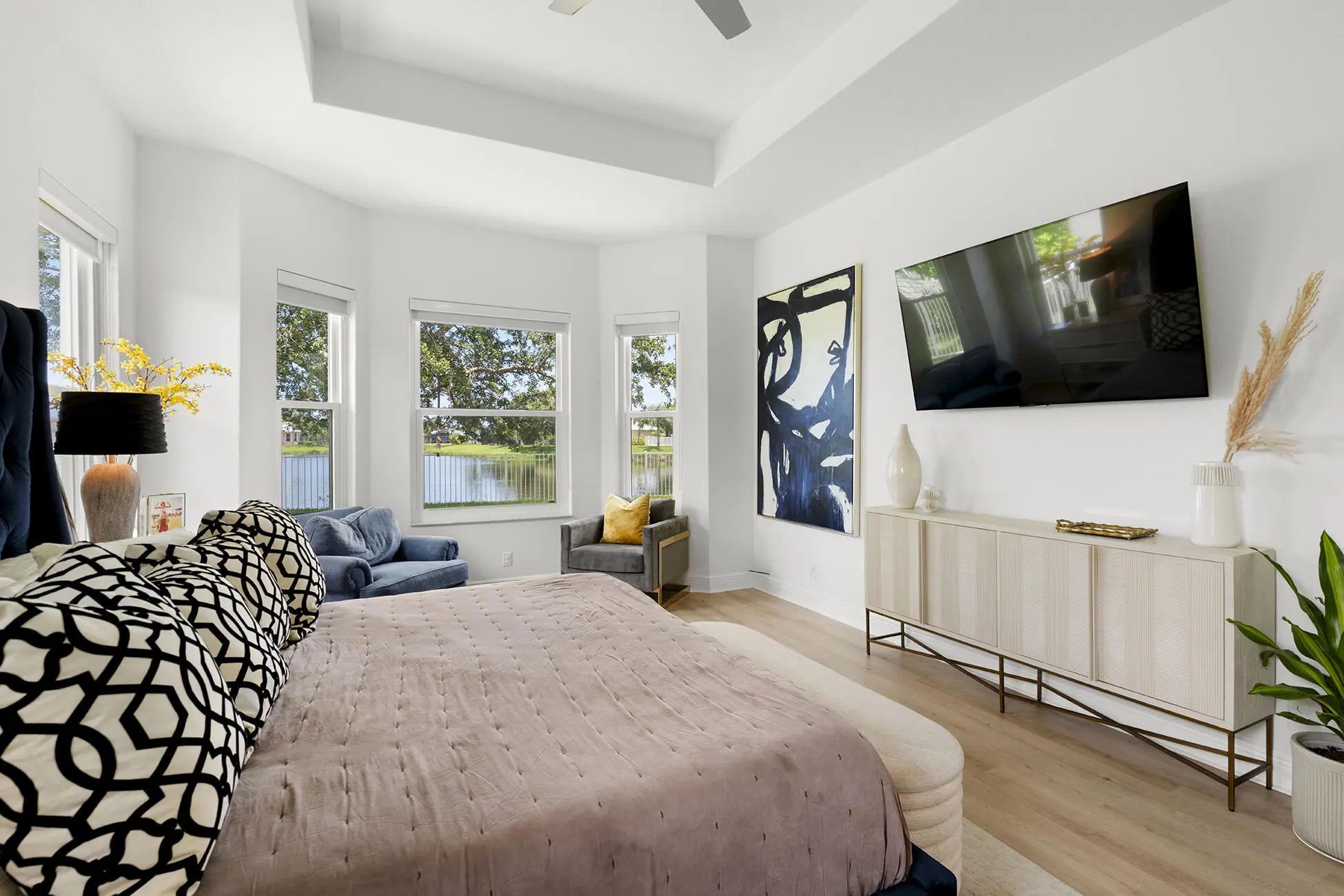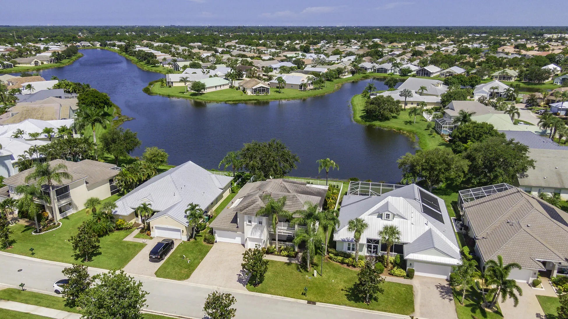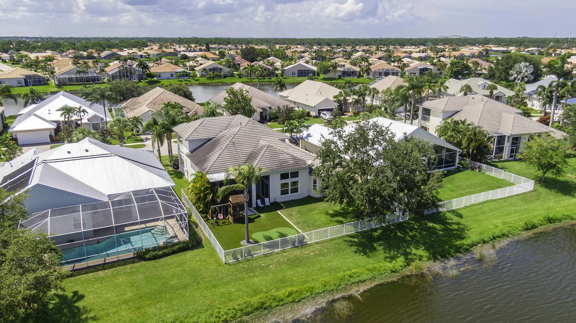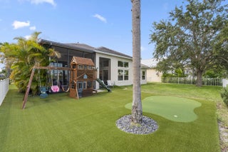 Rare two-story home in the gated Magnolia Lakes community of St. Lucie West. This 5-bedroom + office, 3.5-bath residence sits on a premium lakefront lot and offers over 3,100 sq. ft. of living space with soaring 20' ft ceilings and a 3-car garage with a private sauna, hurricane impact windows and doors, plus accordion shutters for upstairs. New water heater installed 11/2025, Kitchen and primary bath remodeled in 2023 with luxury finishes, New flooring, fresh paint, and updated HVAC in 2023 and 2018.Additional Comforts: Private sauna, new water heater, and fenced backyard with low-maintenance artificial turf.A 4-point inspection report (available upon request) from 11/2025 confirms insurability.