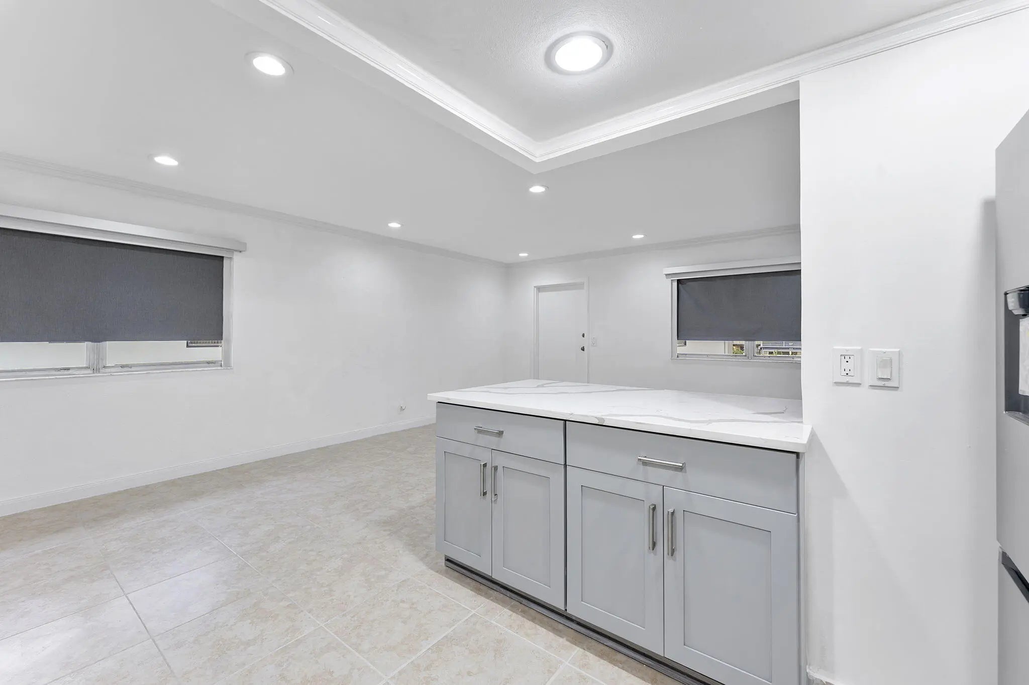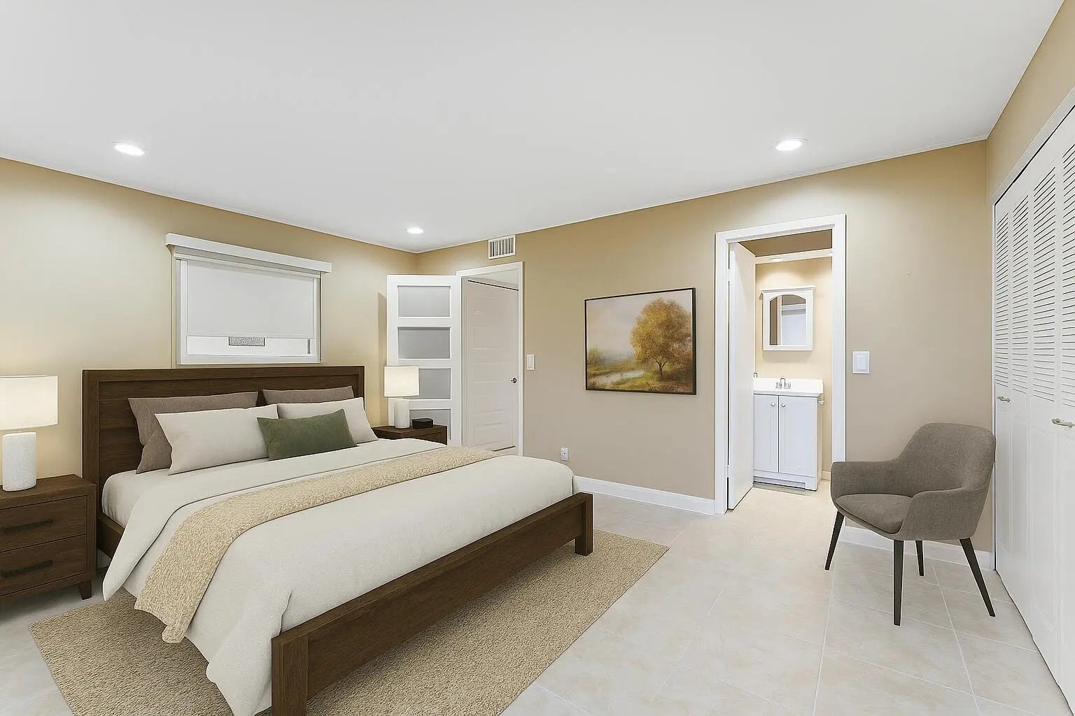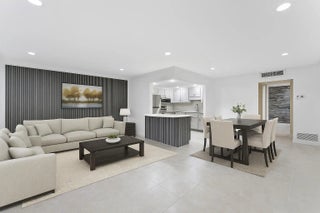 Experience stylish living in this beautifully renovated 1-bedroom, 1.5-bathroom condo situated in a building with a convenient elevator. The open-concept layout shines with sleek tile flooring and recessed lighting, leading to a contemporary kitchen equipped with quartz countertops, stainless steel appliances, and chic cabinetry. Relax in the spacious living area or step out to the private screened balcony, which connects directly to the primary suite featuring a modern en-suite bath. This turn-key home offers ultimate convenience with a guest half-bath, in-unit washer and dryer, custom closet organizers, and extra outdoor storage.