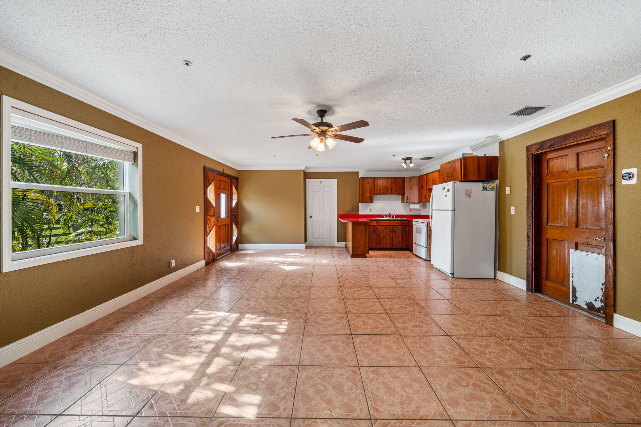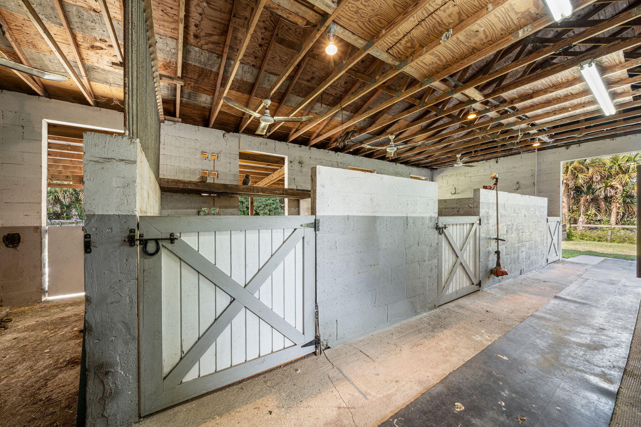 2 acres in Loxahatchee Groves, this CBS home offers a true country lifestyle with rare convenience. A 4 stall concrete barn is attached to the home under a brand-new 2025 metal roof, allowing direct access from the house through the spacious garage--making daily feeding and horse care easy without going outside. The open great room and cozy country kitchen with warm wood cabinetry support comfortable living. Updates include a 2019 AC, new water pump and pressure tank (2025), and a whole-house generator with owned propane tank. The barn features four 10x12 stalls with drains, a tack room, large feed/equipment storage room, and dividable stalls with removable wood slats. Riding ring, two paddocks, additional storage shed, and full 3-rail fencing with hot wire.