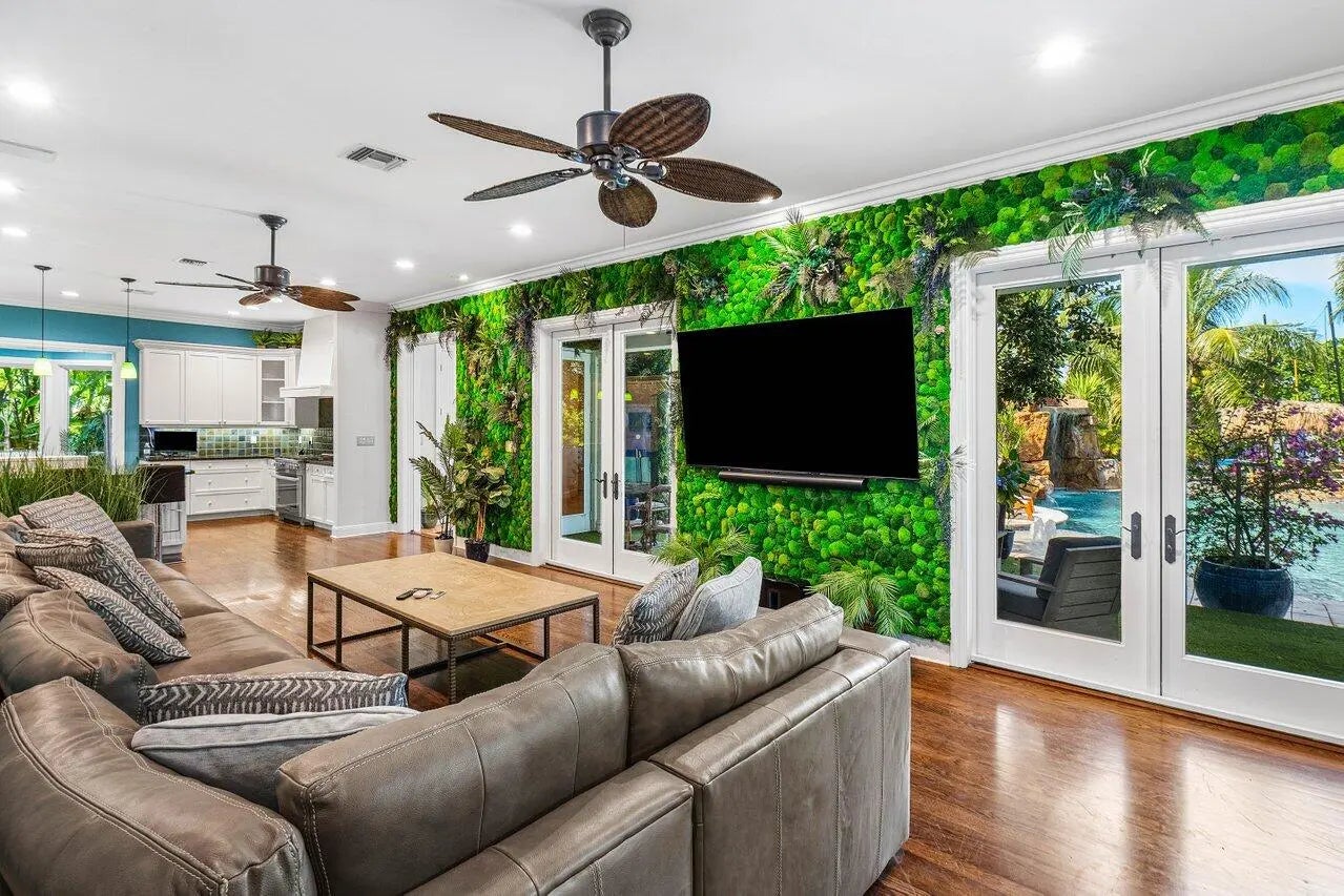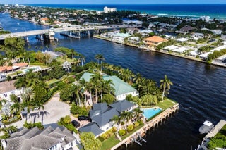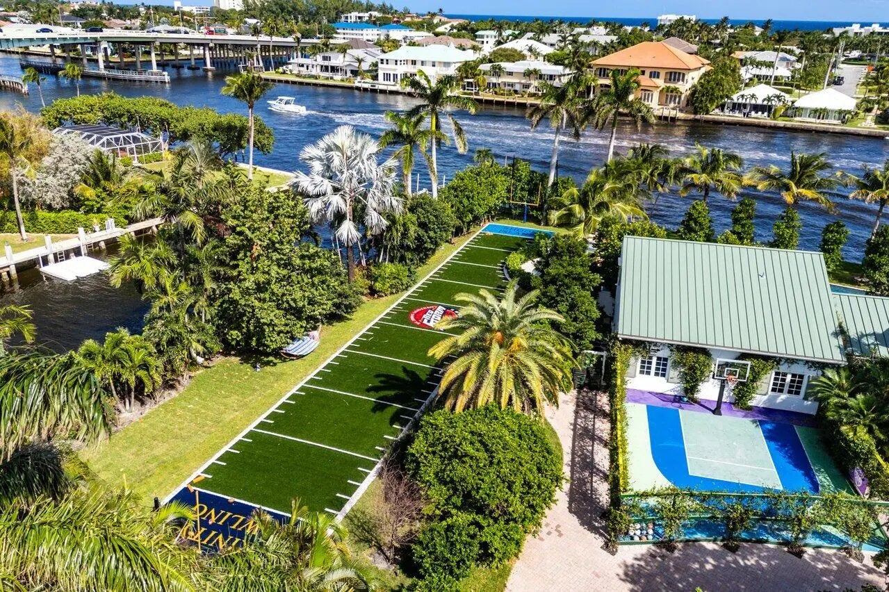 Introducing a stunning gated estate on an expansive point lot! This tropical paradise boasts 450 feet of waterfront with breathtaking direct Intracoastal views. A dream come true for boating enthusiasts, the property offers direct ocean access, two boat lifts, and WaveRunner pads. Enjoy resort-style living with a spacious pool that features a lap lane, waterfall, fountains, and a spa. The outdoor amenities include a half-court basketball area, a football field, and a game room, creating your own private club. With 8 bedrooms and 6.2 bathrooms, this home comfortably sleeps 20+ guests. The luxurious primary suite offers a large sitting area and an exquisite bathroom, providing the ultimate retreat.