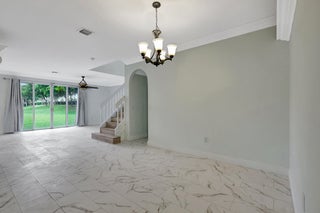 A true 5-bedroom, 2-story, 2.5-bath home in the desirable Olympia community of Wellington. Open floor plan, spacious kitchen, and large living areas. Corner lot offers quietness and privacy. Extremely large backyard offers enough space for a new pool and much more. New Ac (2024), new tile floor downstairs and vinyl floor upstairs (2023). New 2nd bathroom shower. The roof is original but never observed any leakages during the past 13 years ownership.