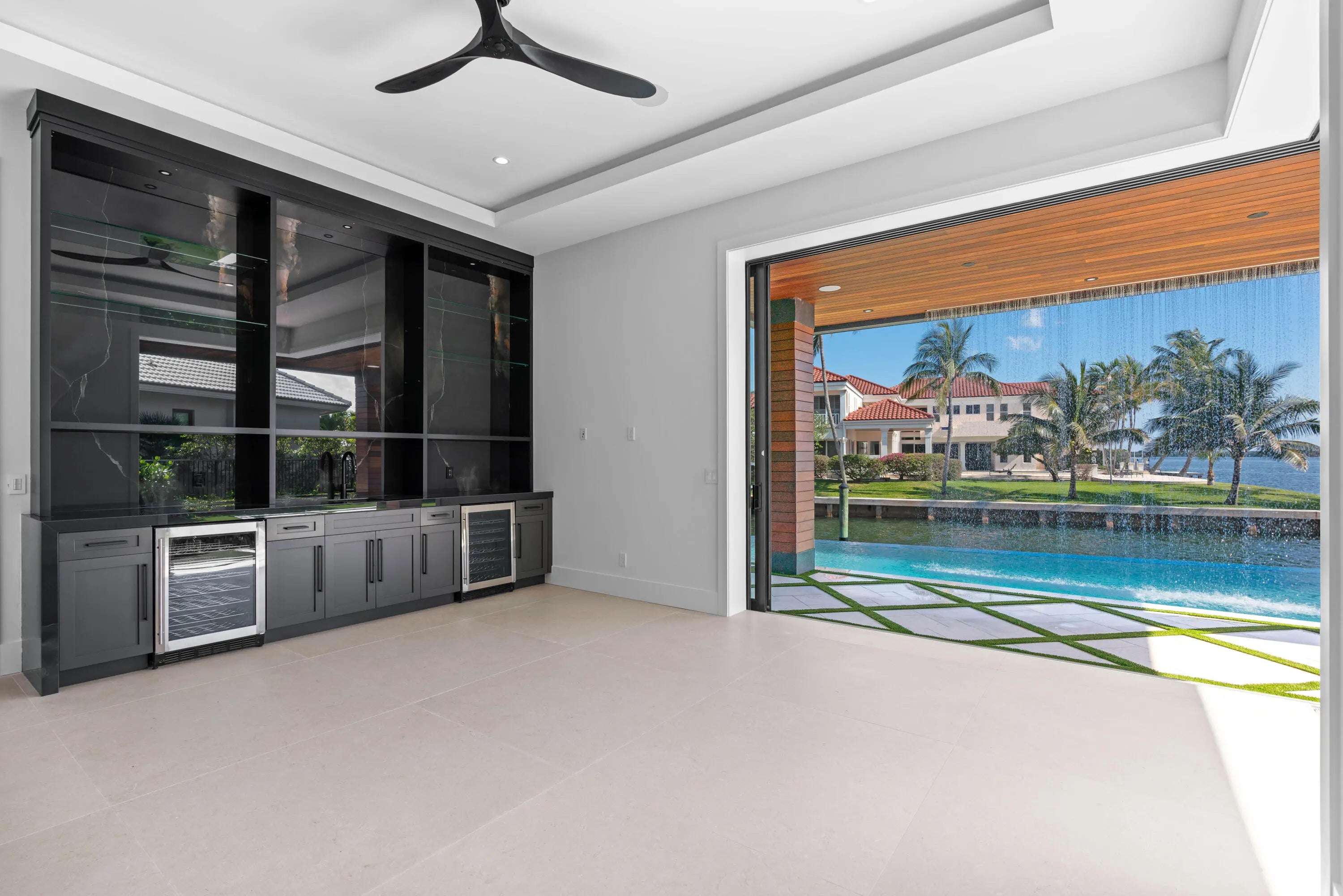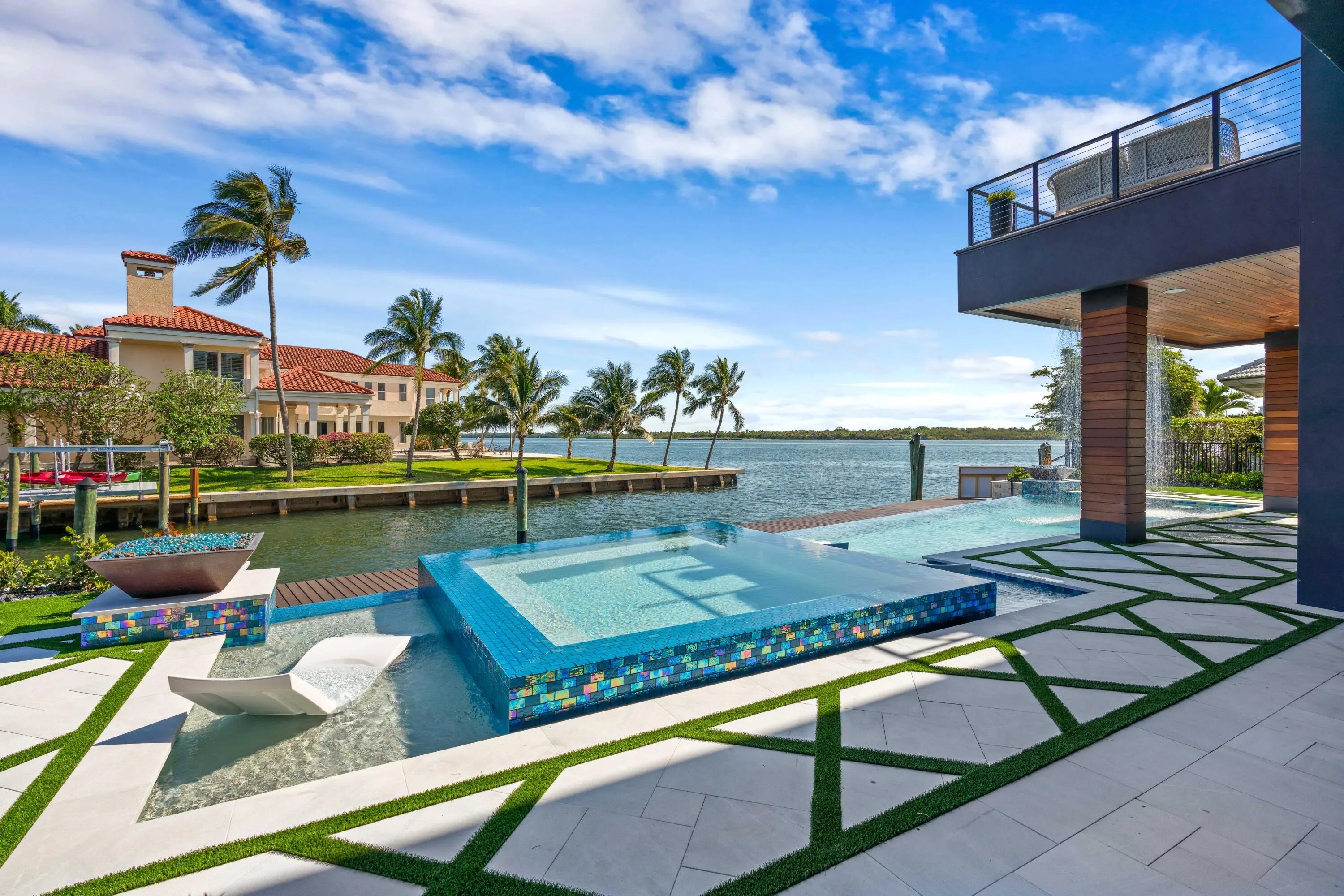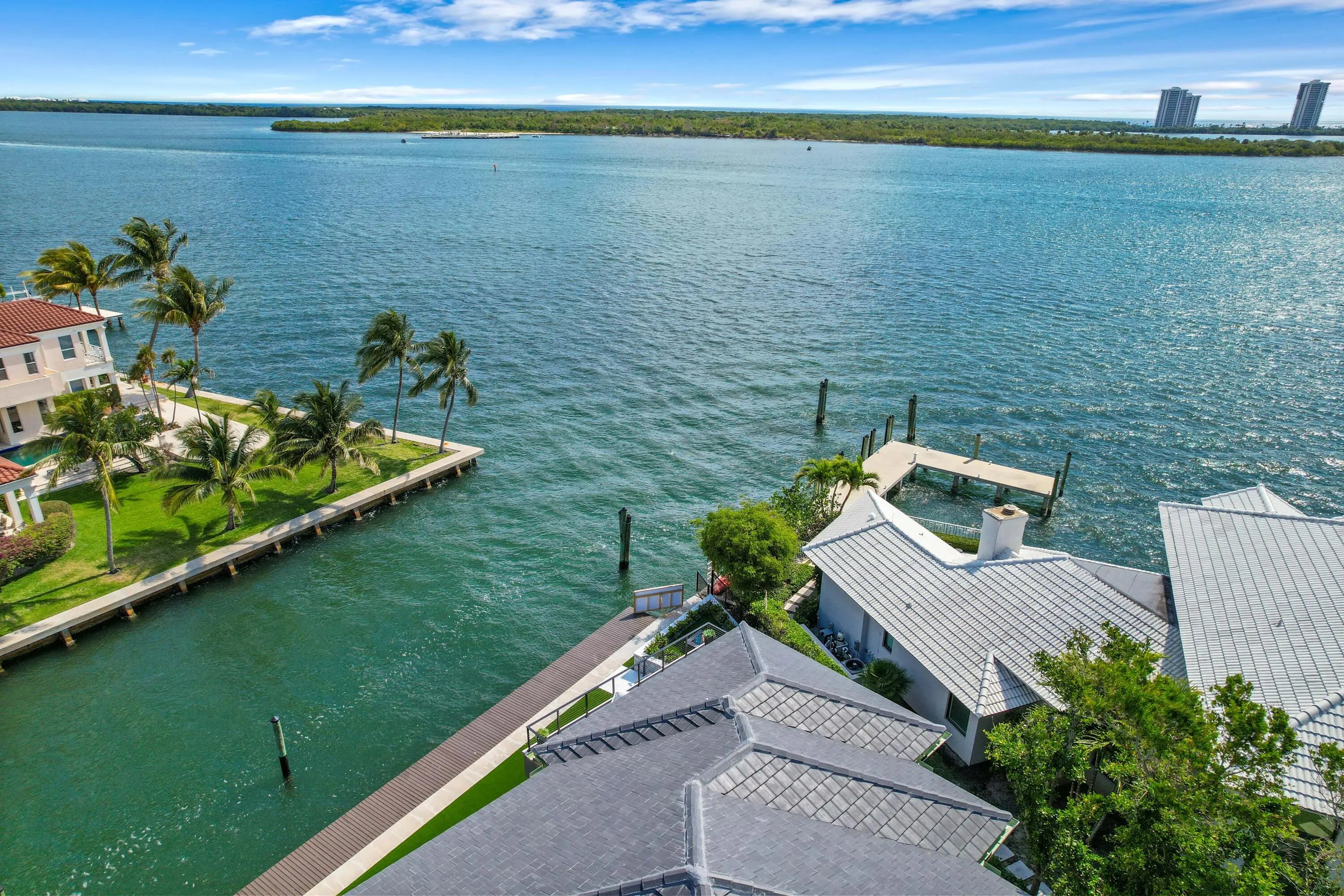 NEW 2024 WATERFRONT CONSTRUCTION AND BIG WATER VIEWS! Bring your largest vessels and dock directly behind this stunning estate home tucked away at the end of prestigious Bowsprit Drive in North Palm Beach. Situated on 150' of deep water with mooring piles and 24K lift! Meticulously engineered to capture wide water views from nearly every space with 90-degree sliding glass doors from the upper level primary suite to 10' tall 90-degree pocketing sliders in the lower level club room. Generously appointed and specifically designed with entertaining in mind, this home is the epitome of South Florida indoor-outdoor living with expansive covered patio and balcony areas, infinity-edge saltwater pool/spa and 60'' fire pit and conversation area, summer kitchen and smart home technology!