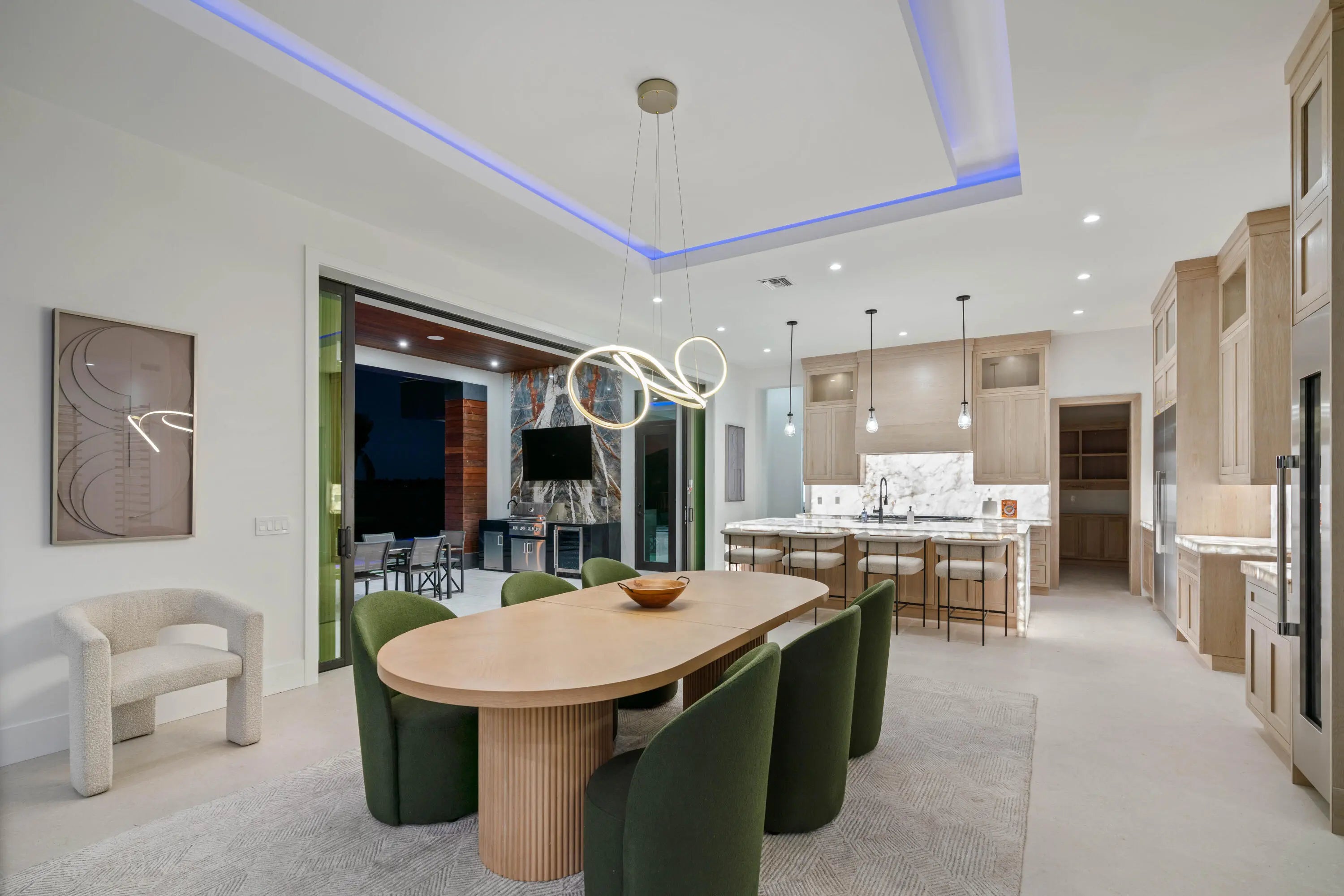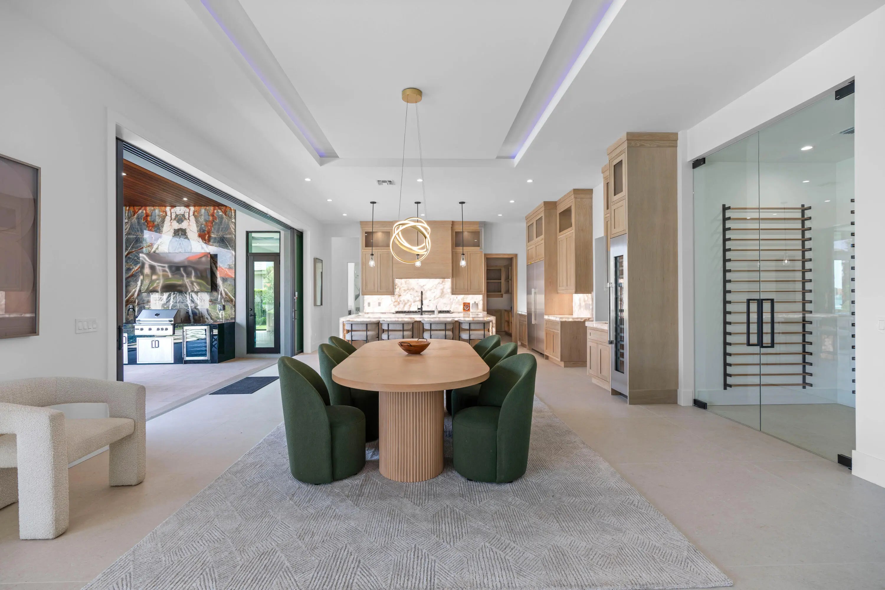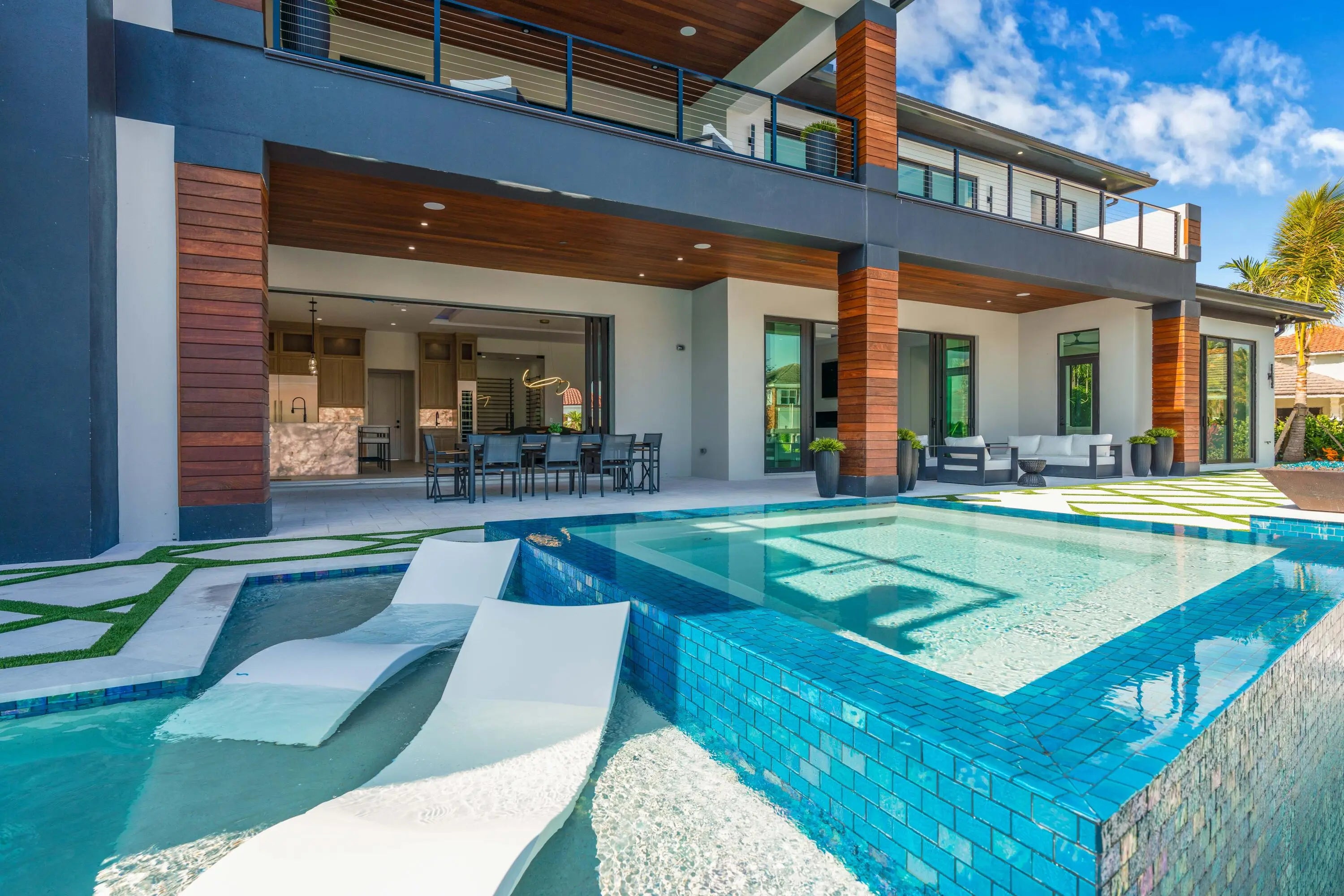 NEW 2024 WATERFRONT CONSTRUCTION AND BIG WATER VIEWS! Bring your largest vessels and dock directly behind this stunning estate home tucked away at the end of prestigious Bowsprit Drive in North Palm Beach. Situated on 150' of deep water with mooring piles and 24K lift! Meticulously engineered to capture wide water views from nearly every space with 90-degree sliding glass doors from the upper level primary suite to 10' tall 90-degree pocketing sliders in the lower level club room. Generously appointed and specifically designed with entertaining in mind, this home is the epitome of South Florida indoor-outdoor living with expansive covered patio and balcony areas, infinity-edge saltwater pool/spa and 60'' fire pit and conversation area, summer kitchen and smart home technology!