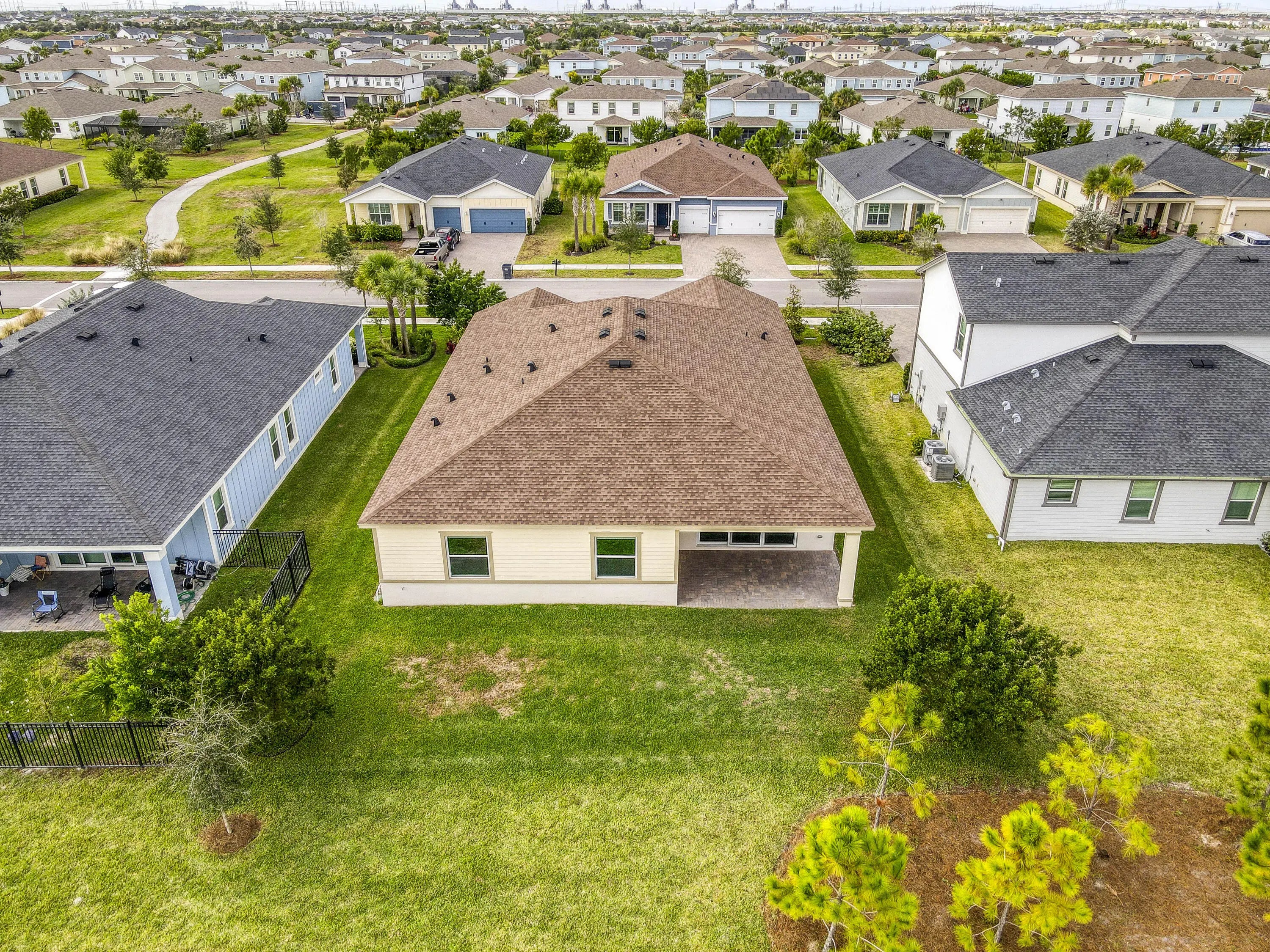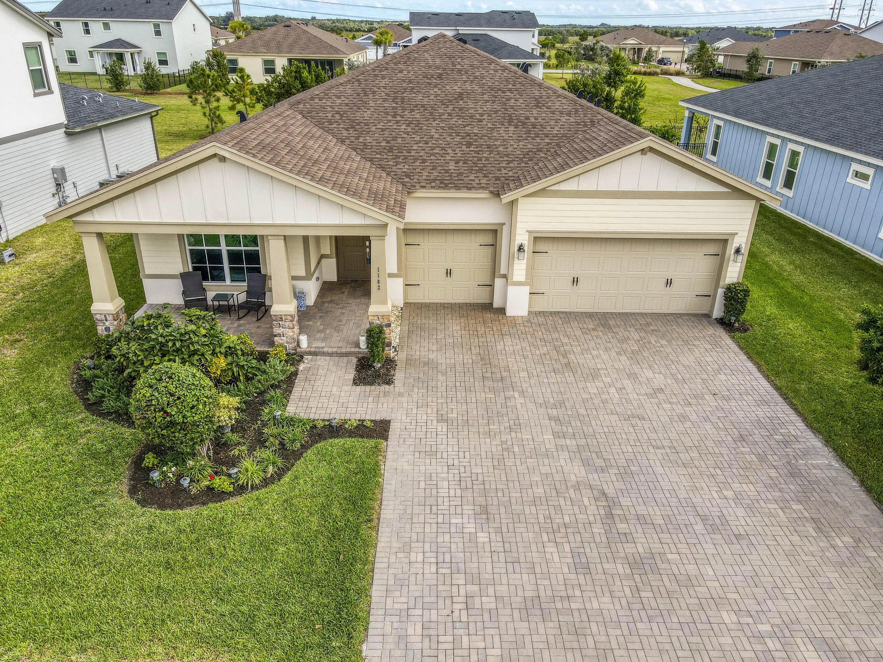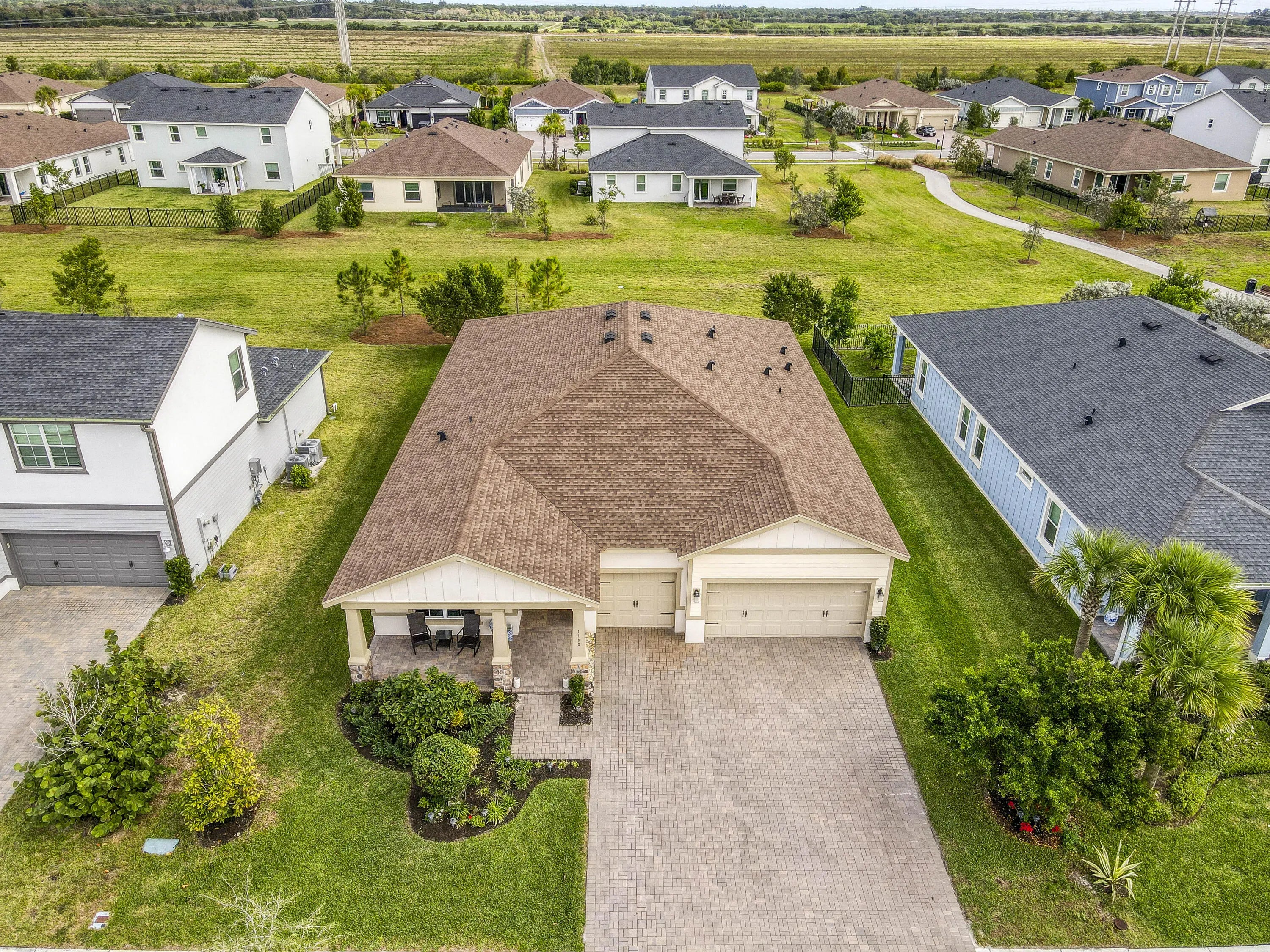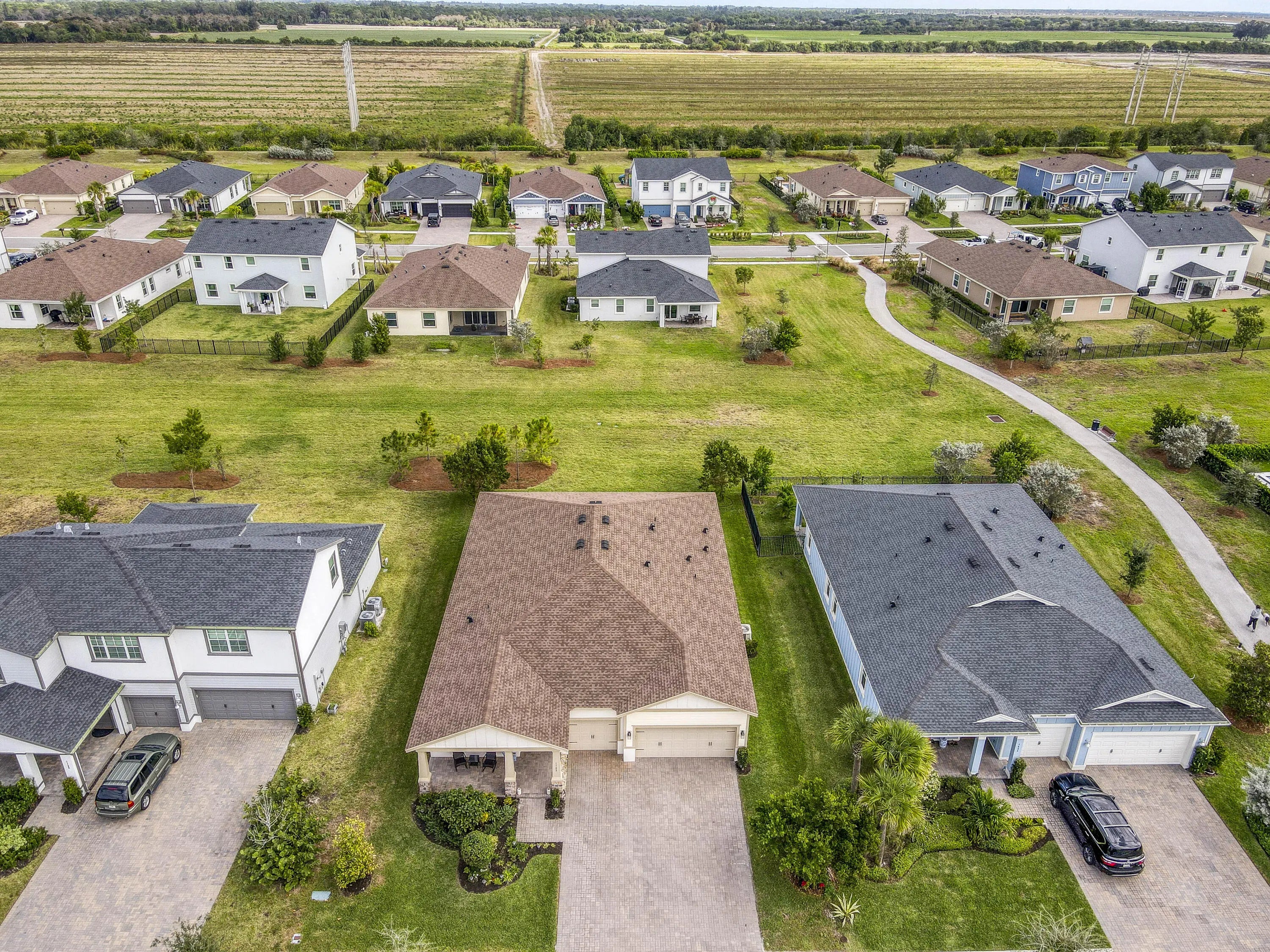 Welcome to this bright and desirable 3BR, 3BA home in the award-winning community of Arden, where modern living meets natural beauty. Built in 2022, enjoy a flexible layout with over 2,600 sq ft under air and a 3-car garage. The large den can be easily enclosed to create a 4th bedroom, home office, or media space. The kitchen has been upgraded and stands out with a built-in gas range, huge entertaining island, and ceramic tile flooring, all flowing into the open-concept living and dining areas. The primary suite offers green views, a large walk-in closet, and a spacious bathroom with dual sinks and walk-in shower. Tray ceilings and abundant natural light enhance the sense of space, while a covered lanai and private backyard overlook peaceful greenspace, with room to add a pool.
