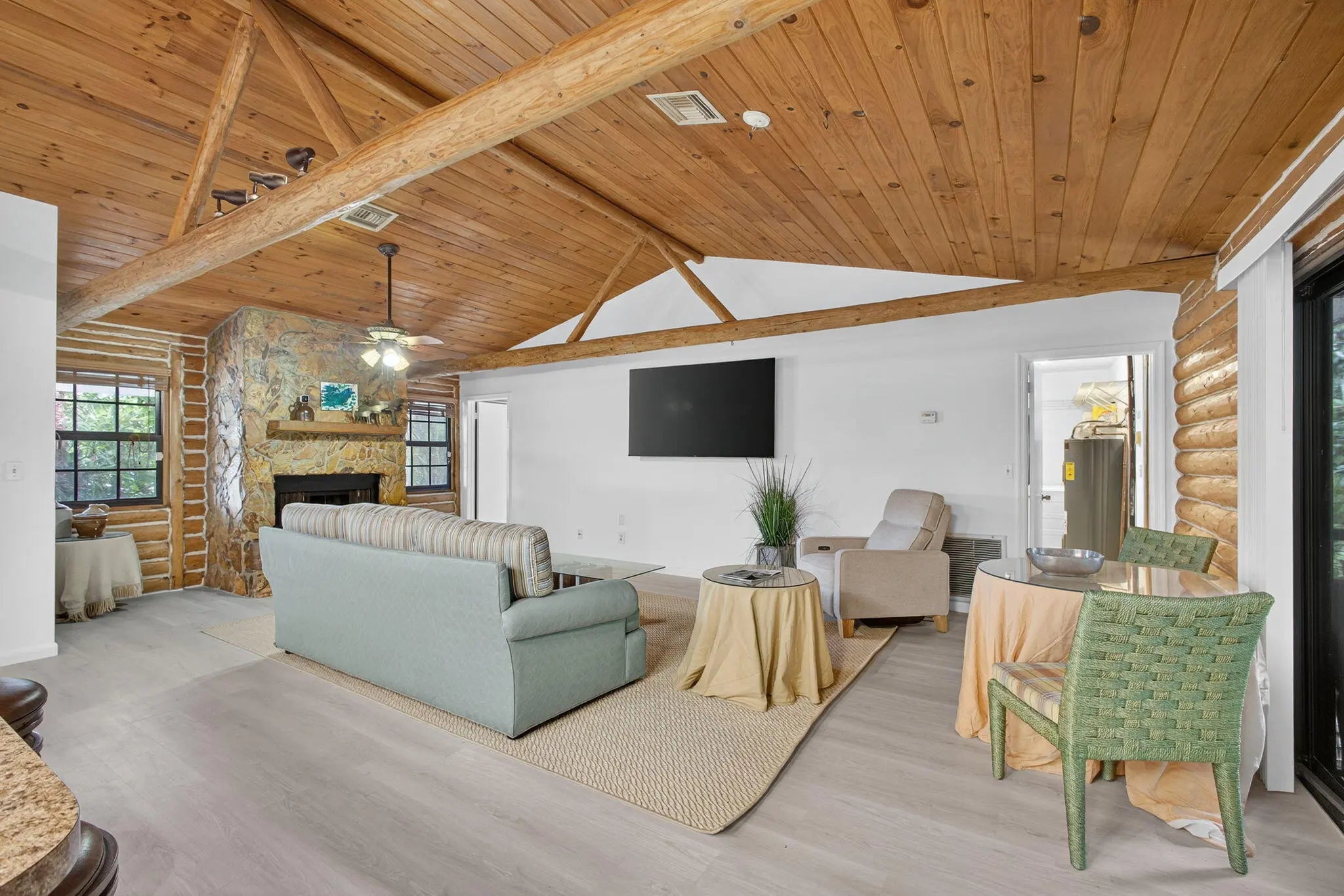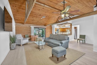 Loxahatchee Groves rental 4 bedrooms Impact windows Screened patio with pond view 10 minutes to WellingtonThis updated 4-bedroom, 2-bath single-family home offers space, privacy, and natural surroundings just minutes from Wellington. The property provides a peaceful setting with a scenic pond visible from the screened back patio.The home features impact windows, new laminate flooring throughout, fresh interior paint, and a recently replaced AC system. A covered front porch welcomes you into an open living and dining layout with vaulted wood ceilings, exposed beams, and a stone fireplace that anchors the main living space. Large windows