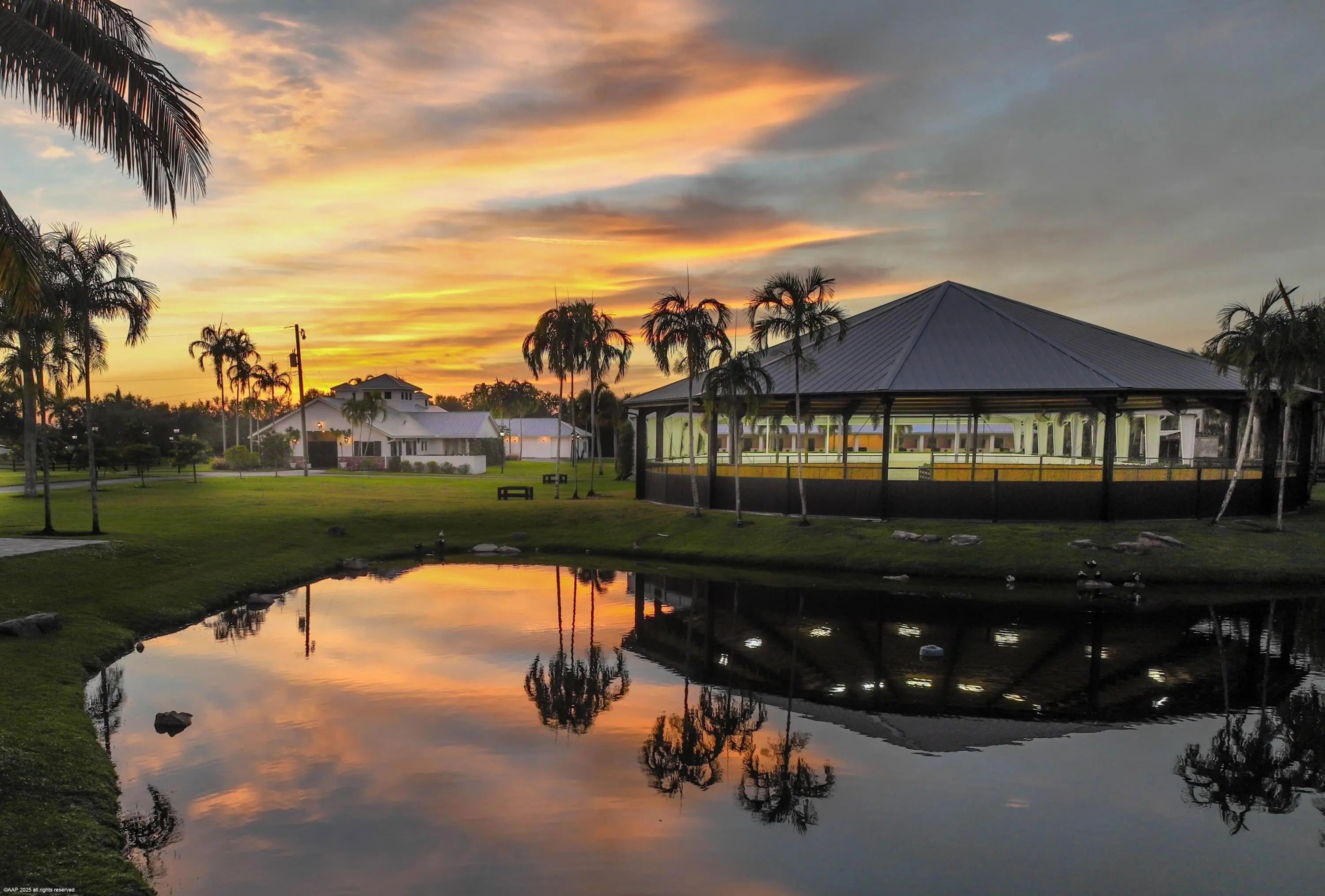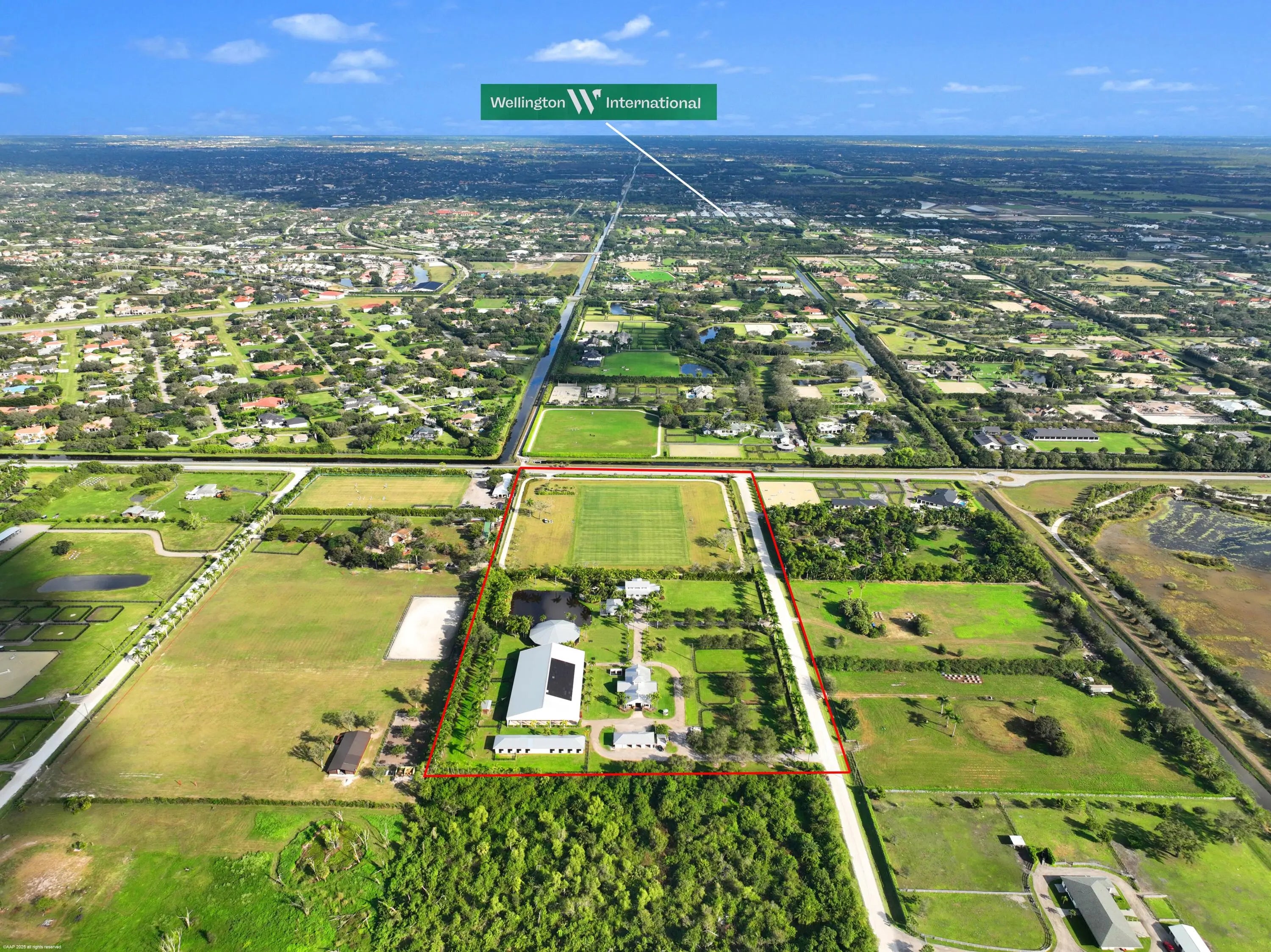 Forget-Me-Not Farm is a premier 20-acre equestrian estate within hacking distance of Wellington International. The property is anchored by a 3-acre, multimillion-dollar Grand Prix grass jumping field designed by renowned Swedish firm Capillary Flow, featuring advanced subsurface drainage and moisture control for year-round performance. Additional amenities include a 10-acre perimeter exercise track, covered arena, and large covered lunging pen. Two professional barns offer a total of 20 stalls, an owner's lounge with full kitchen, and a staff apartment. The newly constructed main residence features 4 bedrooms and 5 baths overlooking a resort-style pool, complemented by a separate 3-bedroom, 2-bath guest house. Fully fenced and powered by solar energy, this exceptional estate delivers an