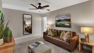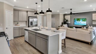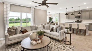 The first floor of this new two-story twin home design presents the open-plan main living area, which includes the spacious Great Room, a fully equipped kitchen and lovely dining room. At the rear is a covered lanai for outdoor activities. On the top floor is a comfortable loft surrounded by three secondary bedrooms and the tranquil owner's suite. Completing the home is a two-car garage.